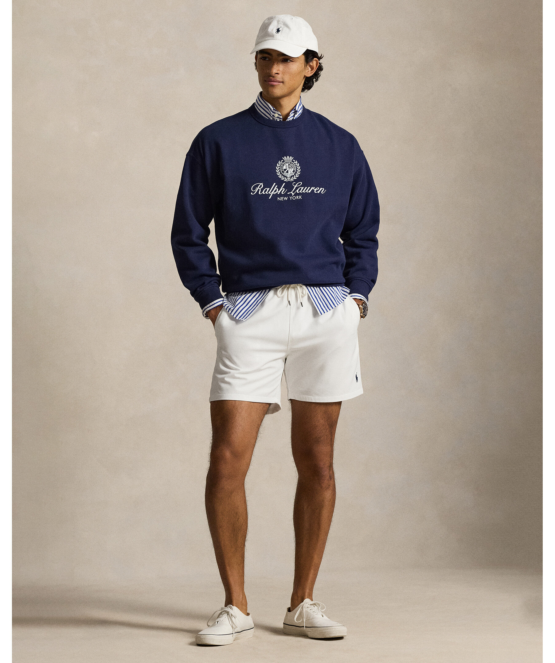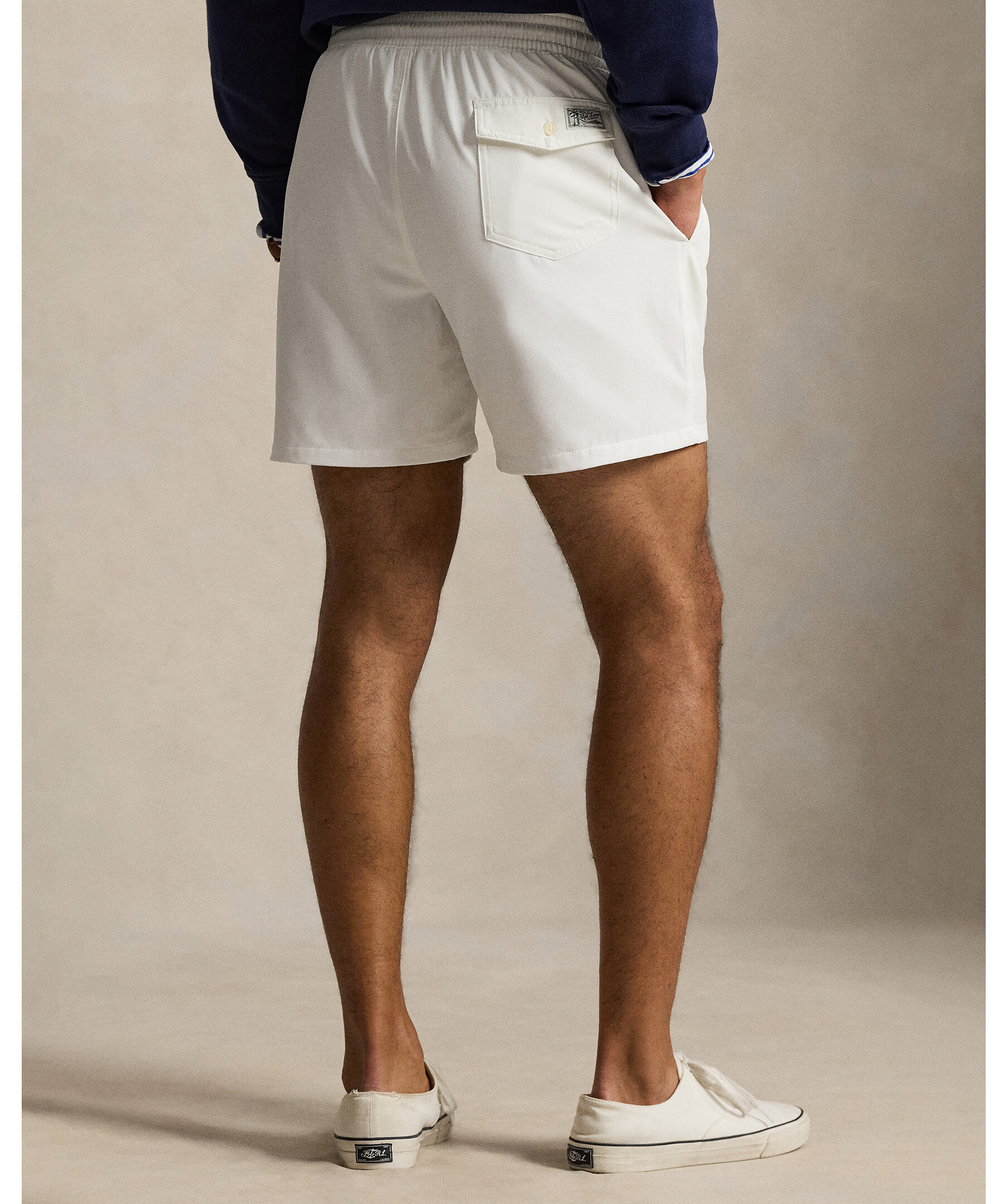 Vita badbyxor från Polo Ralph Lauren. Dessa badbyxor med nätfoder är vävda med extra stretch och har den signaturbroderade ponnyn.