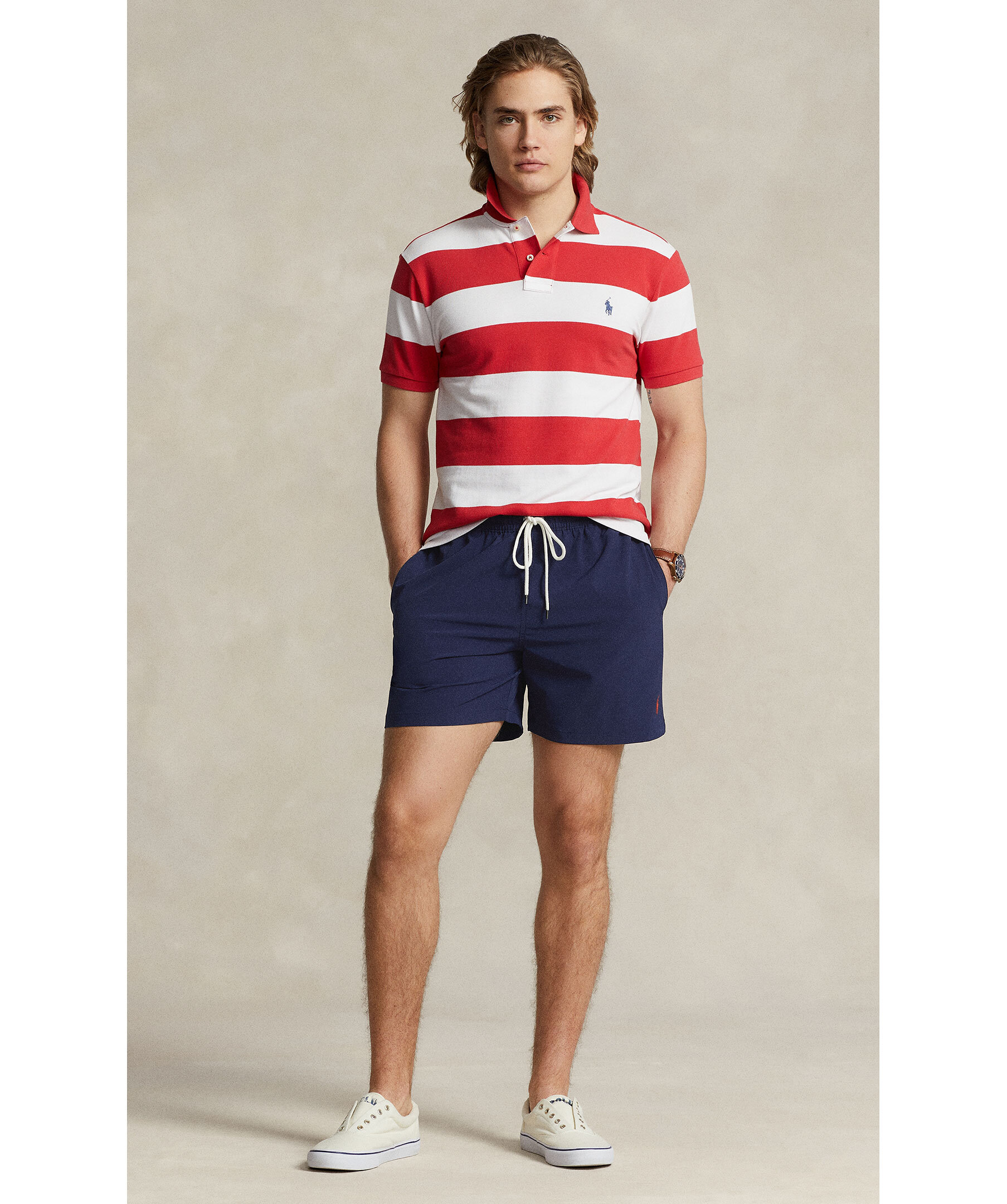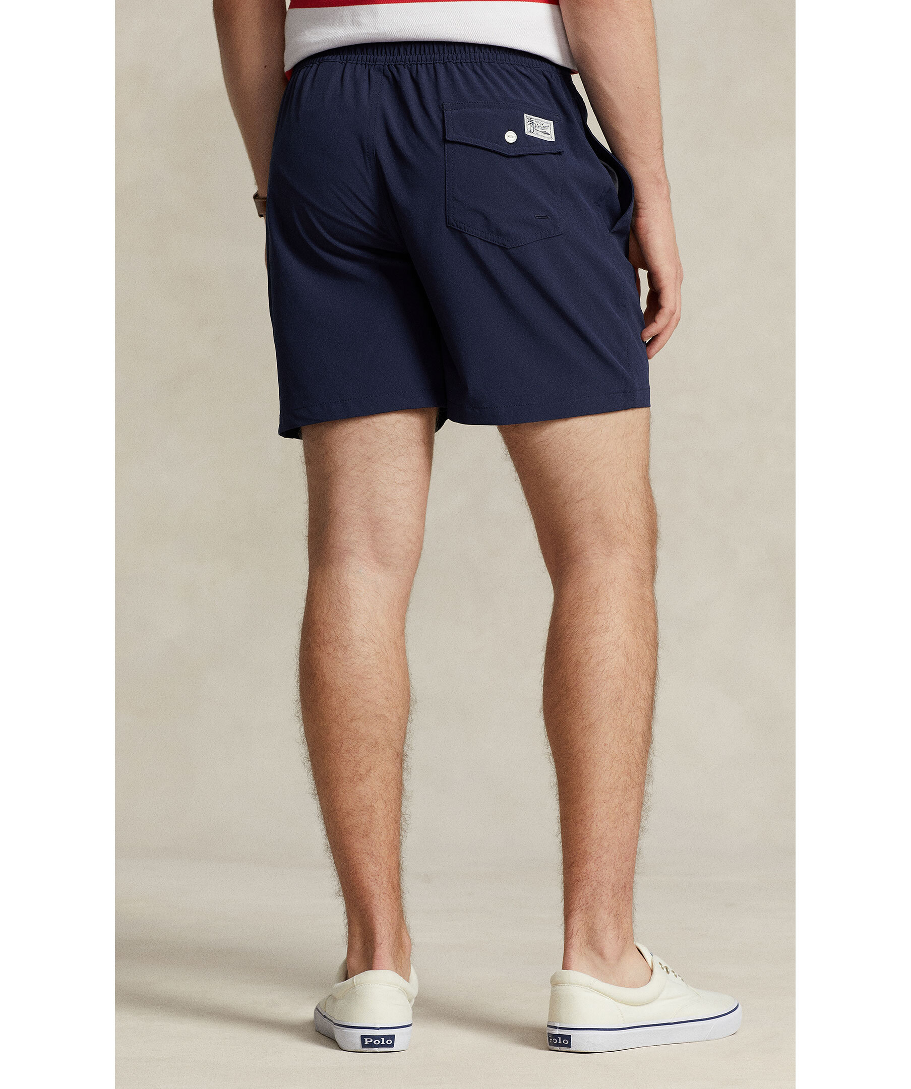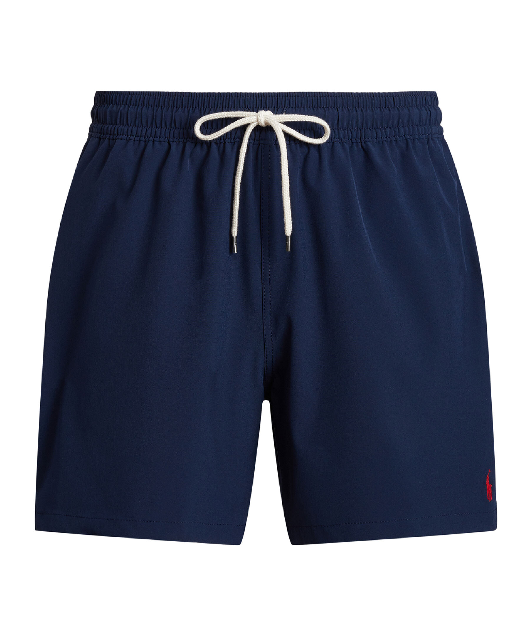 Marinblå badshorts från Polo Ralph Lauren. Shortsen har elastisk midja med snörning, två sidfickor, en bakficka med lock och knapp samt en broderad logotyp i nederkant. Tillverkade i en polyesterblandning.