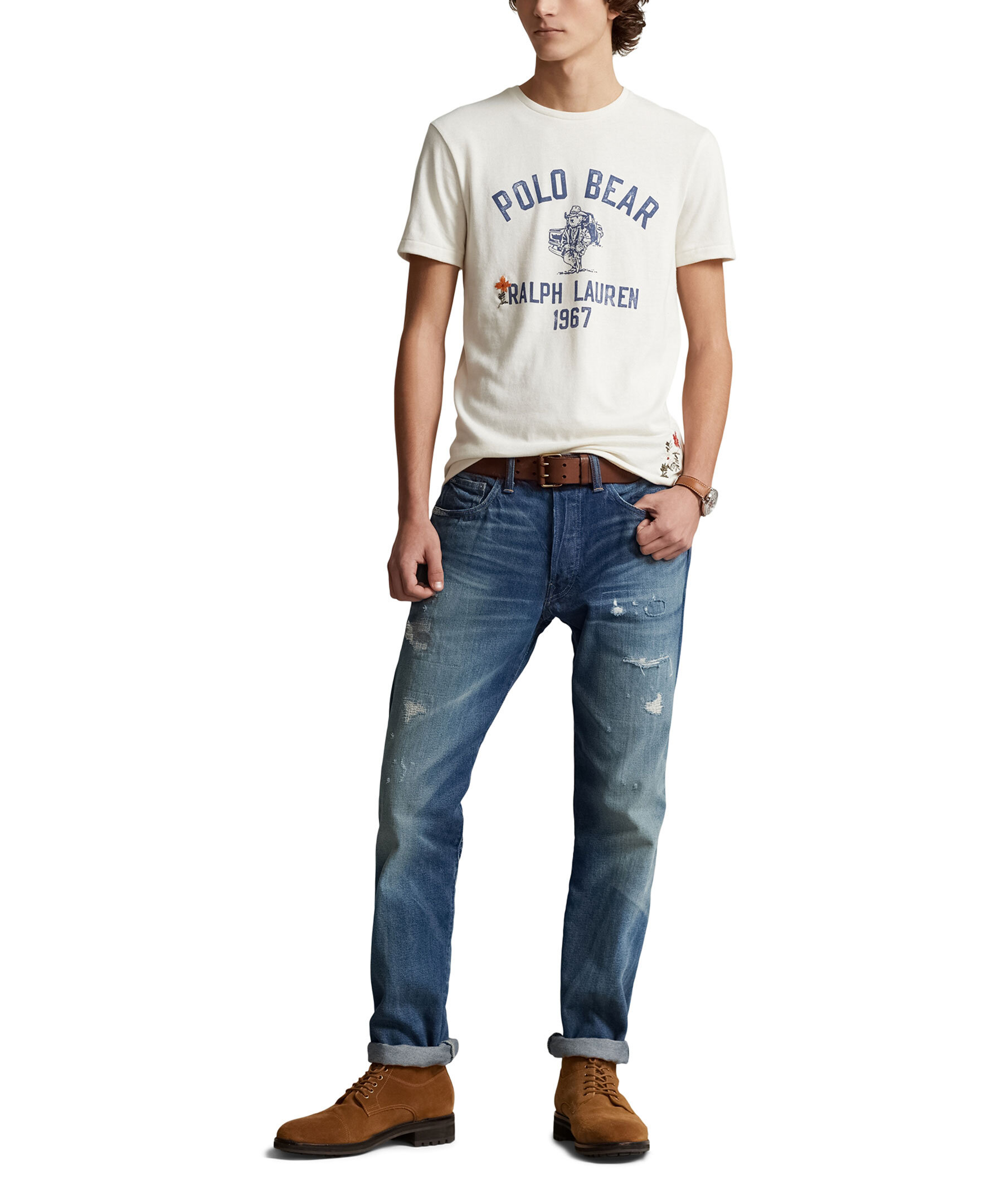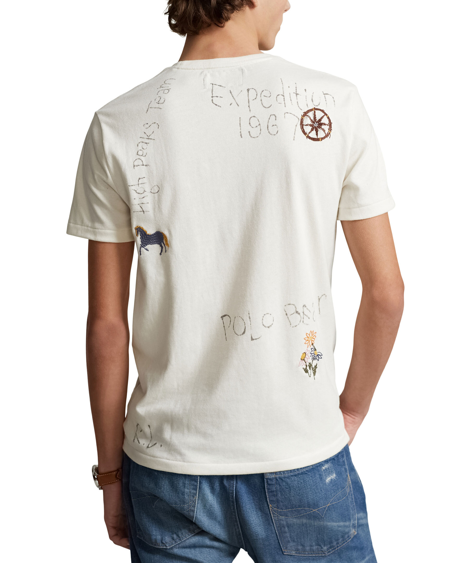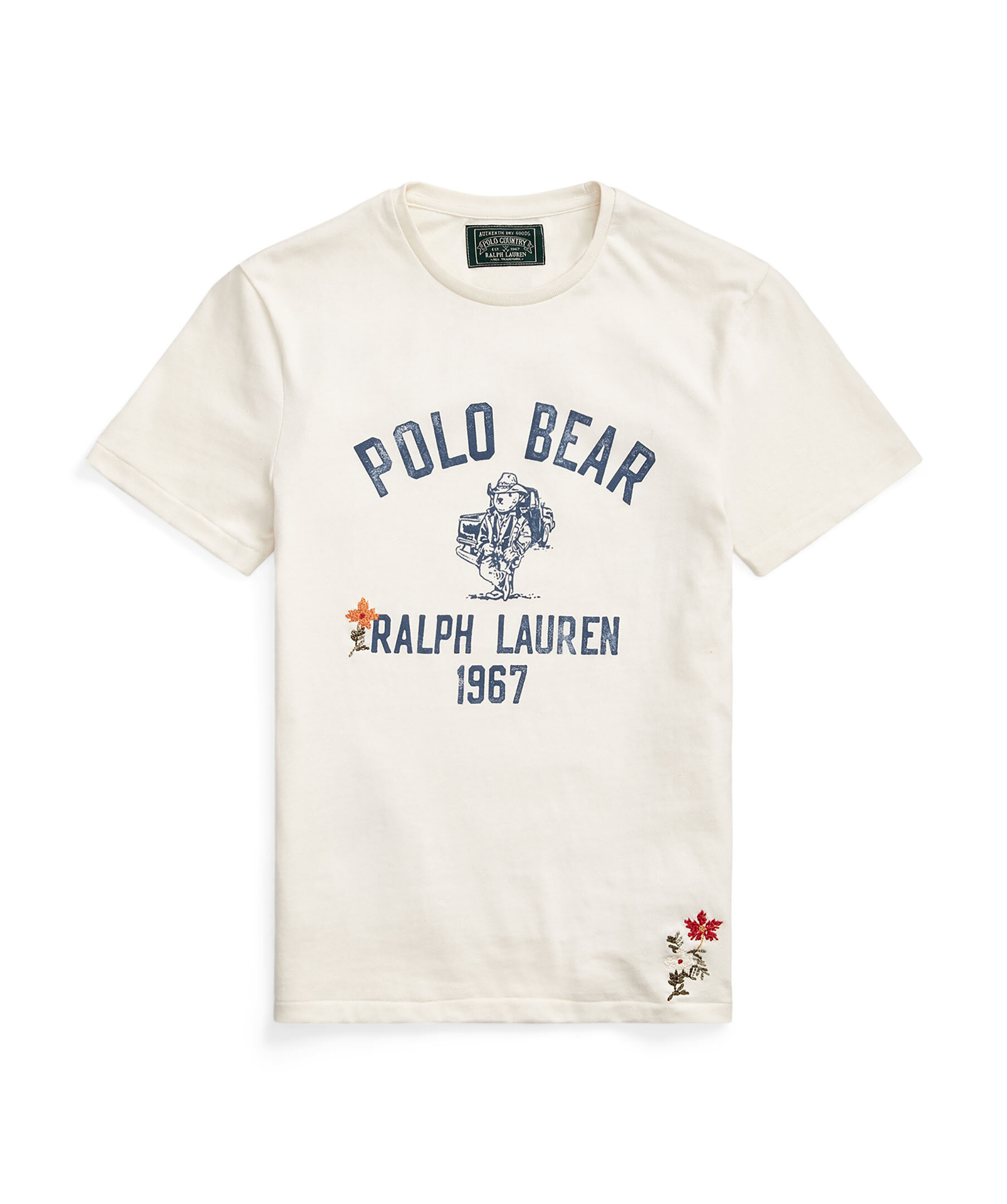 Krämvit t-shirt från Polo Ralph Lauren. Tröjan har en custom slim fit passform och ett blått polo-bear tryck samt western inspirerande brodyr och text dekorerat runt om tröjan.