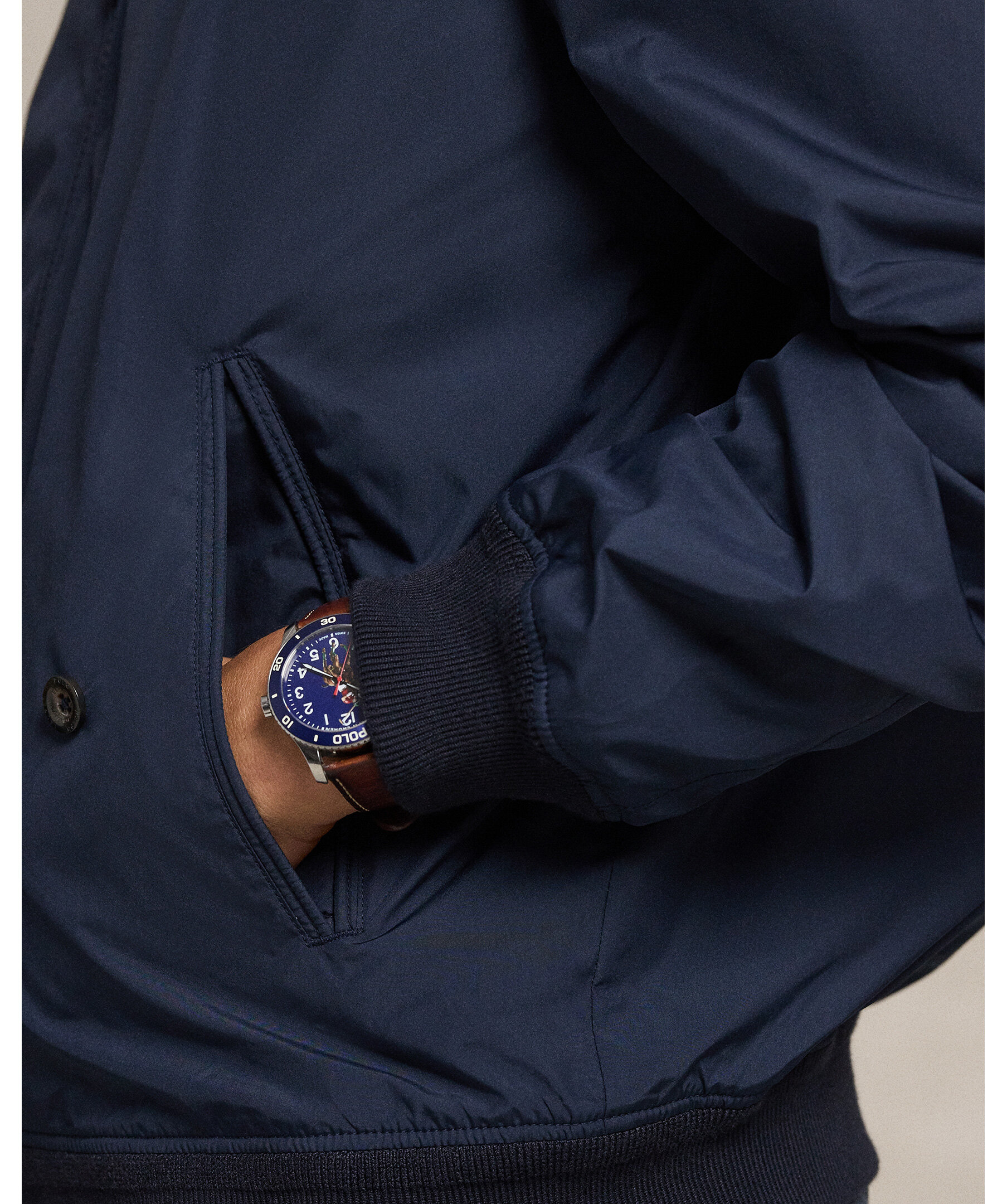 Mörkblå jacka från Polo Ralph Lauren. Perfekt för resor och en aktiv livsstil, den här jackan packas ner i sin egen ficka och kan fästas på handtaget på en resväska efter förvaring. Den är tillverkad av lätt, vattenavvisande tyg och designad med tillräckligt med fack för alla dina nödvändigheter.