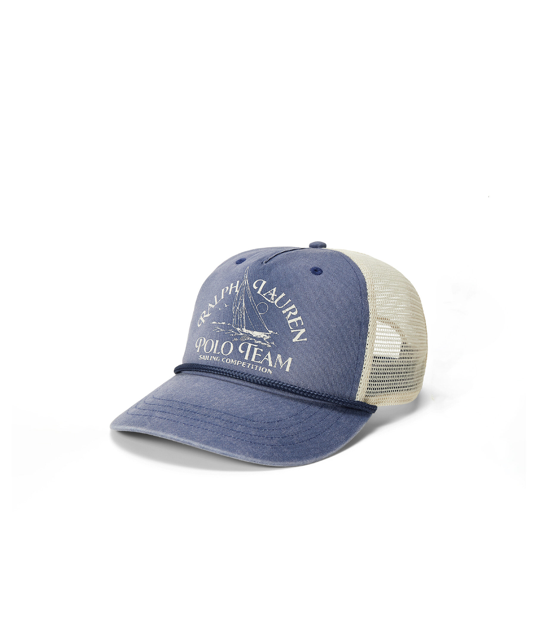 Denna truckerkeps är en del av säsongens kollektion inspirerad av Karibiens kristallklara vatten och livfulla solnedgångar, och har en segeltryck framtill. Den är specialtvättad för en solblekt look och en indragen känsla.