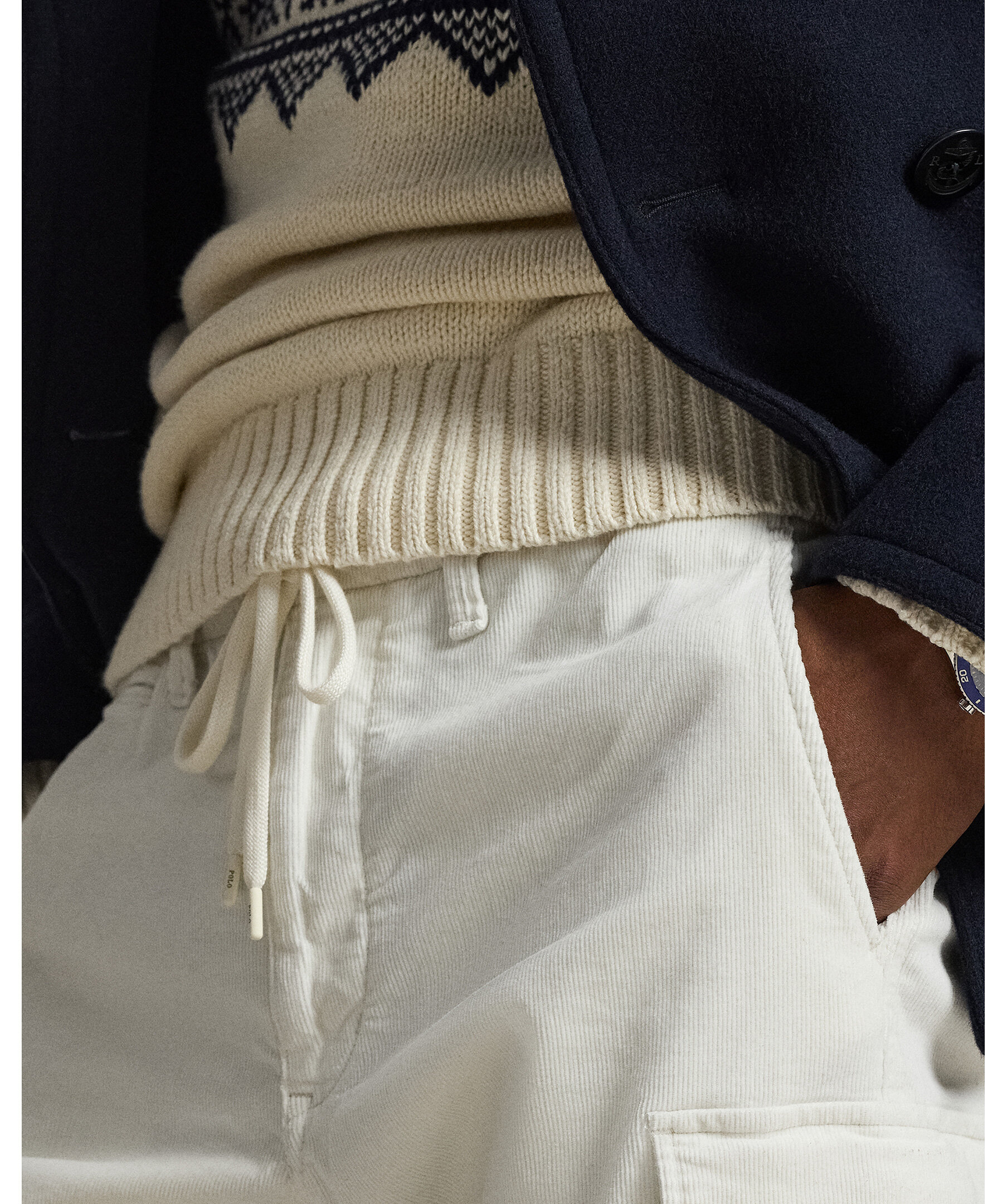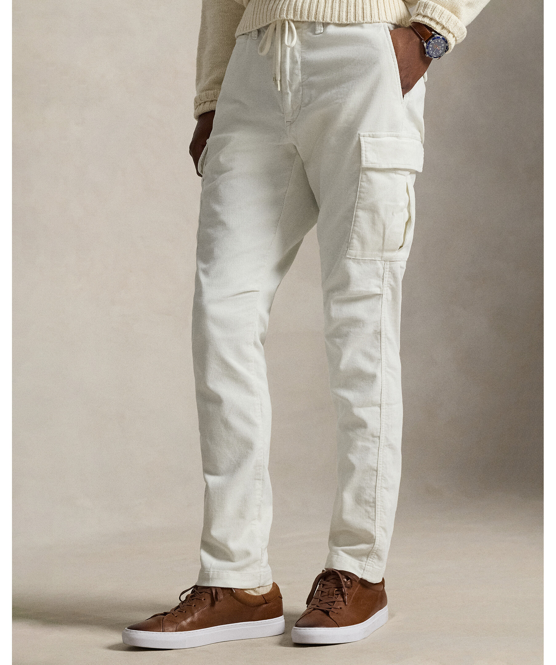 Antique Cream cargobyxor från Polo Ralph Lauren i ribbad corduroy med subtil stretch för extra komfort. Byxorna har en slim fit med utilitarinspirerade cargofickor, klassiska sidofickor och en modern, smal silhuett.