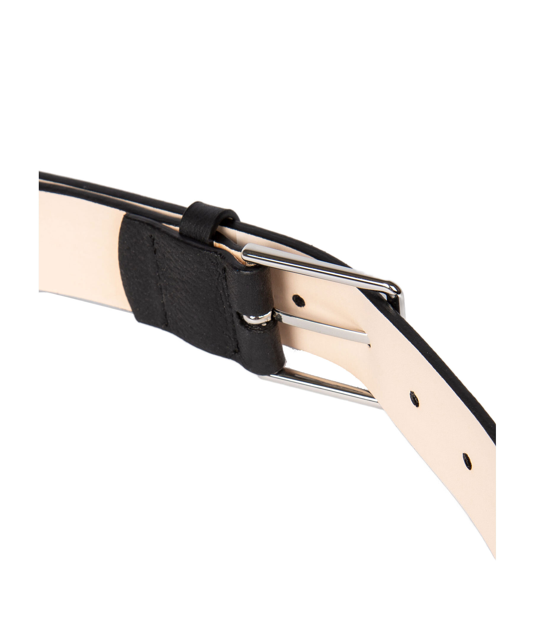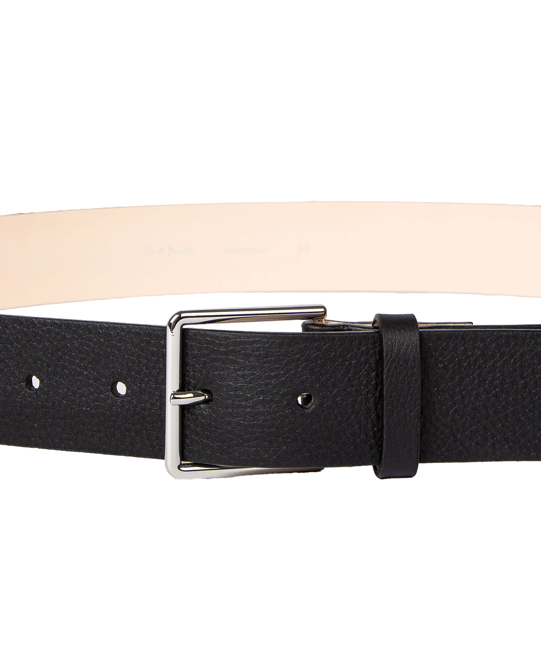 Svart bälte från PS Paul Smith. Bältet är gjord av premium kalvläder med en kornig finish och har signatur-rand detalj. Insidan är beige. Bredd: 3,5cm.
