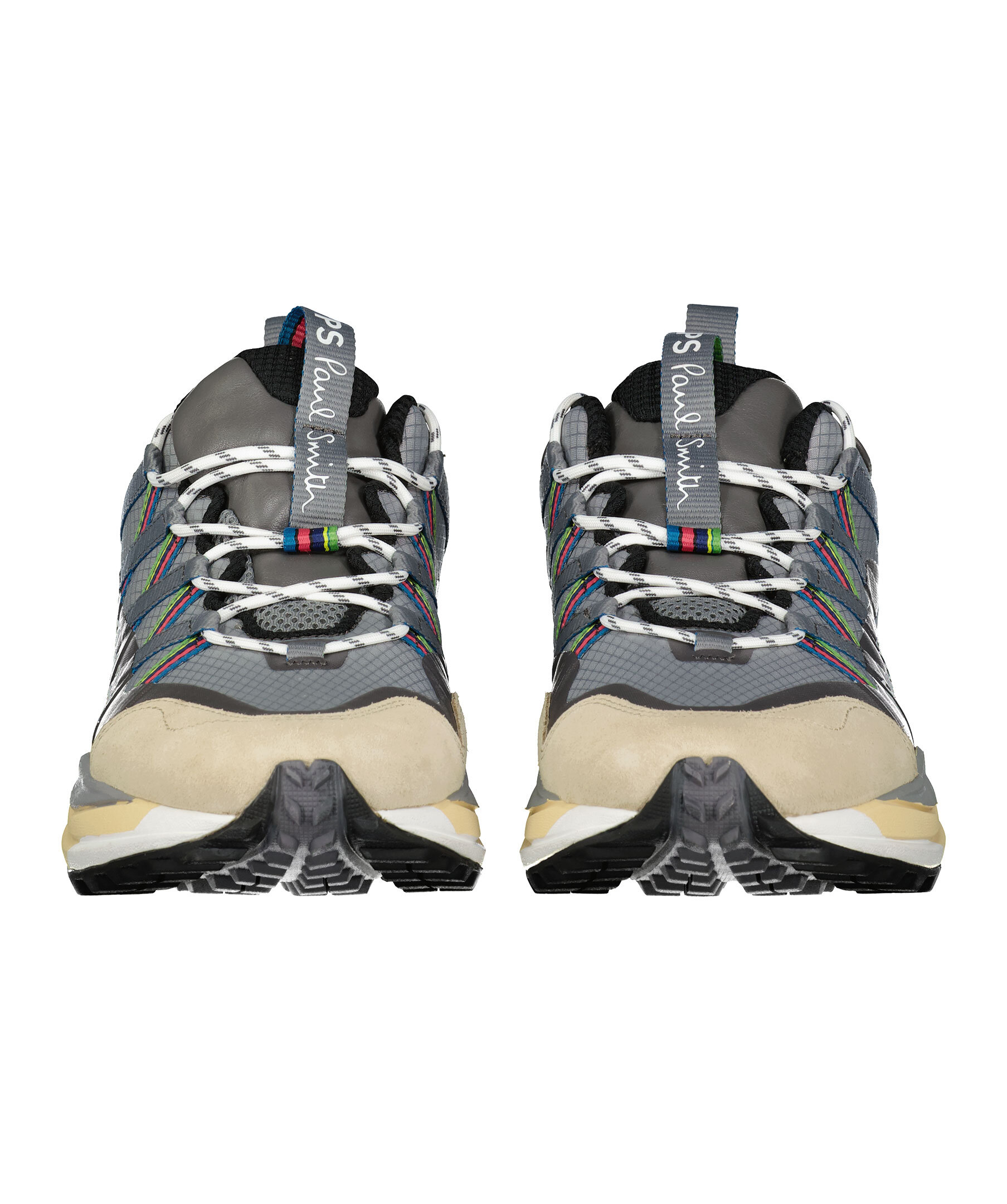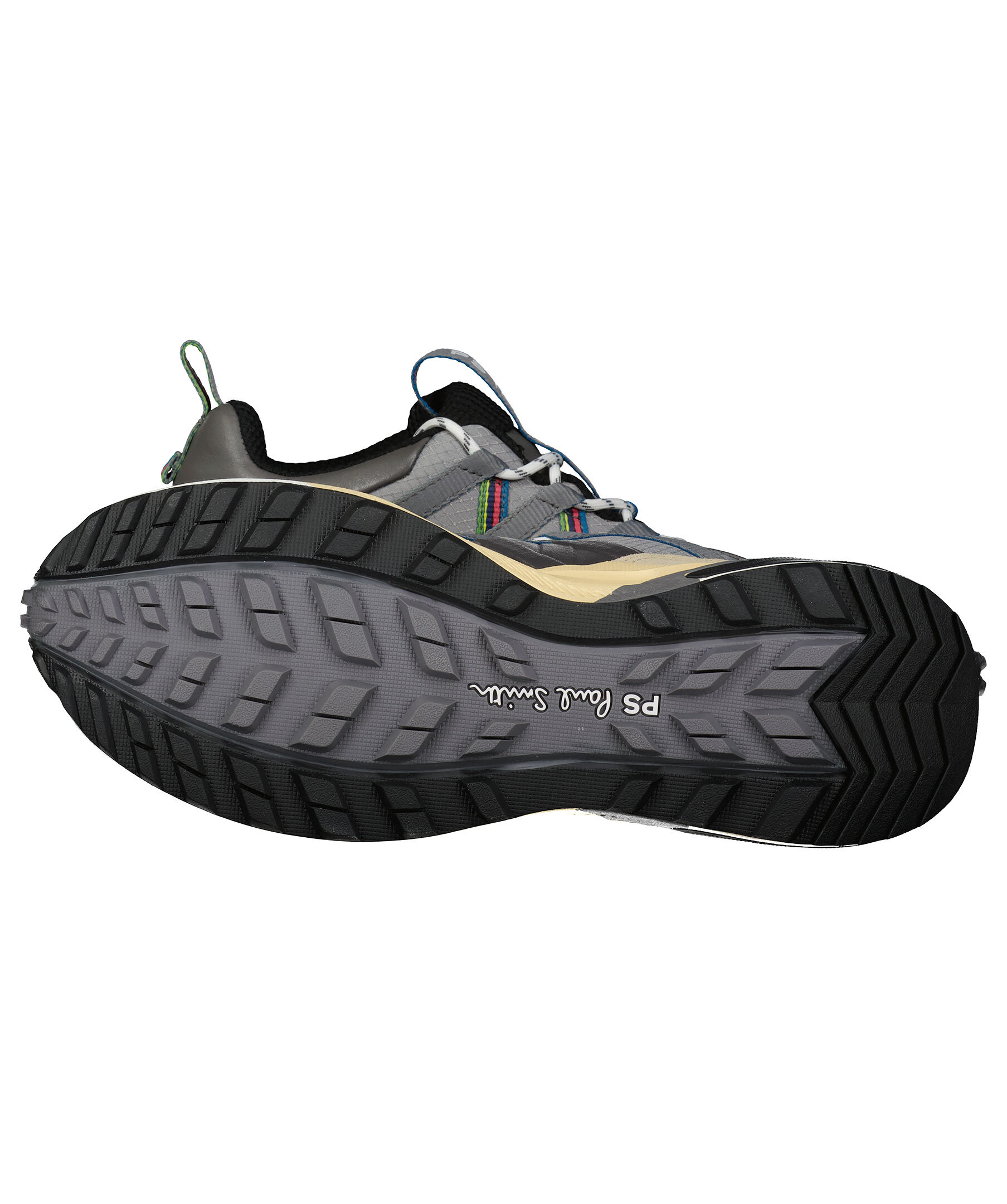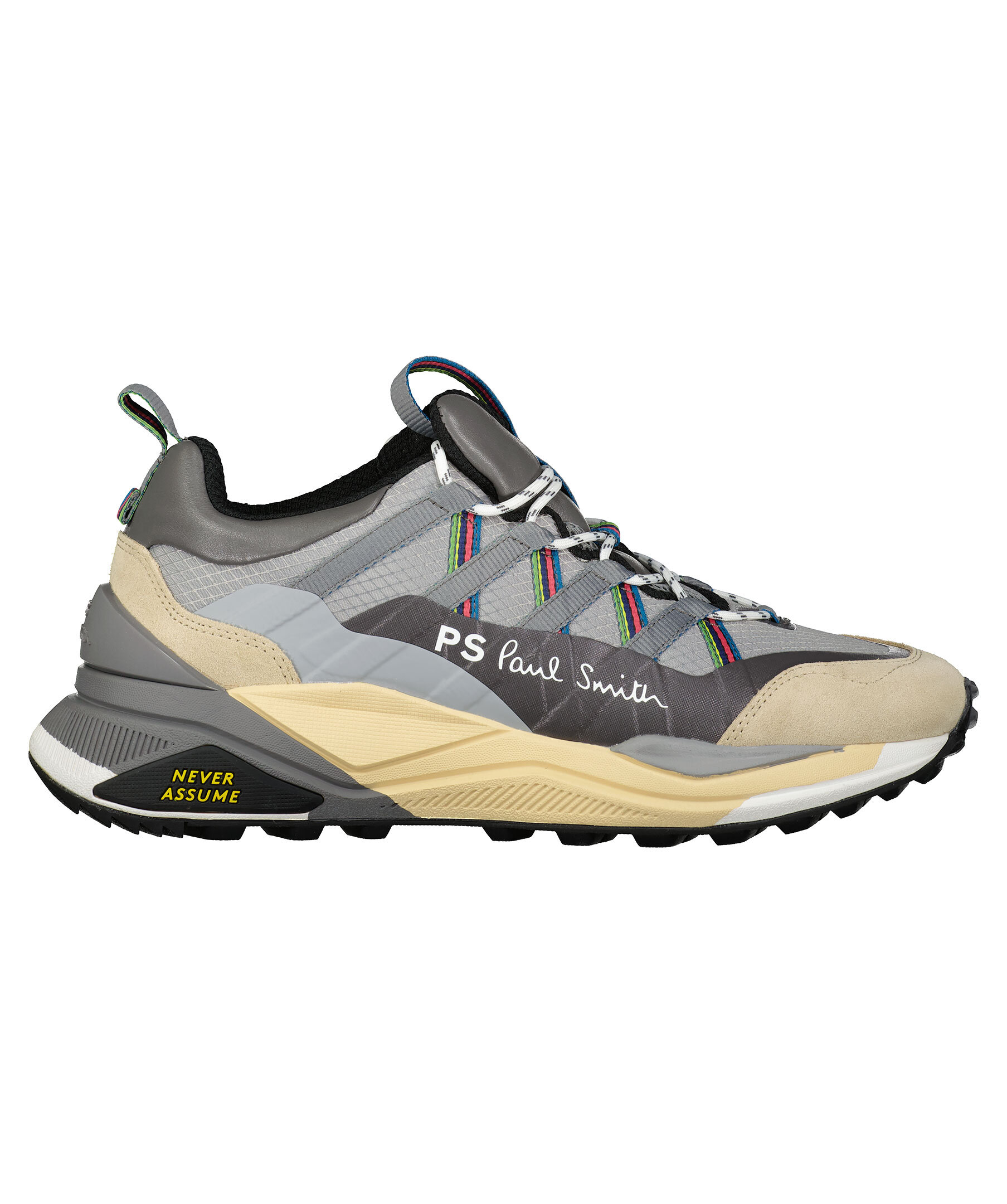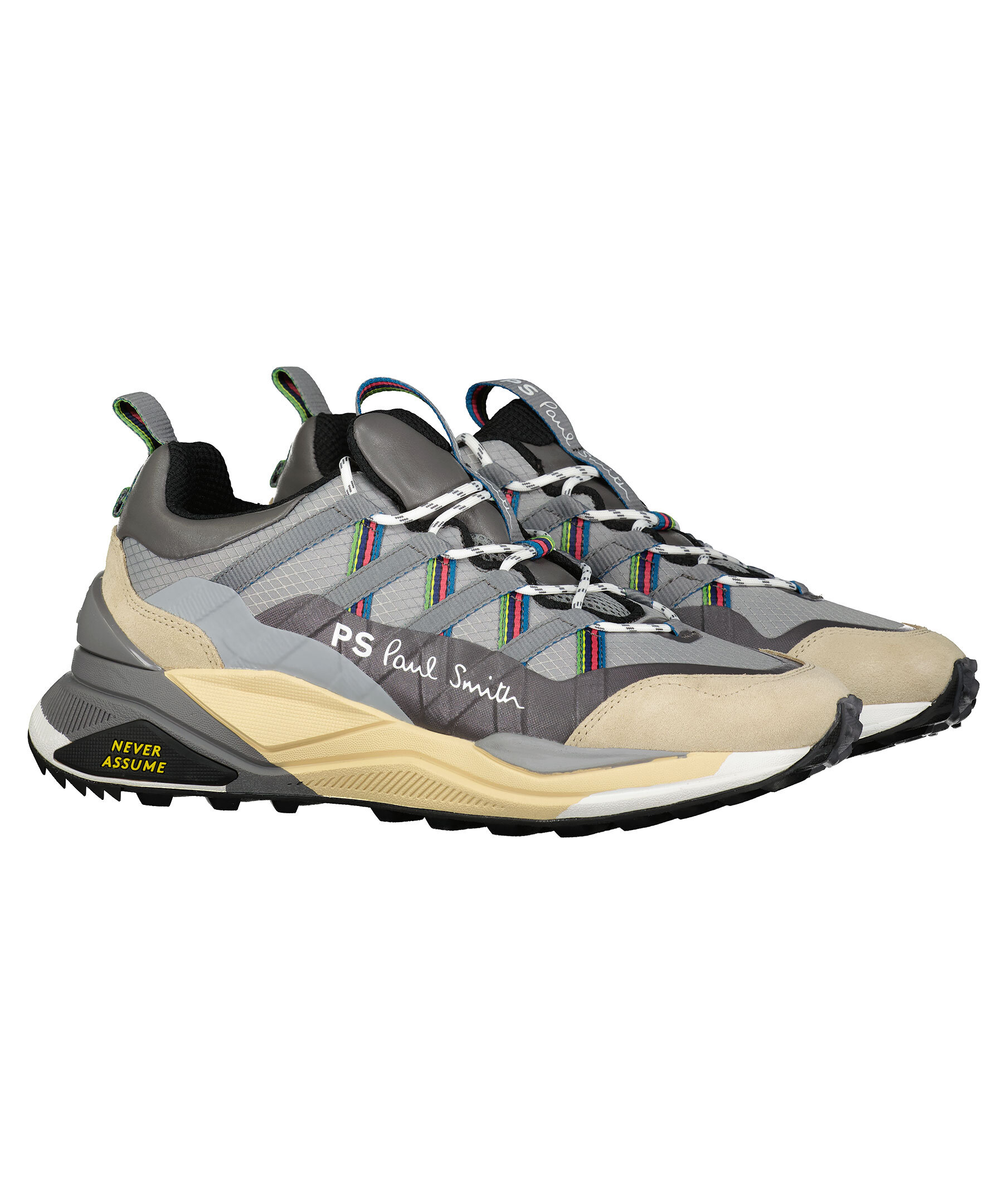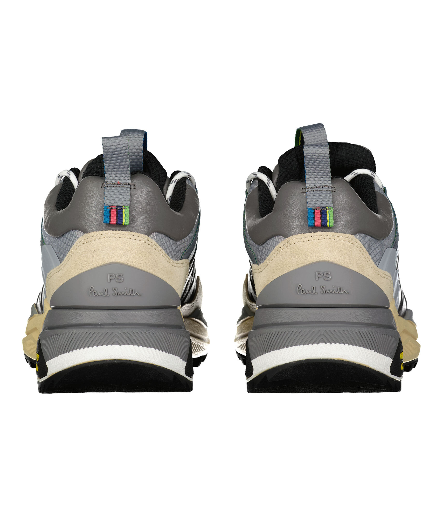 Grå/beiga sneakers från PS Paul Smith. Flerfärgade detaljer vid sidan, beige/grå yttersula. Logotyp fram, bak och på sidan. Tillverkade i läder, textil och gummi.