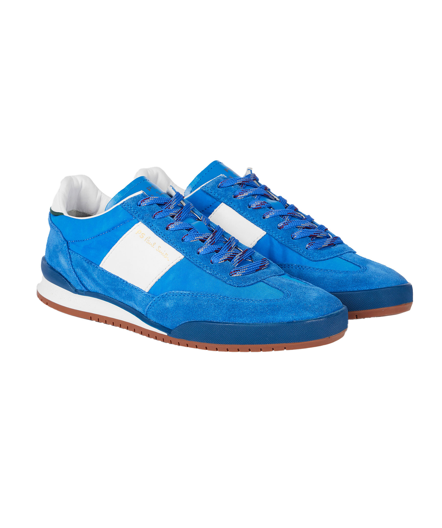 Blåa sneakers från PS Paul Smith. Skorna har vita detaljer, brun sula, platta blåa skosnören samt extra vita skosnören. Logotyp på plösen, hälen, utsidan samt undersidan. Tillverkade i läder med detaljer i mocka.