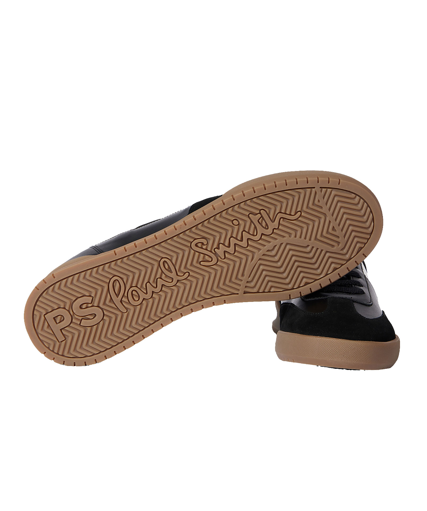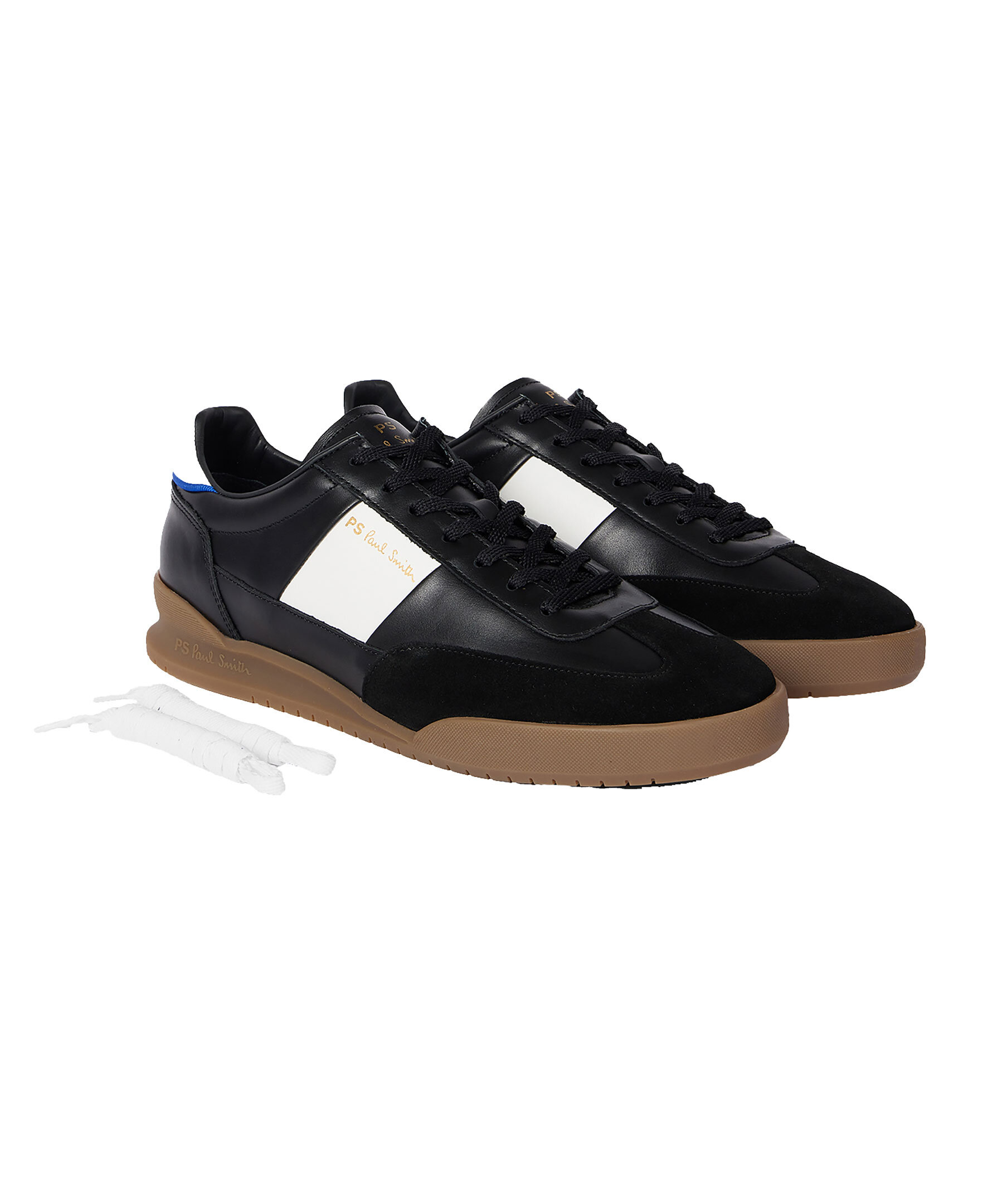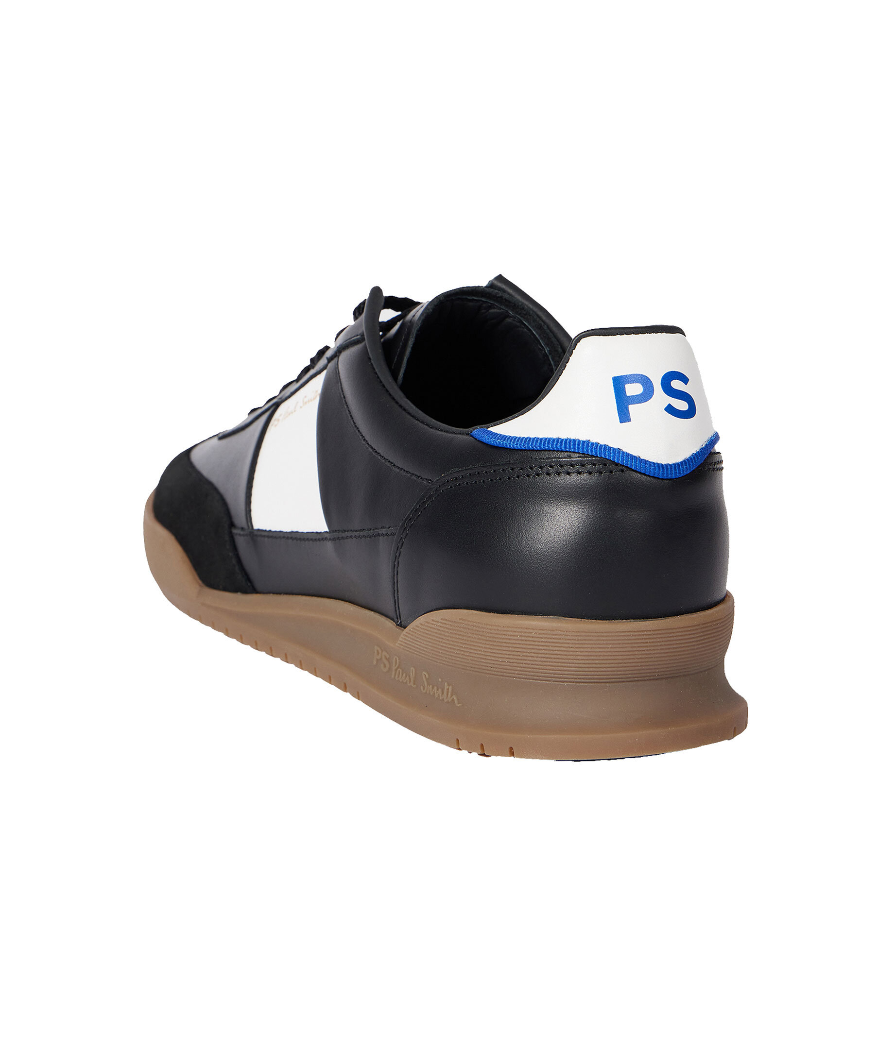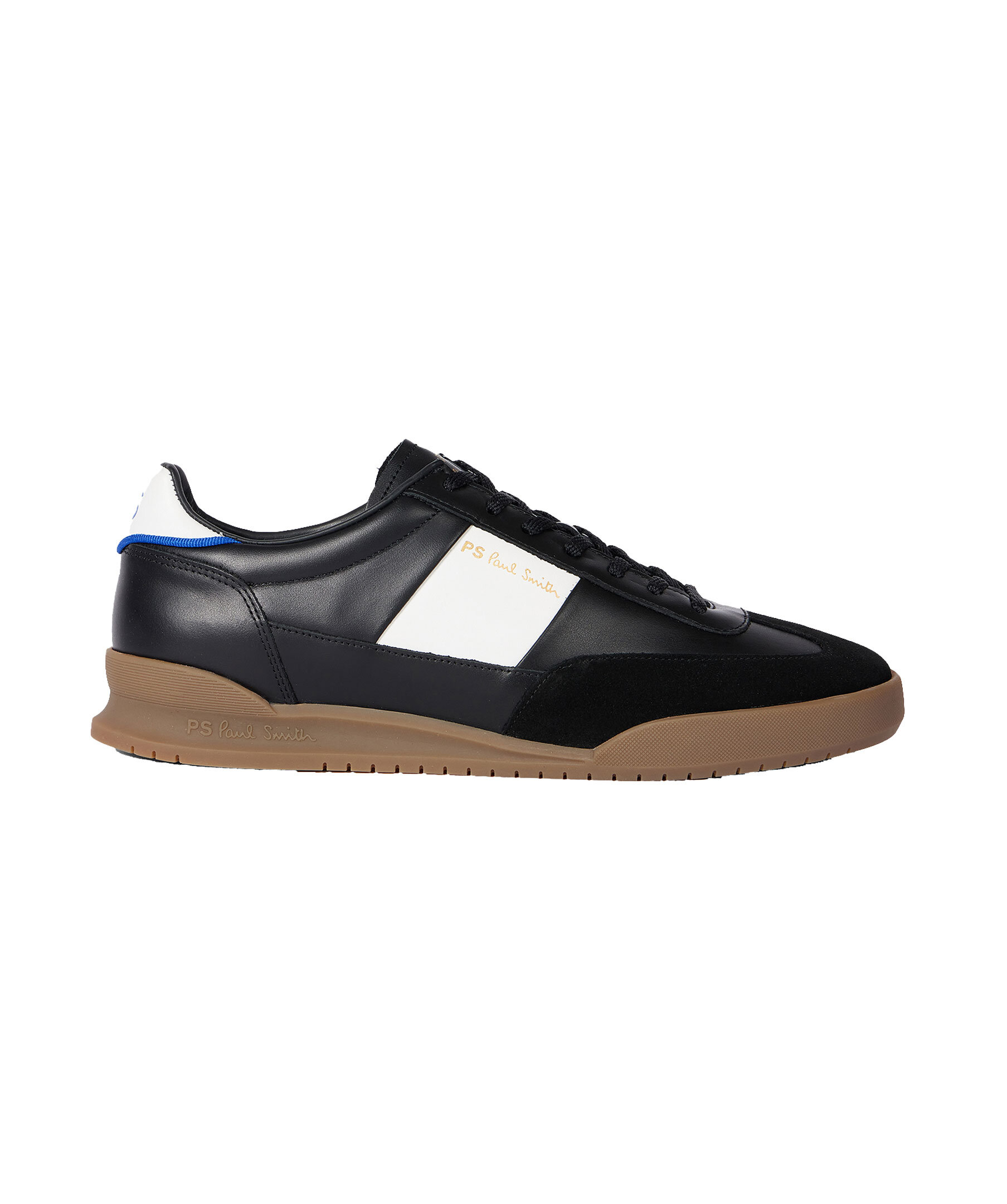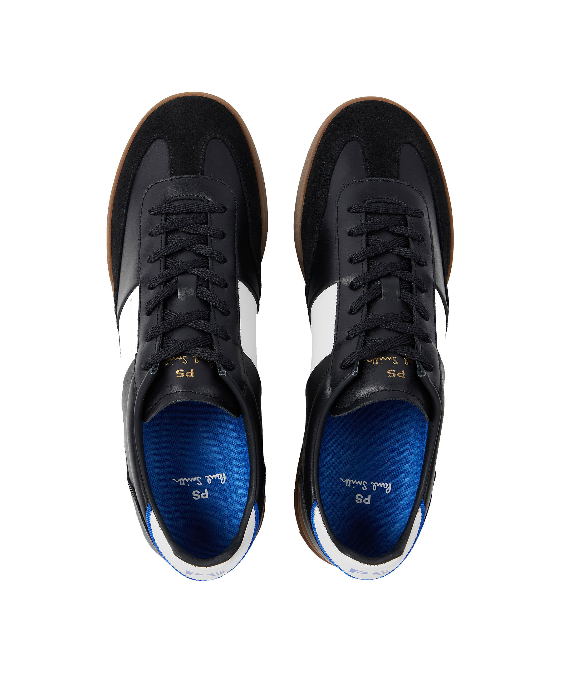Svarta sneakers från PS Paul Smith. Skorna har detaljer i mocka och vita samt blå delar. Logotyp på plösen, utsidan av skon och på hälen. Tillverkad av läder med gummisula.