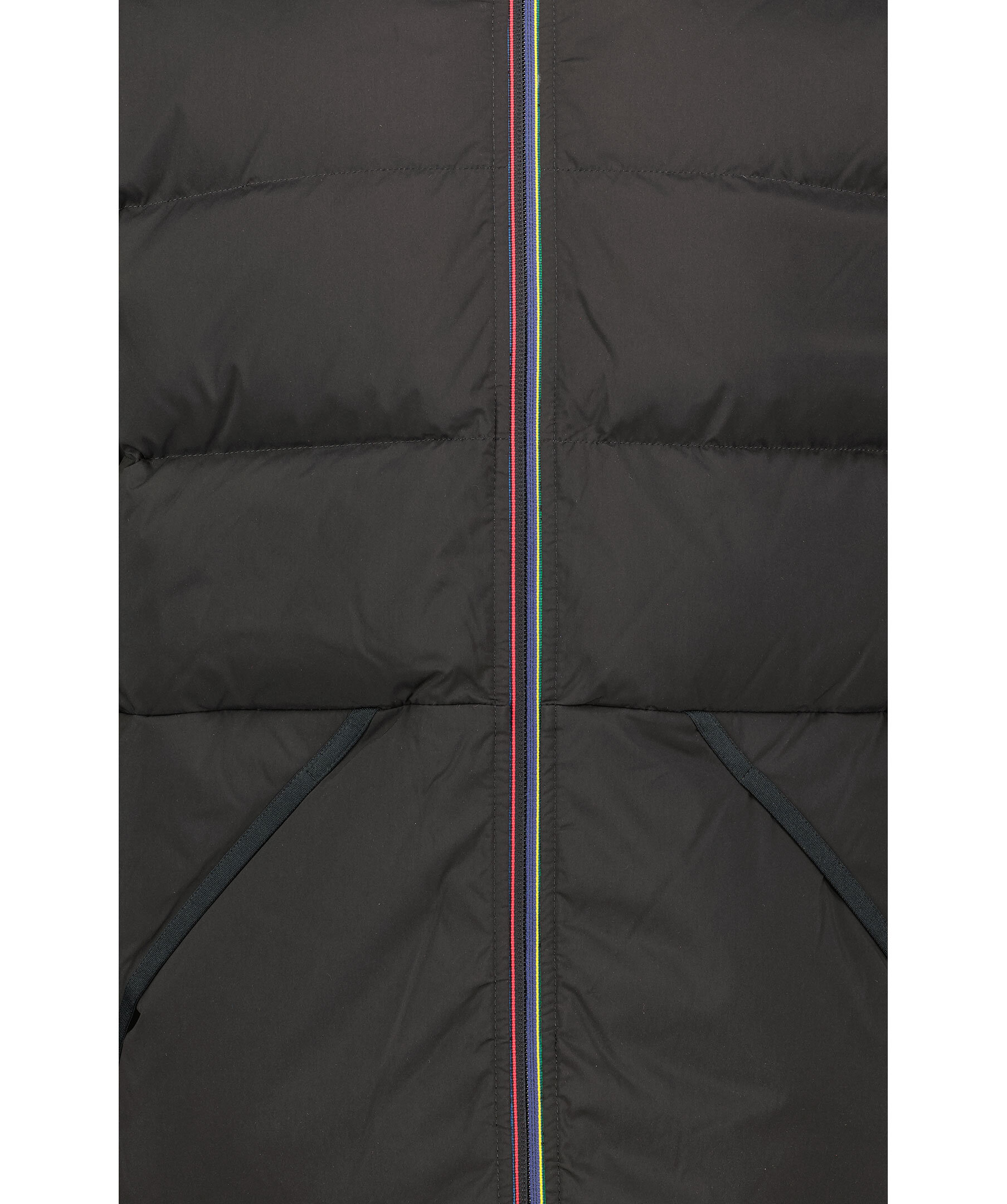 Svart dunjacka från PS Paul Smith med Röd, blå och gul detalj på dragkedjan. Stängs framtill med dragkedja. Smal elastisk mudd vid ärmslut. Snedställda fickor framtill. Smal elastisk resår vid ärmslut. Dragsko vid jackslut.