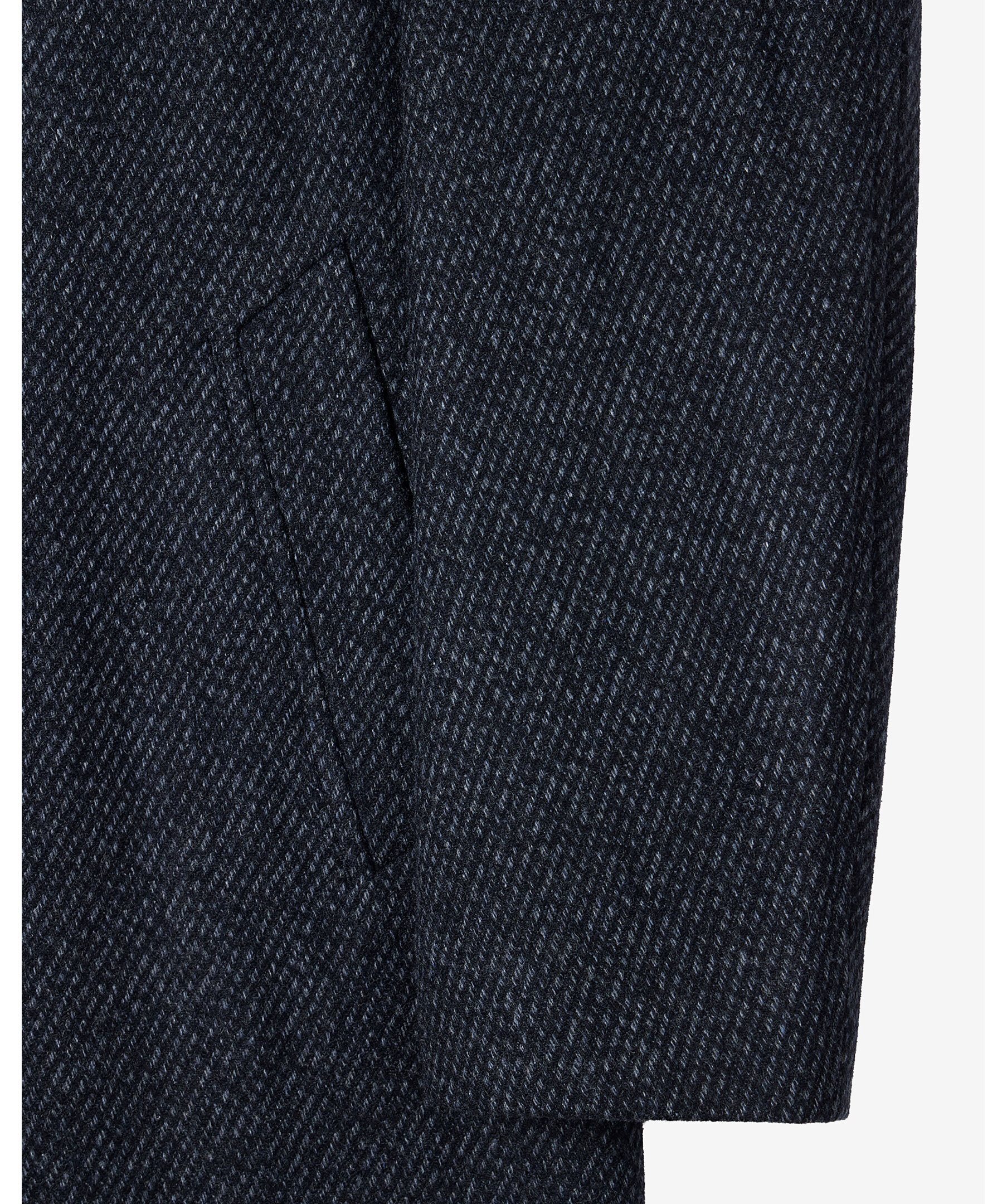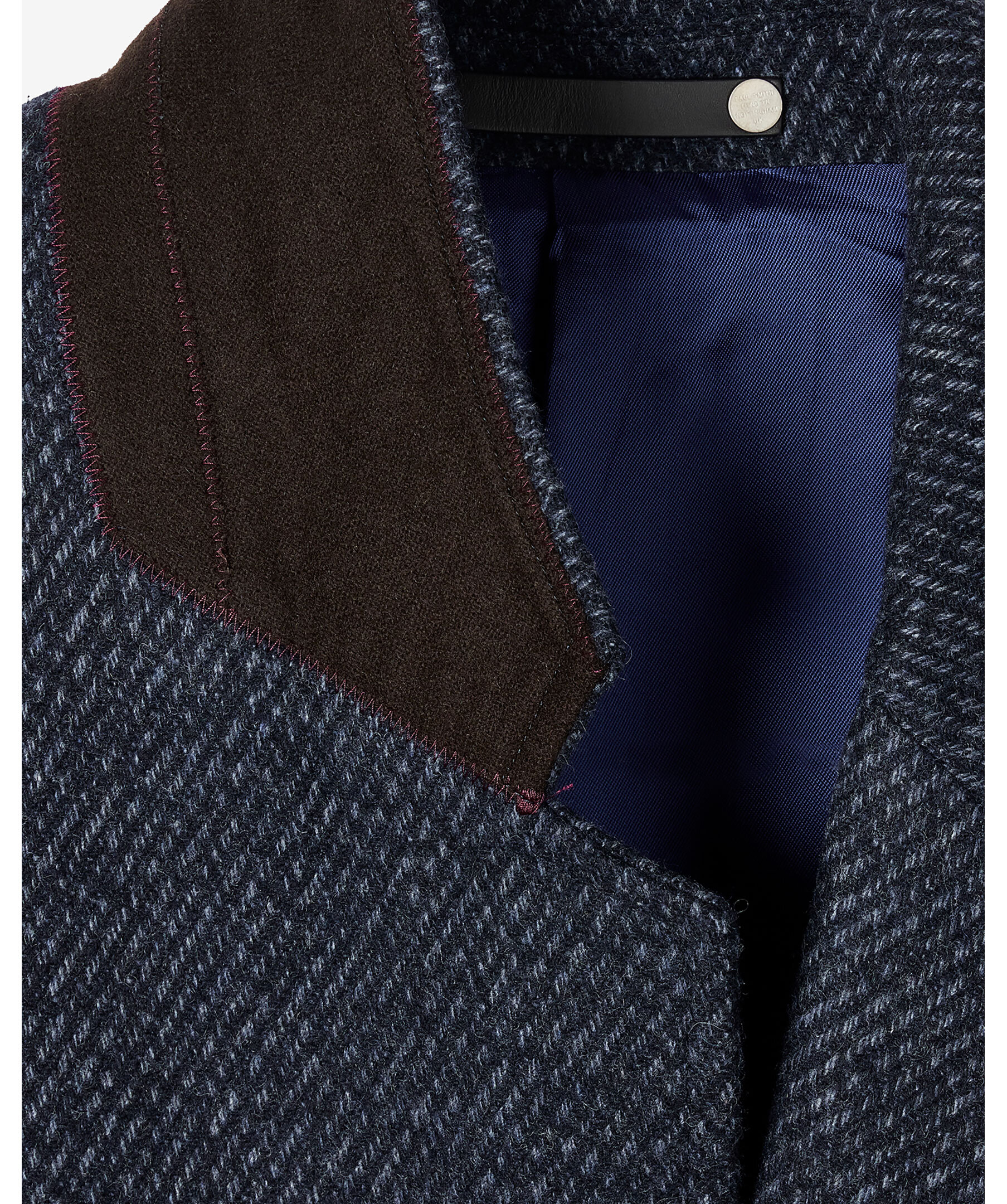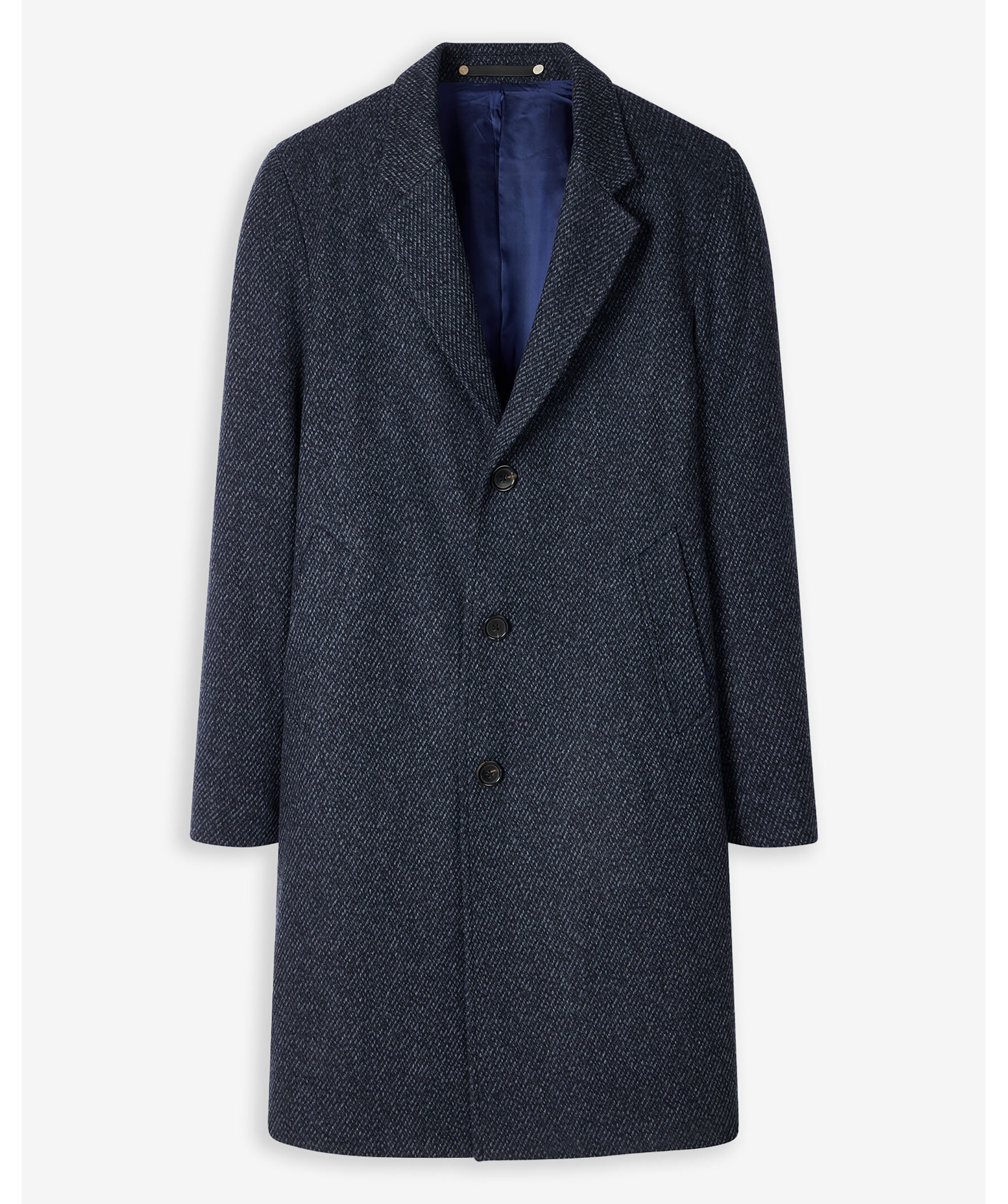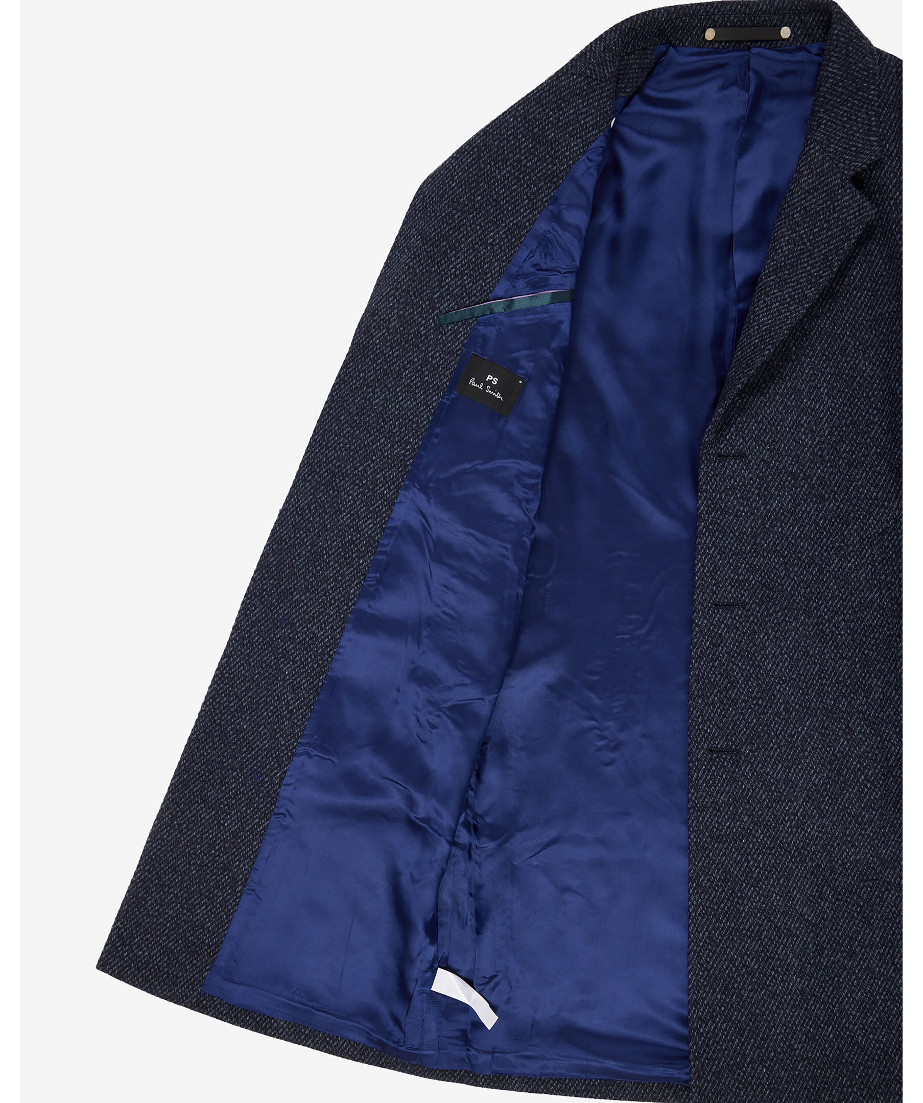 Mörkblå randig ullrock från PS. Paul Smith. Rocken är gjord i en varm ullblandning och har snedställda framfickor och blått innerfoder som ger extra komfort. Stängs med knappar framtill. Enkel slits baktill.