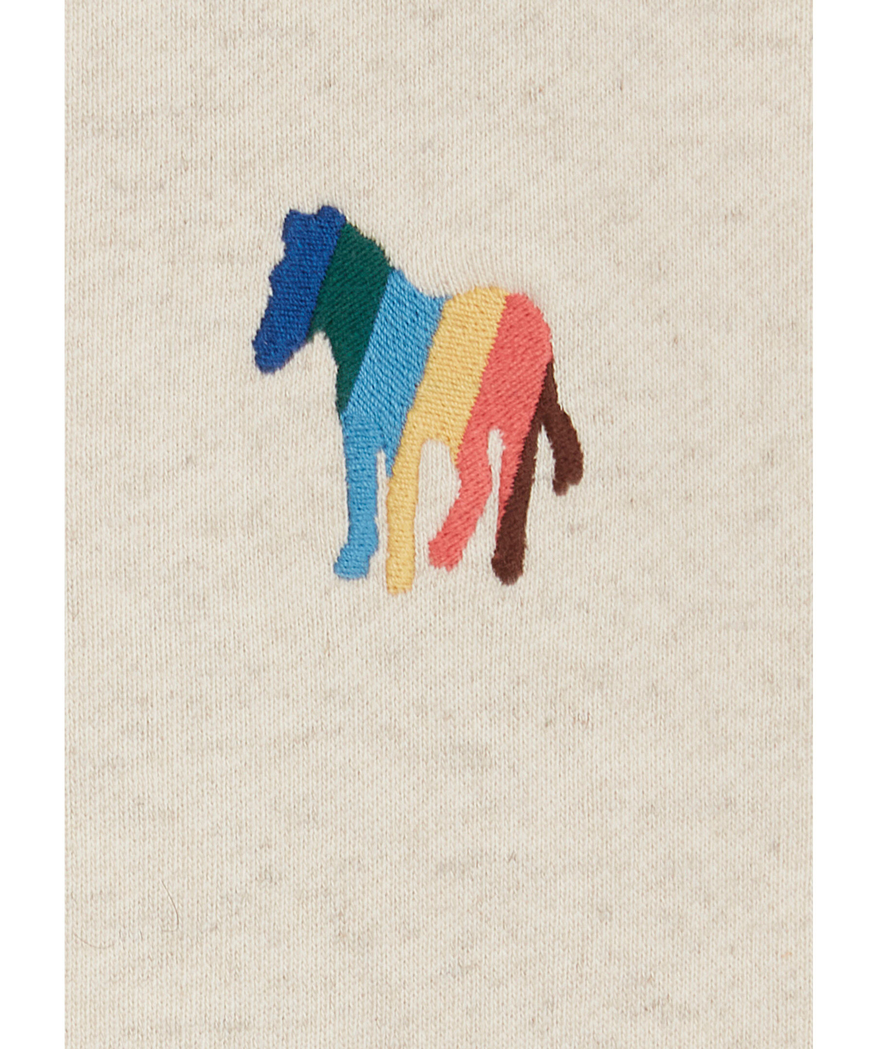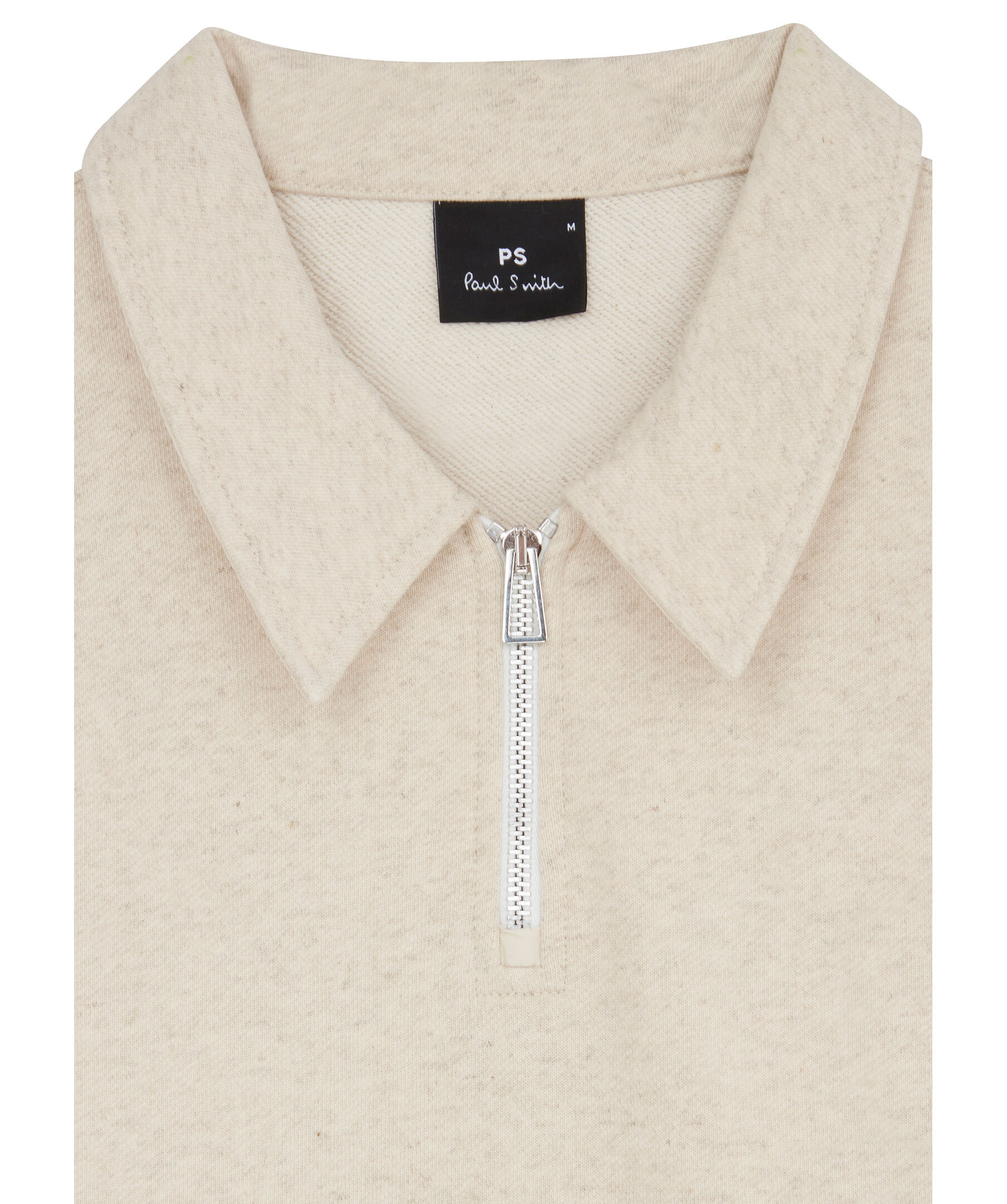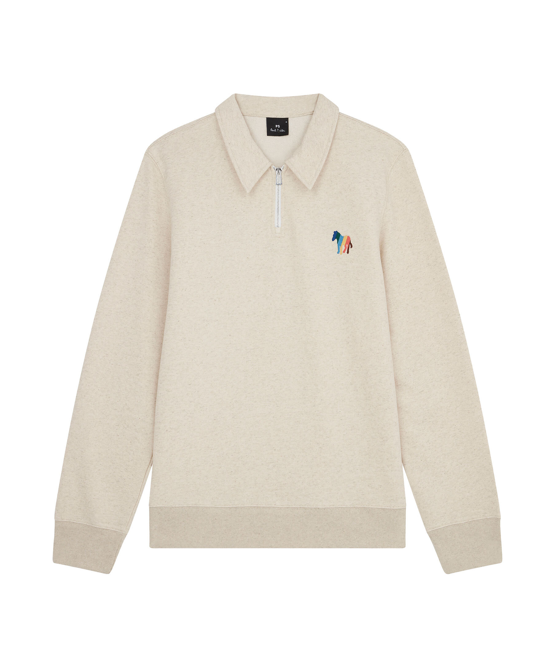 Sandfärgad half zip sweatshirt från PS Paul Smith. Broderad "Broad Stripe Zebra" på bröstet. Stängs med dragkedja och har ribbstickade muddar och midjeband. Tillverkad i en bomull- och linneblandning. Normal passform.