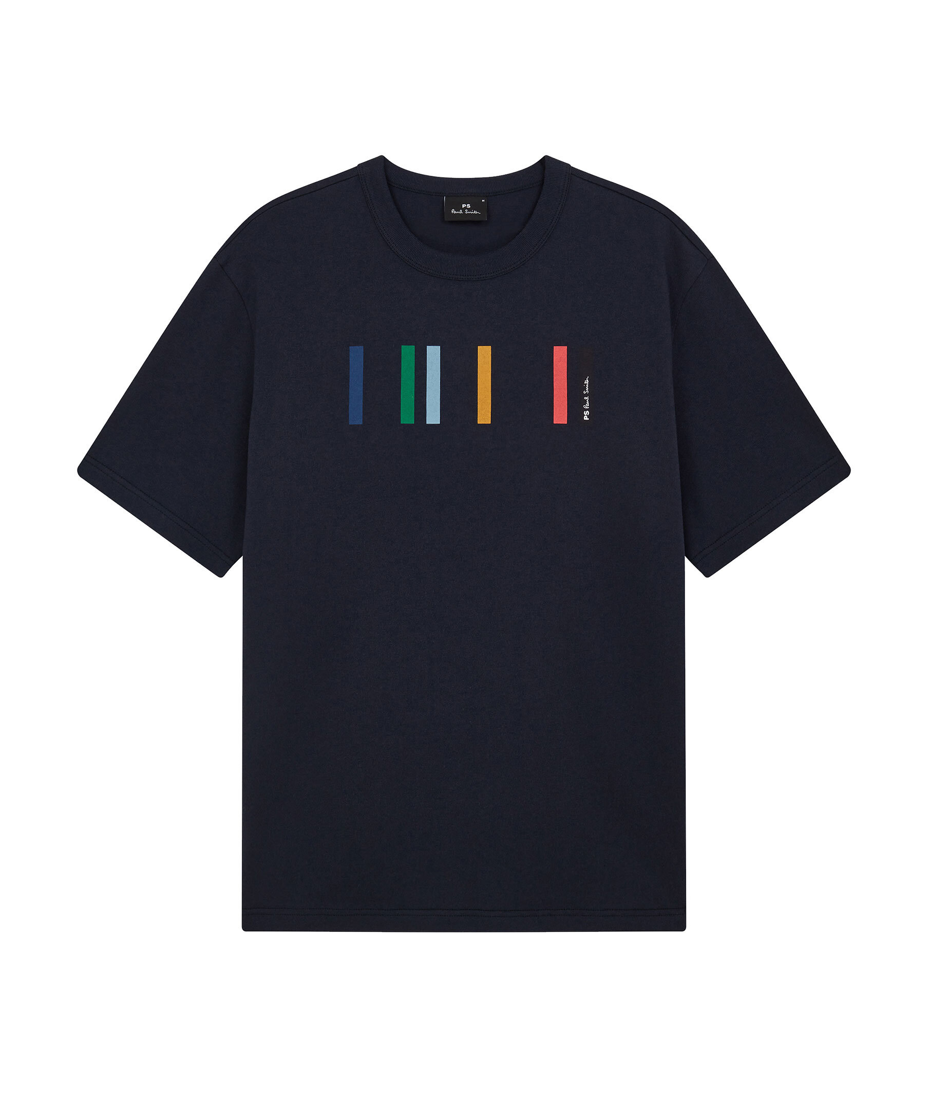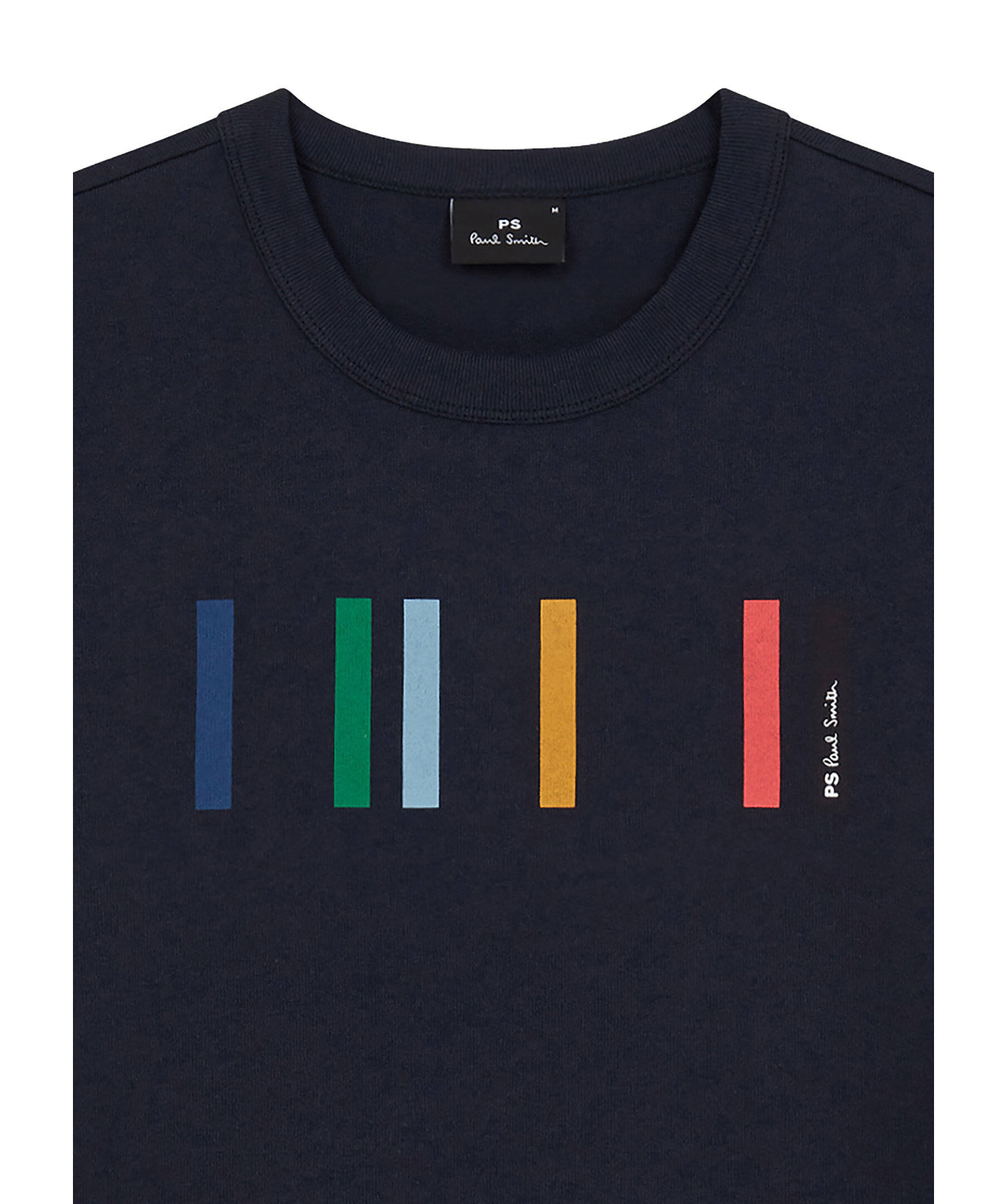 Mörkblå finstickad t-shirt från PS Paul Smith. T-shirten har rundad halsringning, korta ärmar och flerfärgade streck samt logotyp på bröstet. Tillverkad i bomull.