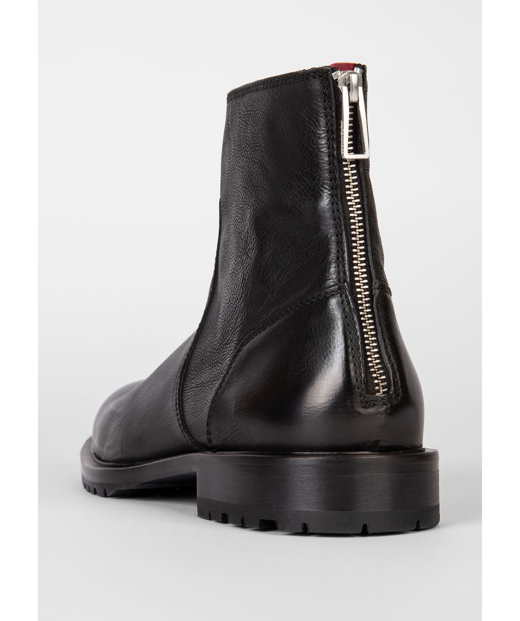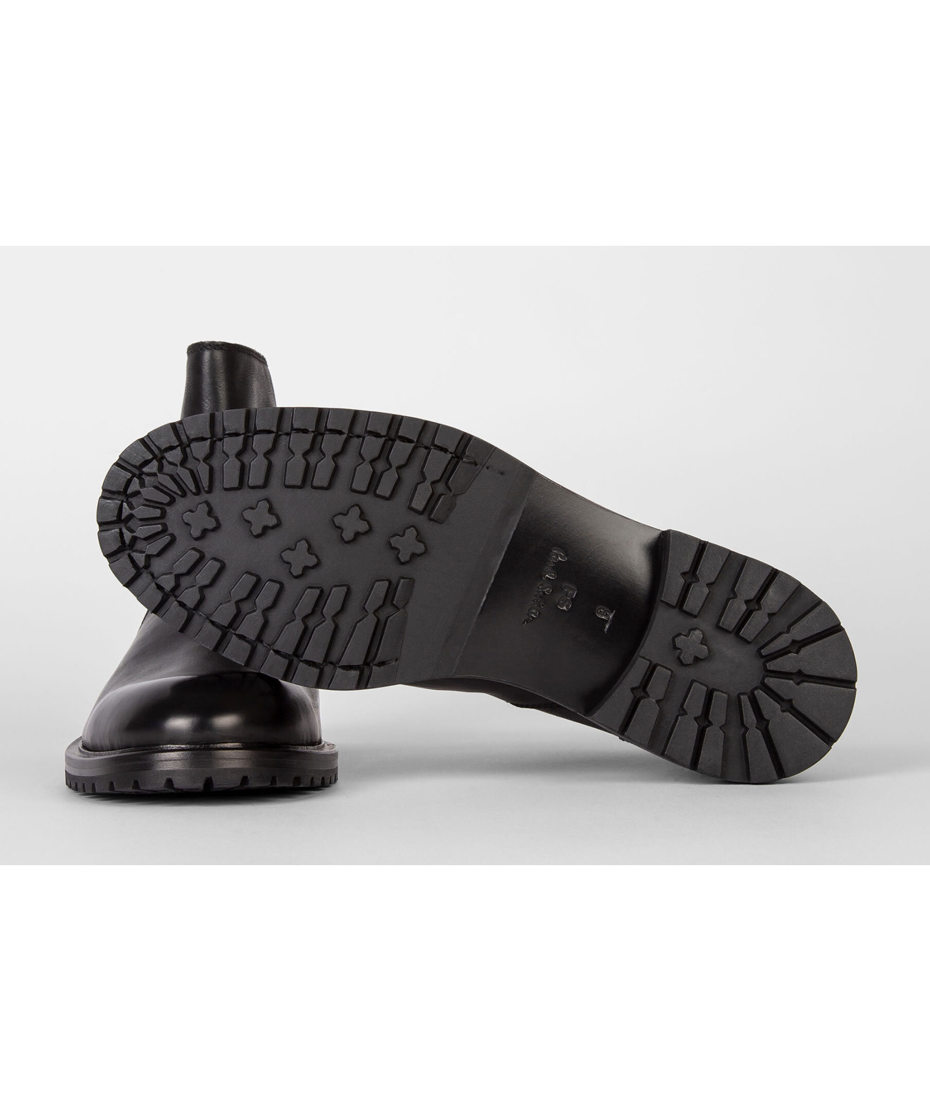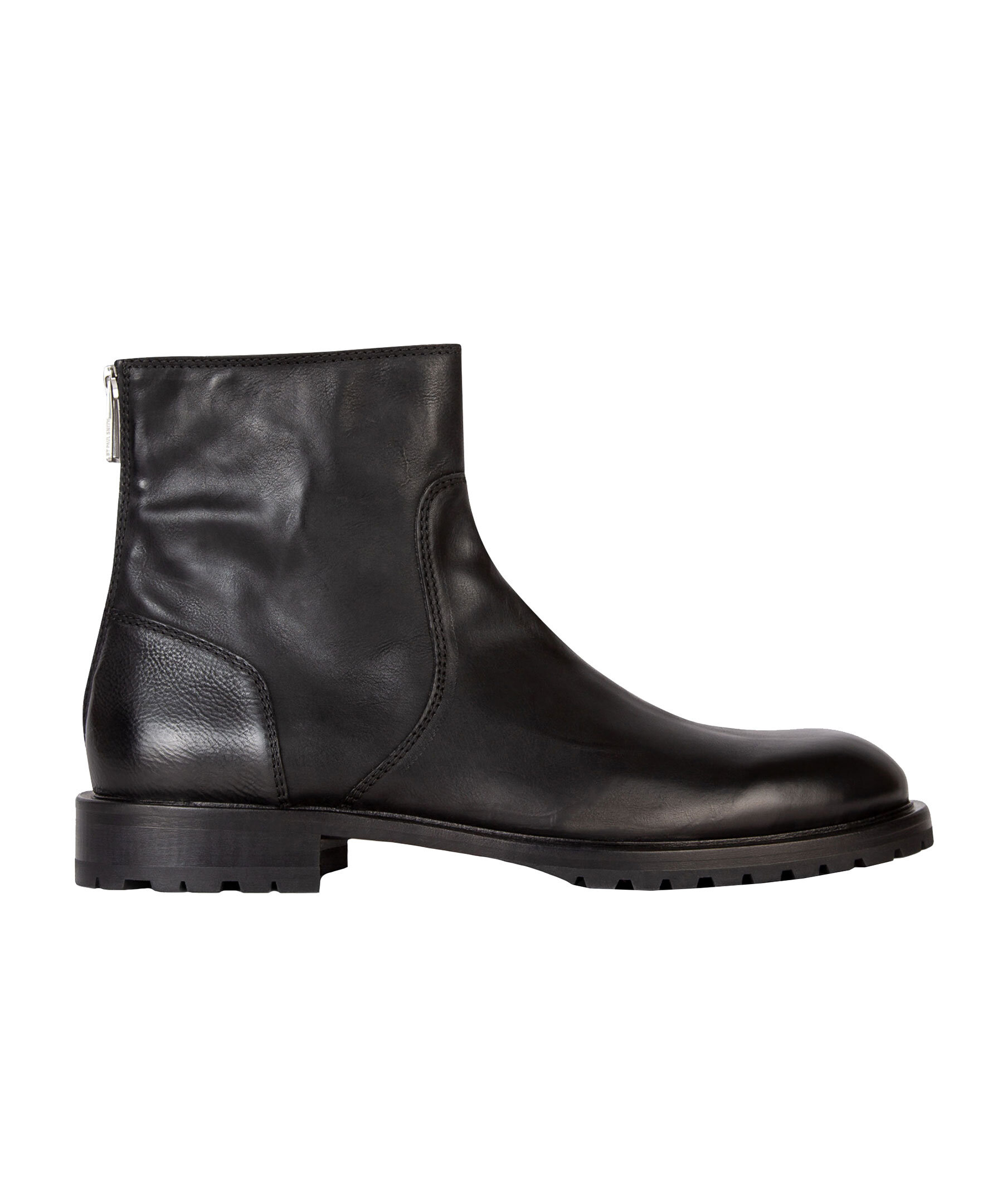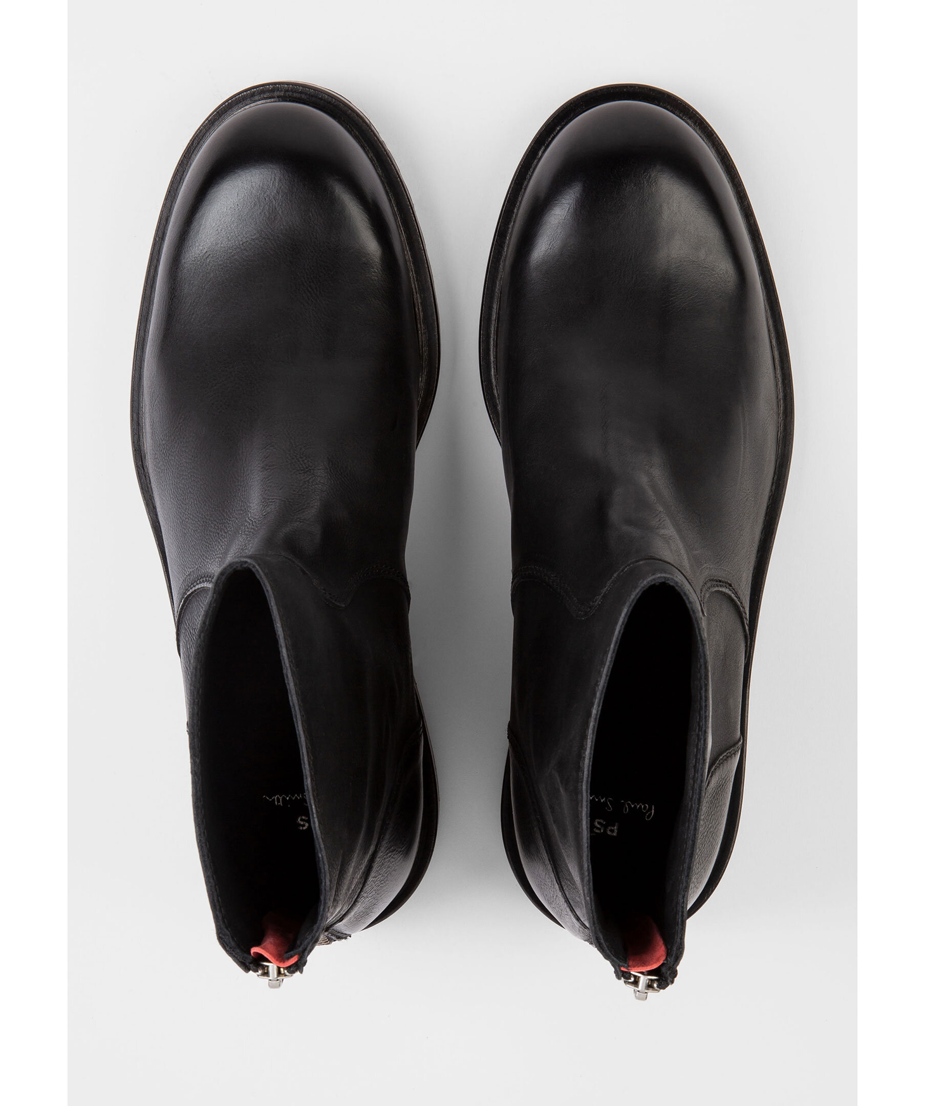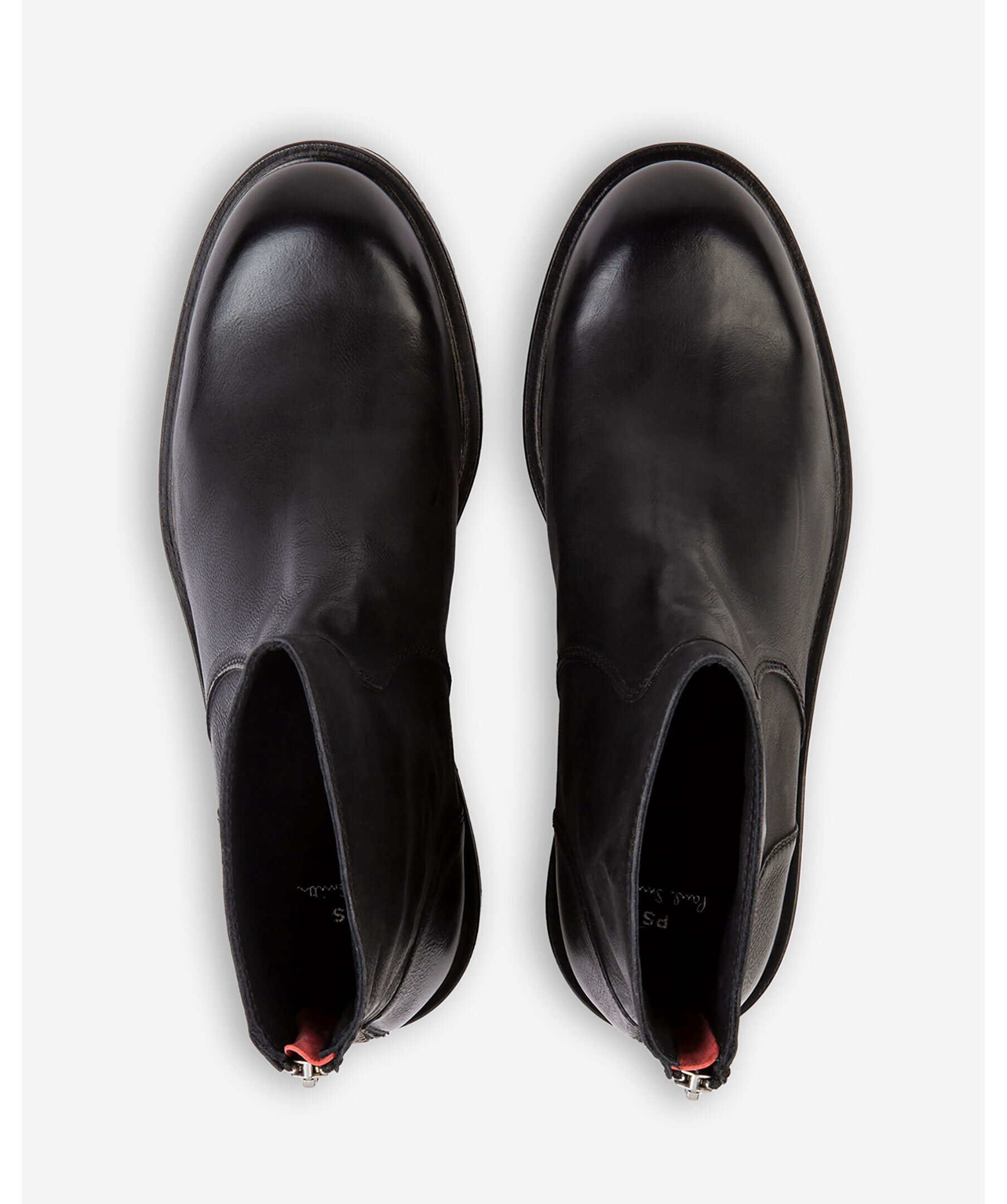 Svarta boots tillverkade i Portugal av förstklassigt läder från PS Paul Smith. Tonsydda paneler och en dragkedja baktill. Svarta gummisulor med ett bra grepp.