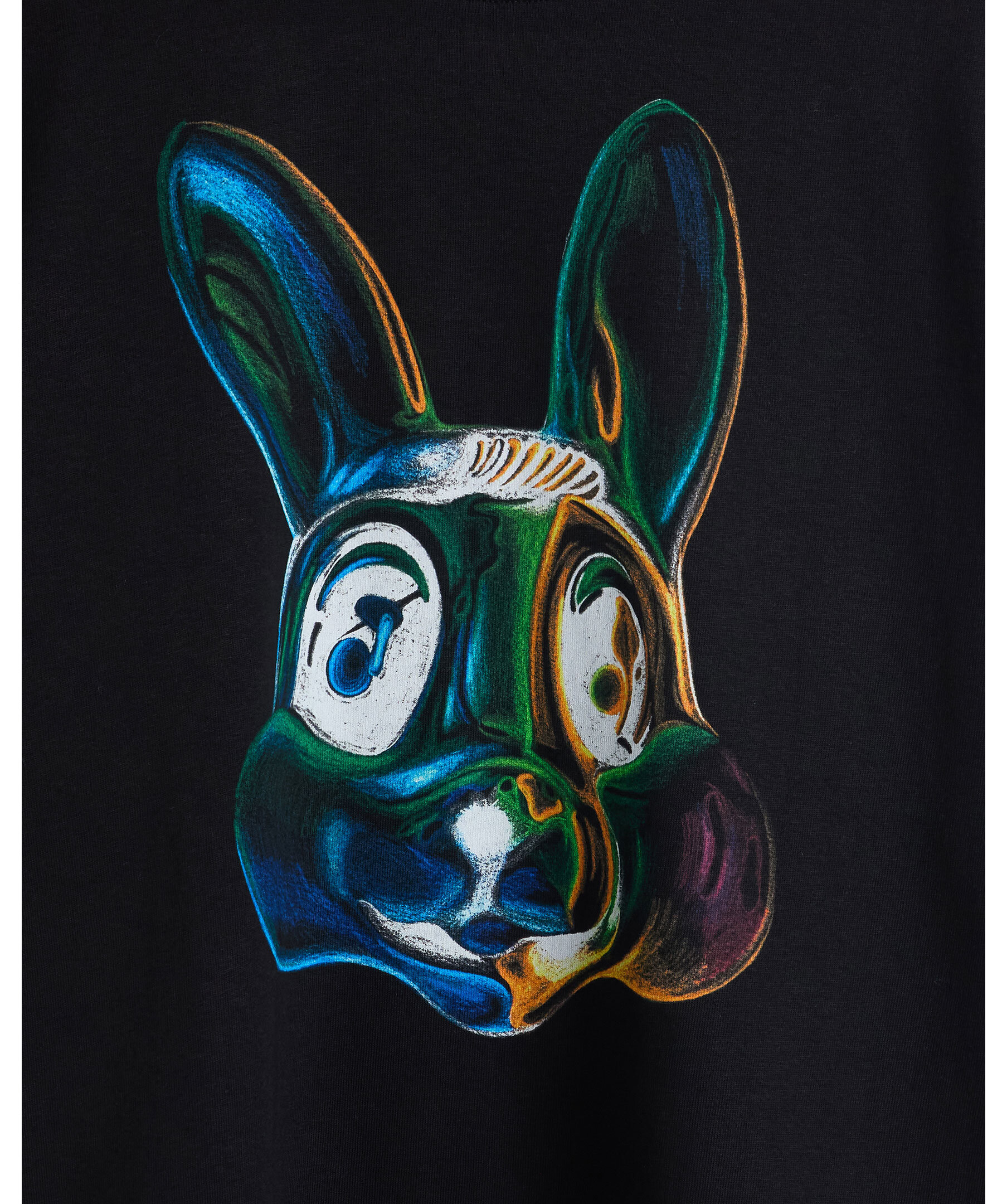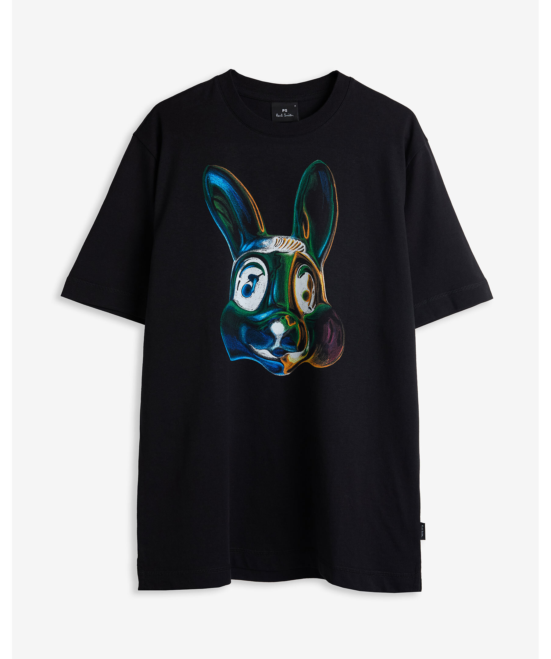 Svart t-shirt från PS Paul Smith. Tröjan har ett stort tryck föreställande ett färgglatt kanin huvud. Gjord i skön bomull och har en rundad hals.