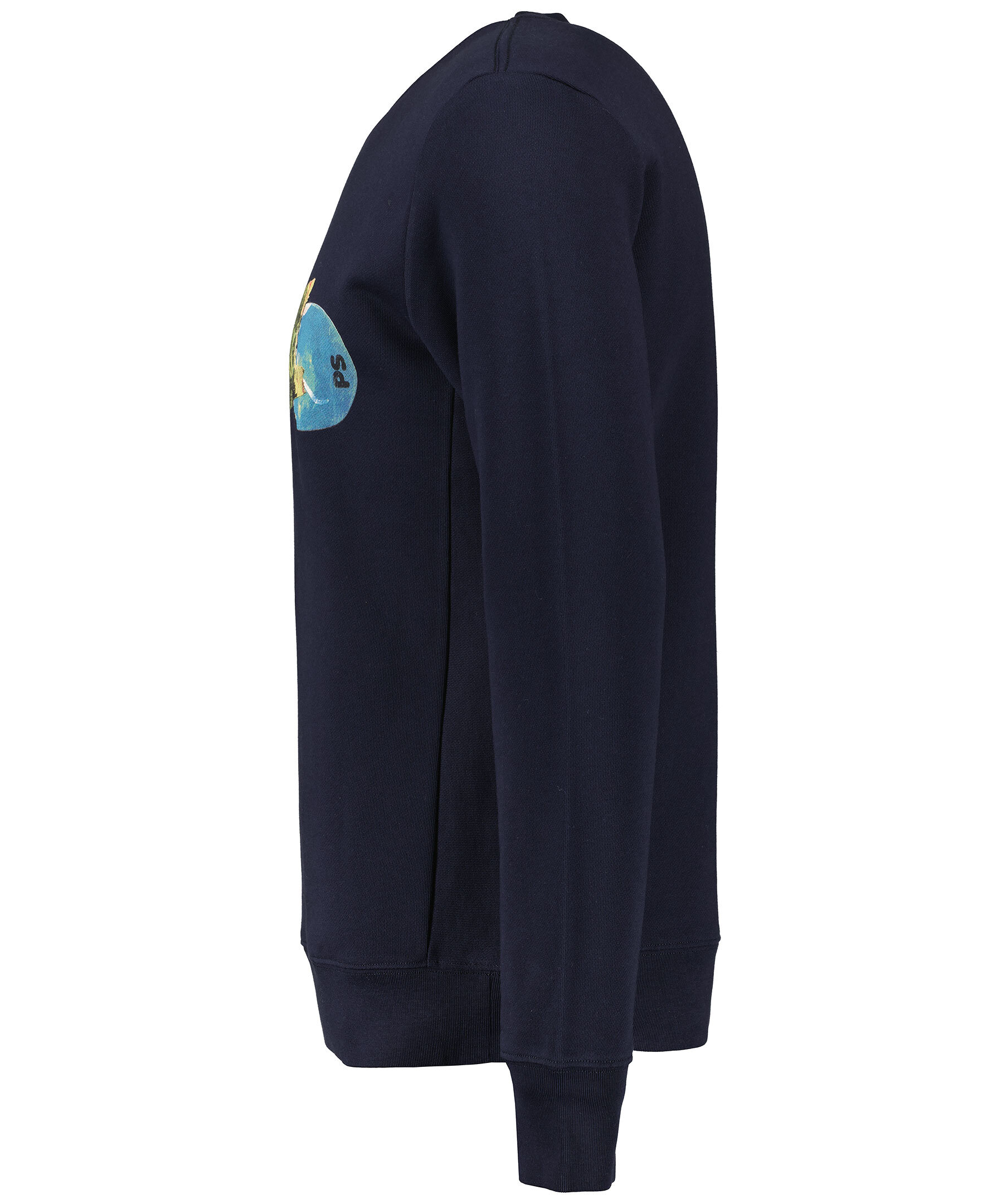 Mörkblå sweatshirt från Paul Smith. Tryckt logotyp över bröstet. Ribbstickade muddar vid halsring, ärm och plaggslut. Tillverkad i 100% bomull.
