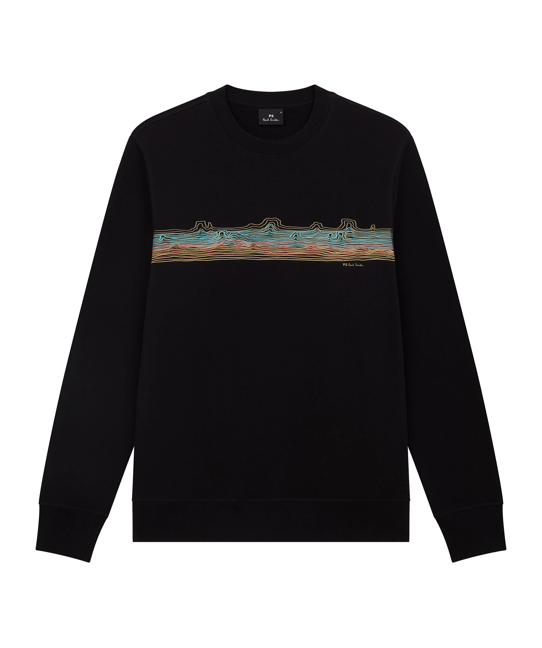 Svart sweatshirt från PS Paul Smith. Sweatshirten har rundad halsringning, ett multifärgat "Desert Stripe"-tryck över bröstet och ribbade muddar, krage och midjeband. Tillverkad i en bomullsblandning.