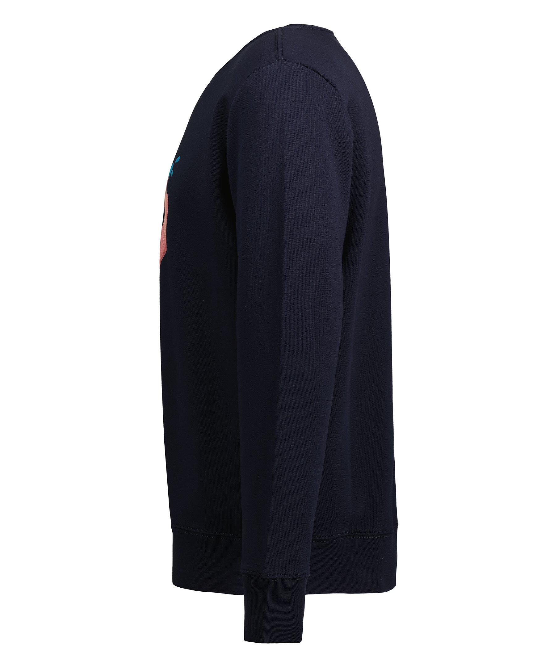 Mörkblå sweatshirt från PS Paul Smith. Tryckt logotyp över bröstet. Ribbstickade muddar vid halsringning, ärm- och plaggslut. Tillverkad i 100% bomull.