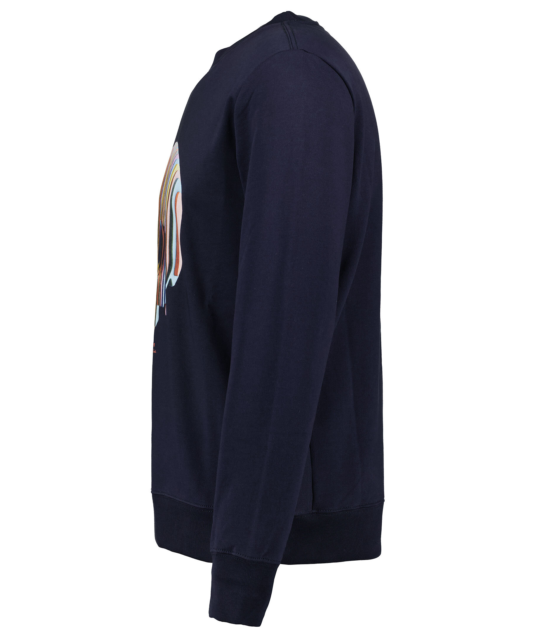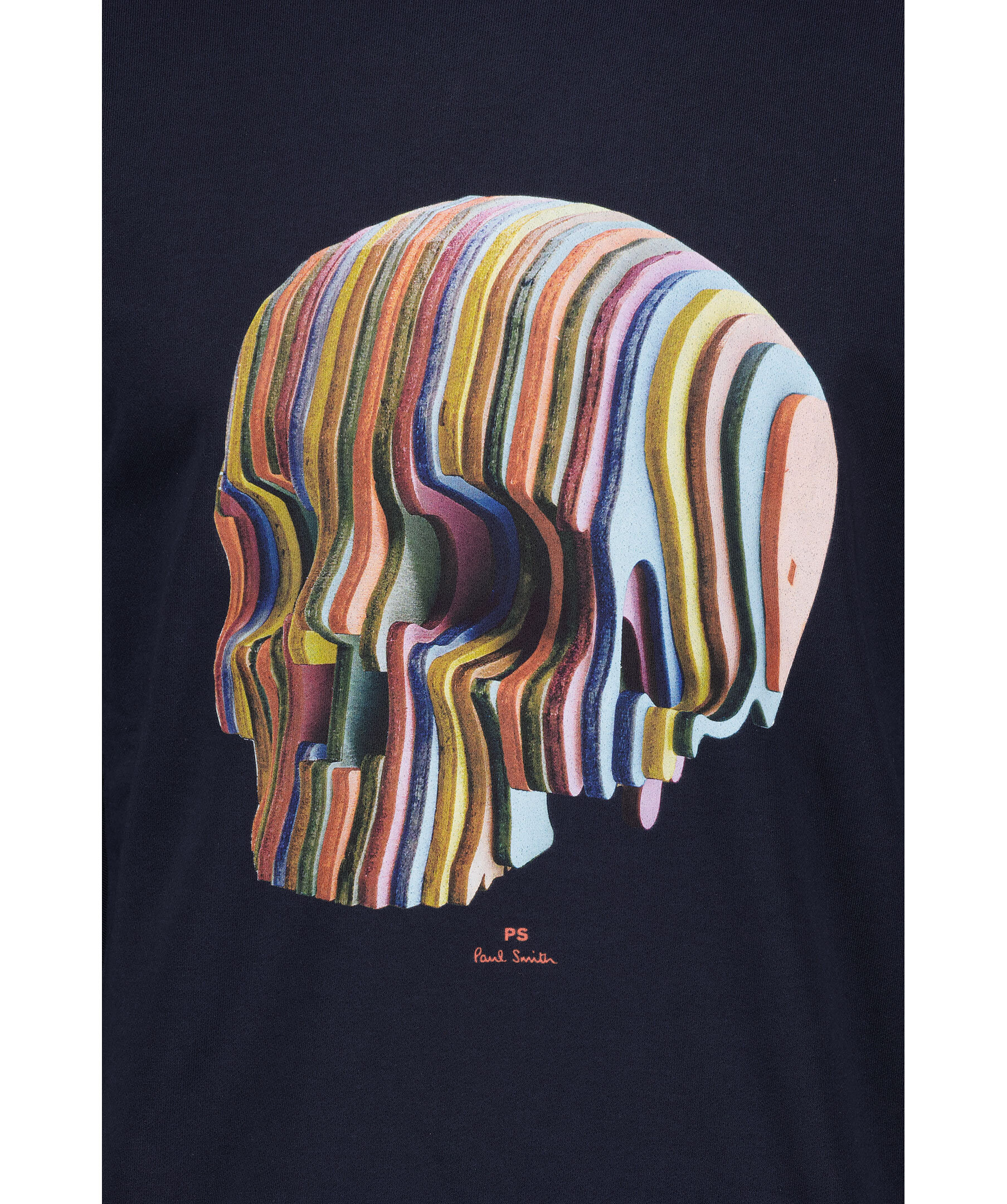 Marinblå sweatshirt från PS Paul Smith. Stort färgglatt tryck på bröstet i form av en dödskalle, rundad hals och muddar i ärmslut. Tillverkad i 100% bomull och har en mjuk, borstad insida.