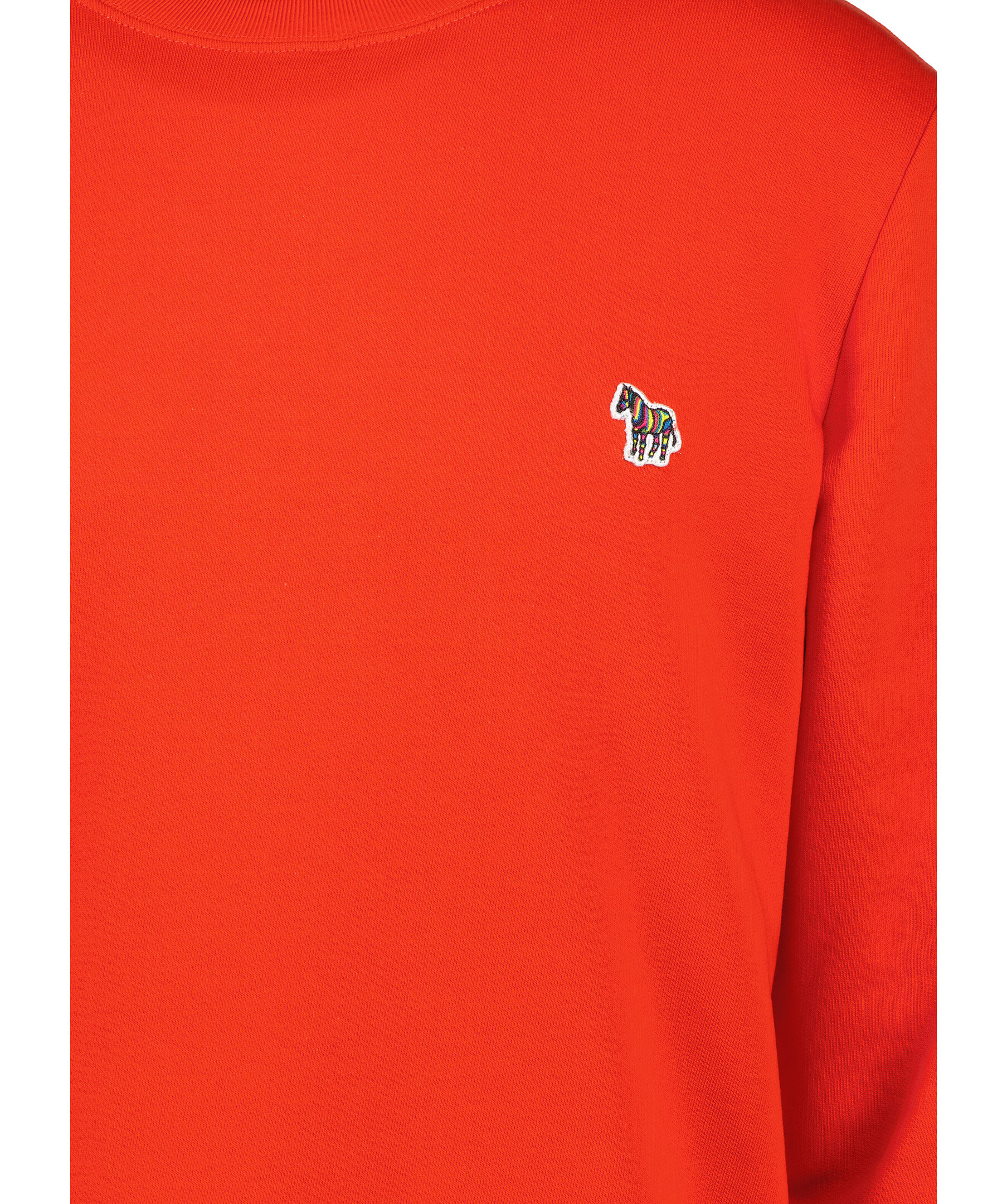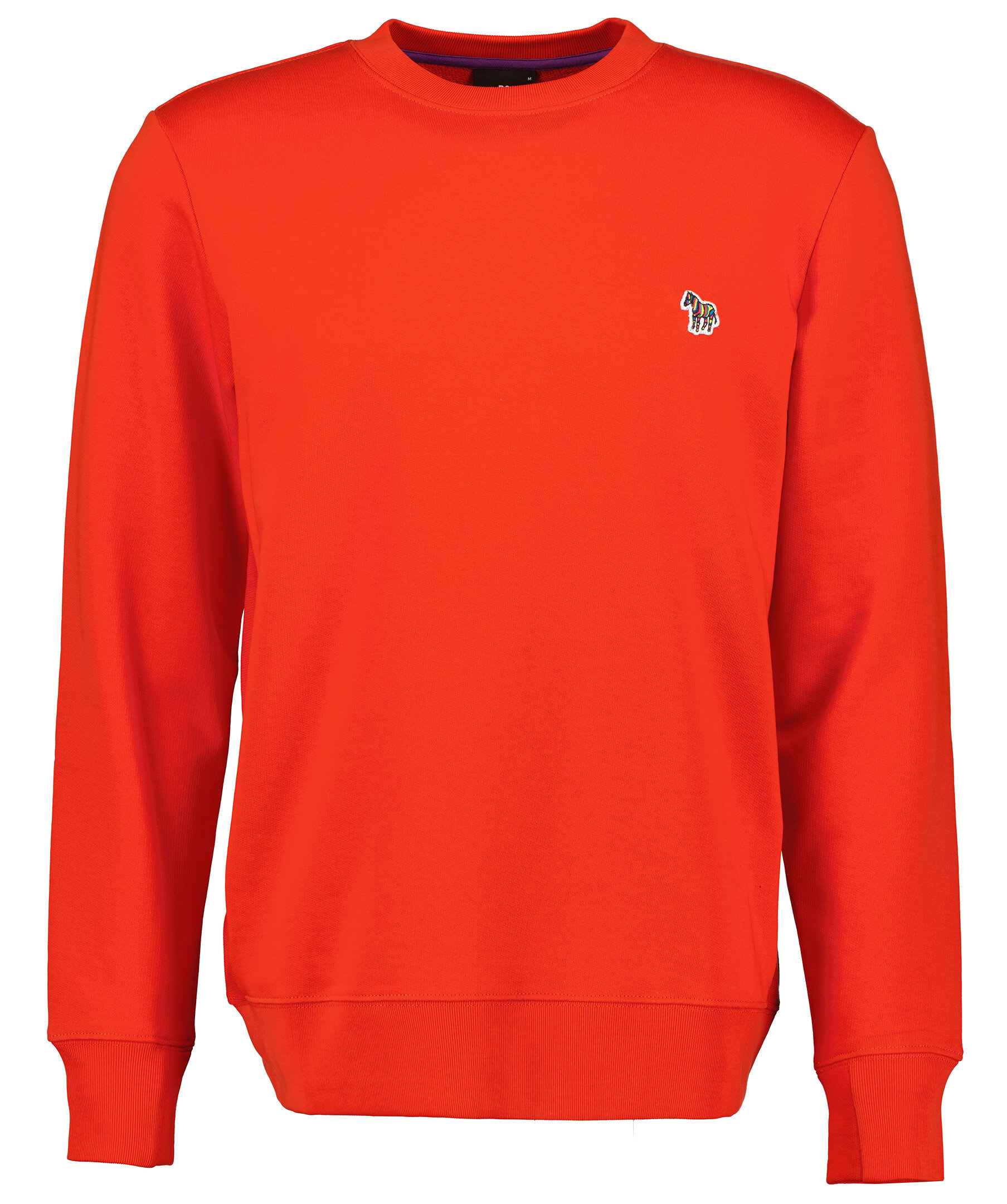 Röd sweatshirt från PS Paul Smith. Rundad halsringning. Ribbstickade muddar vid ärm- och plaggslut. Broderad patch på vänster bröst. Tillverkad i 100% bomull.