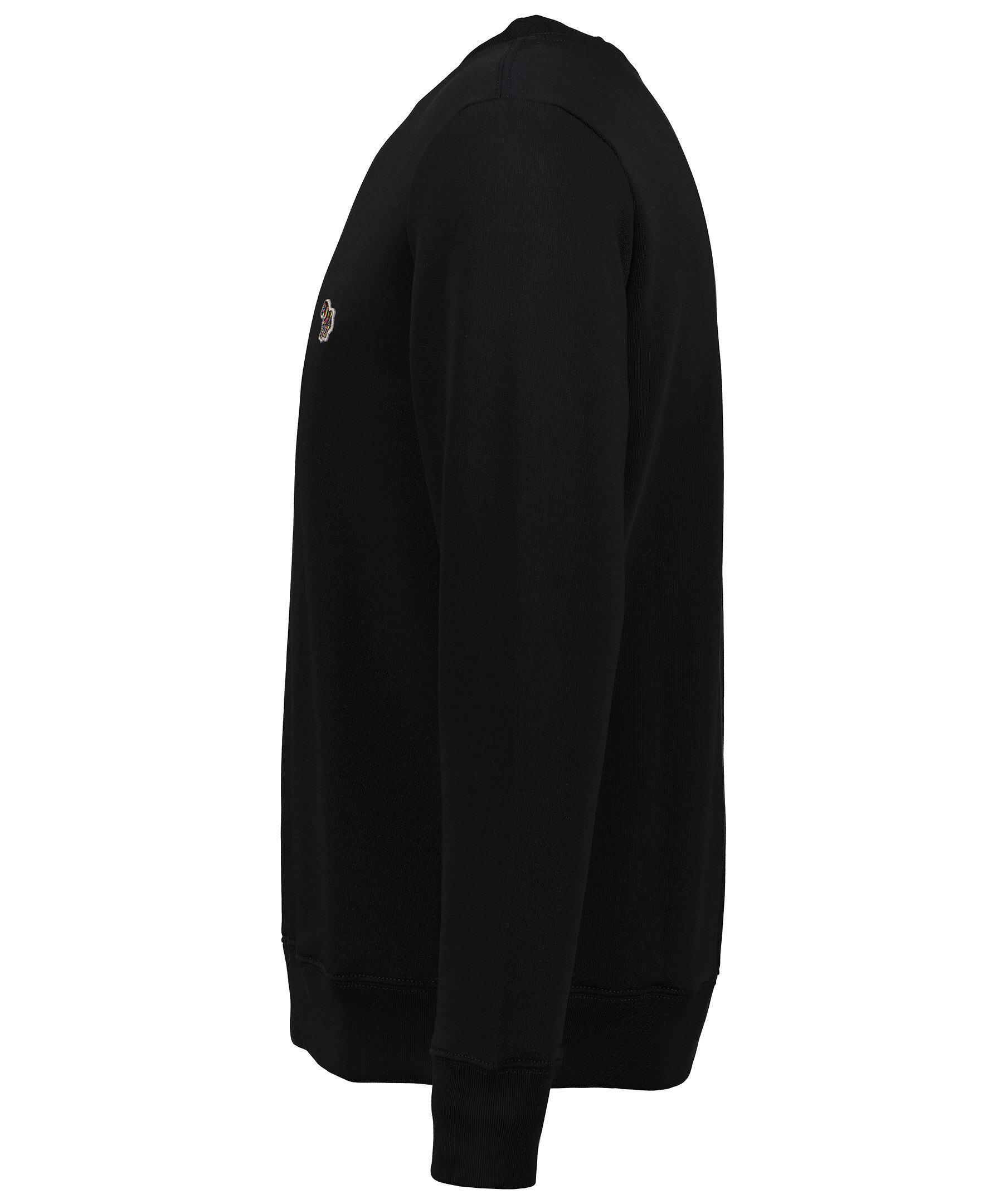 Svart sweatshirt från PS Paul Smith. Rundad halsringning. Ribbstickade muddar vid ärm- och plaggslut. Broderad patch på vänster bröst. Tillverkad i 100% bomull.