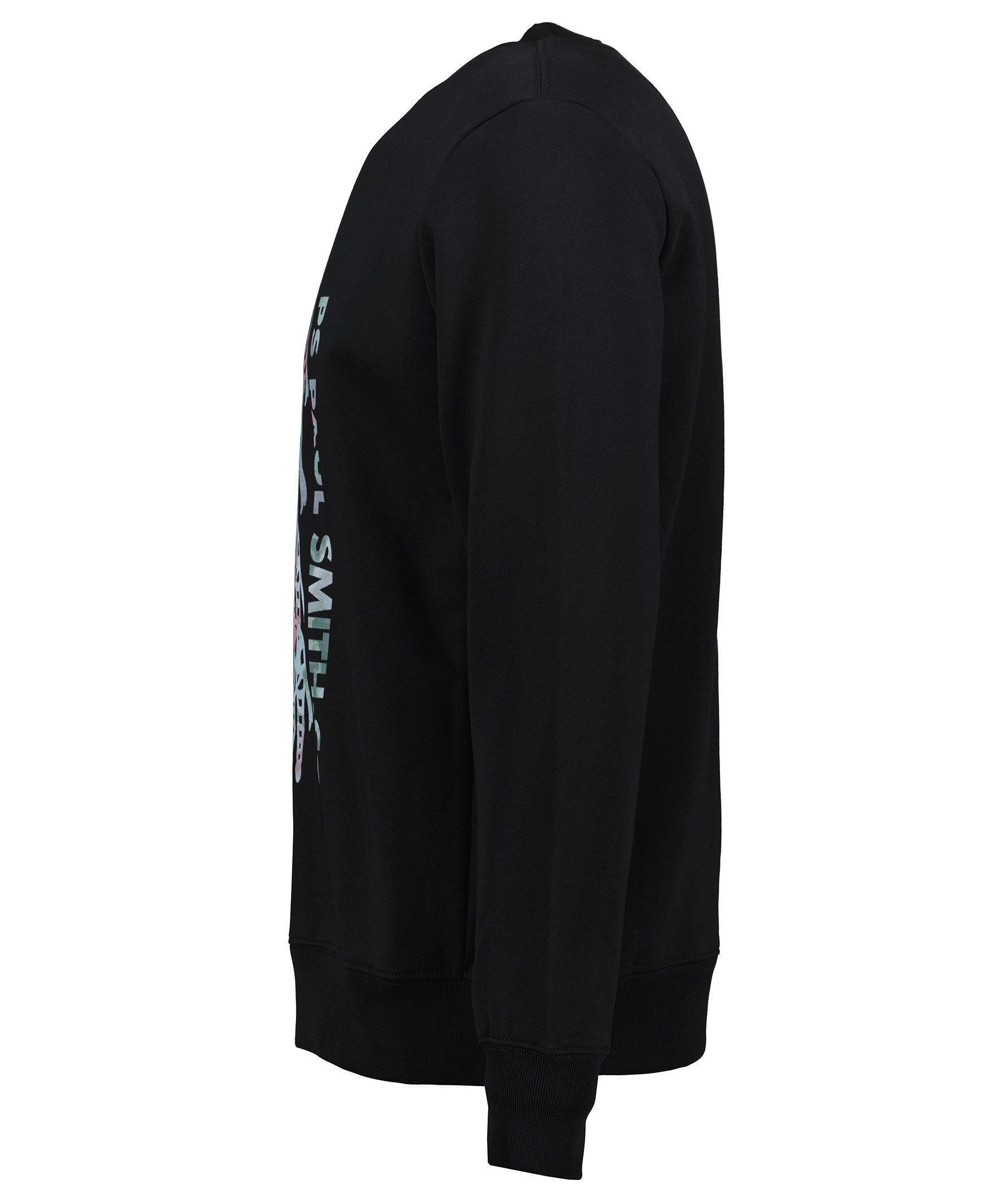 Svart sweatshirt från PS Paul Smith. Rundad halsringning. Ribbstickade muddar vid ärm- och plaggslut. Tryck över bröstet och magen. Borstad insida. Tillverkad i 100% bomull.