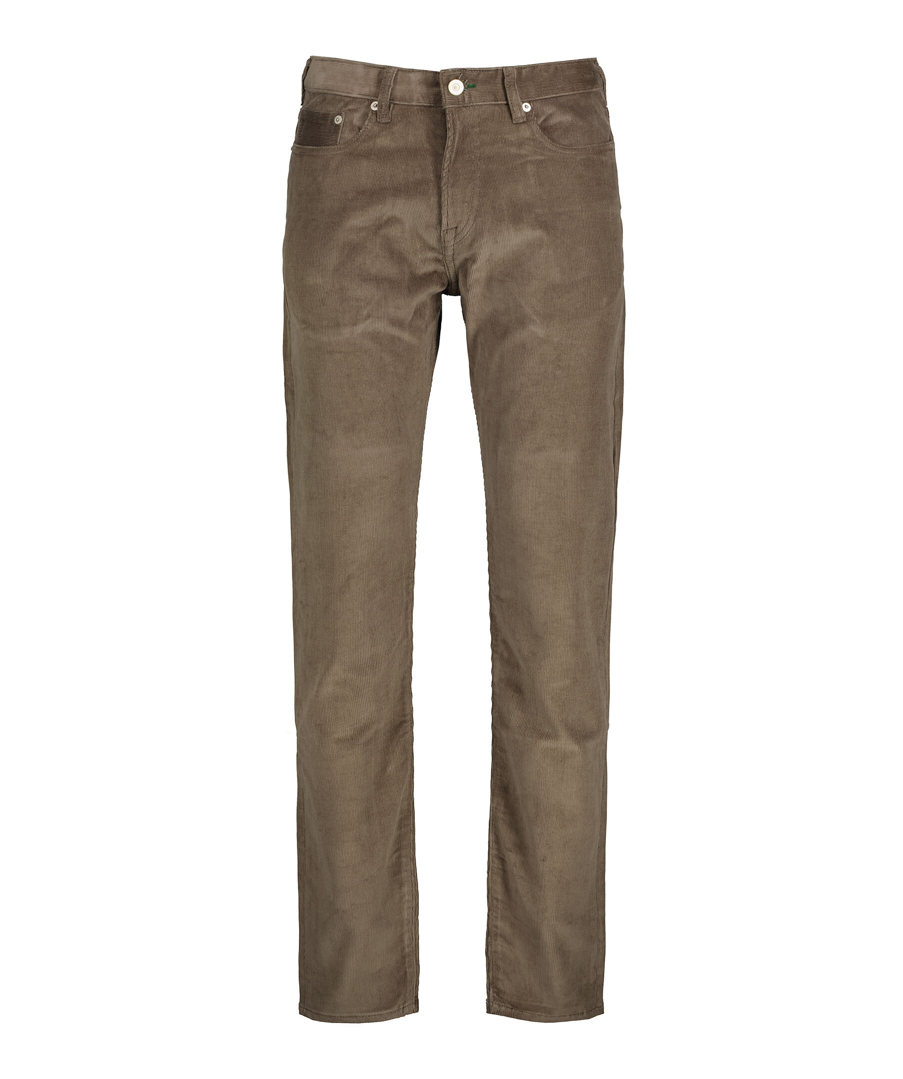 Bruna manchesterjeans från PS Paul Smith. Jeansen har en avmslnande passform, bältehällor i midjan, fem fickor samt logotyp på ena bakfickan och på linningen. Tillverkade i en stretchig bomullsblandning.