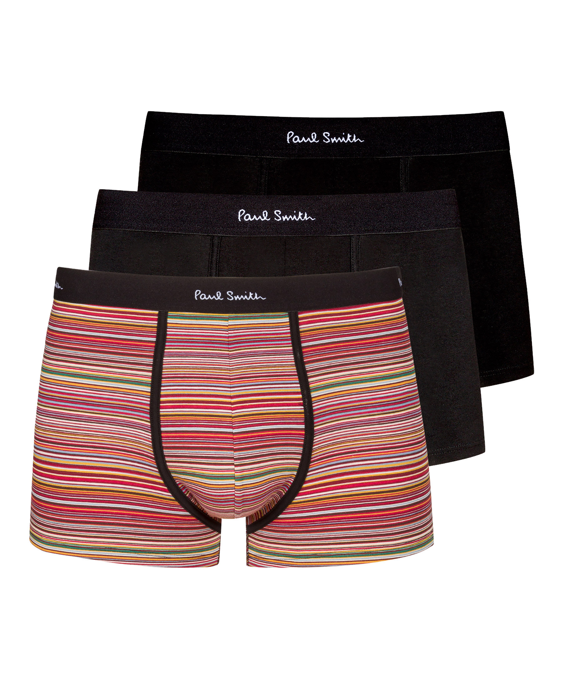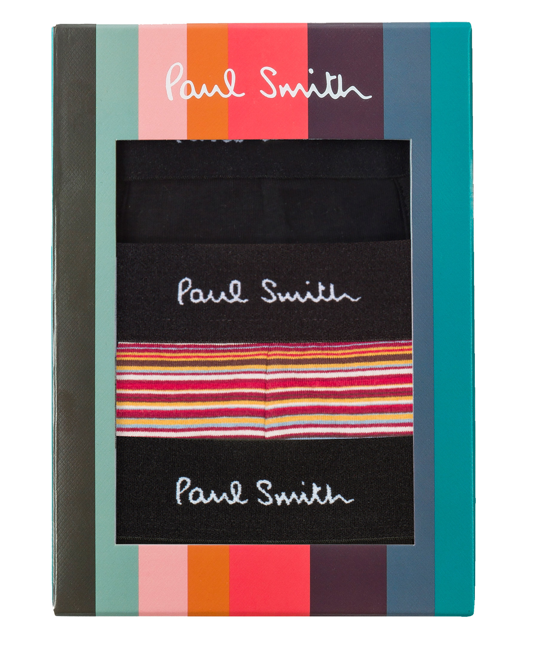 Tre pack, randiga kalsonger i boxermodell från PS Paul Smith. Två enkla svarta par och en röd randig i Paul Smiths signatur ränder. Svart mudd i midjan med vit logotyp på.