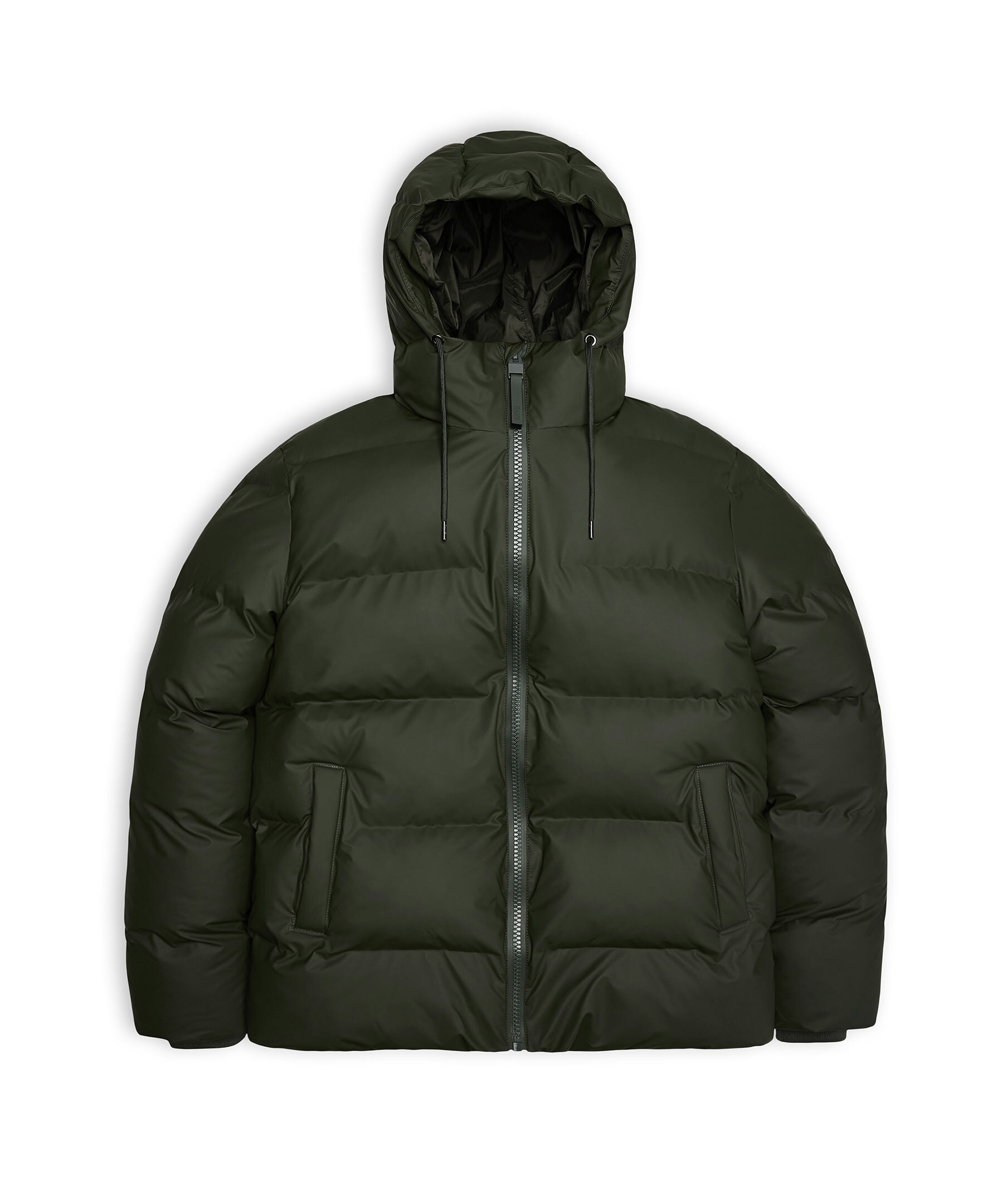 Mörkgrön Puffer jacka från Rains. En vattentät vinterjacka med en ren, lättburen puffer-estetik. Som en del av Alta Puffer-serien kännetecknas plagget av en raffinerad silhuett, breda signaturkammare och avskalade detaljer. Den här lyxiga puffern i vattentätt signaturtyg som andas bygger på fjäderlös kammarteknologi som håller dig varm och bekväm i de kallaste vädren. Jackan har gummerat tvåvägsblixtlås, ultraljudsgjutna sömmar, rymliga fleecefodrade sidfickor, dolda stormmanschetter och inre bröstficka. Silhuetten har fodrad huva med dragsko.