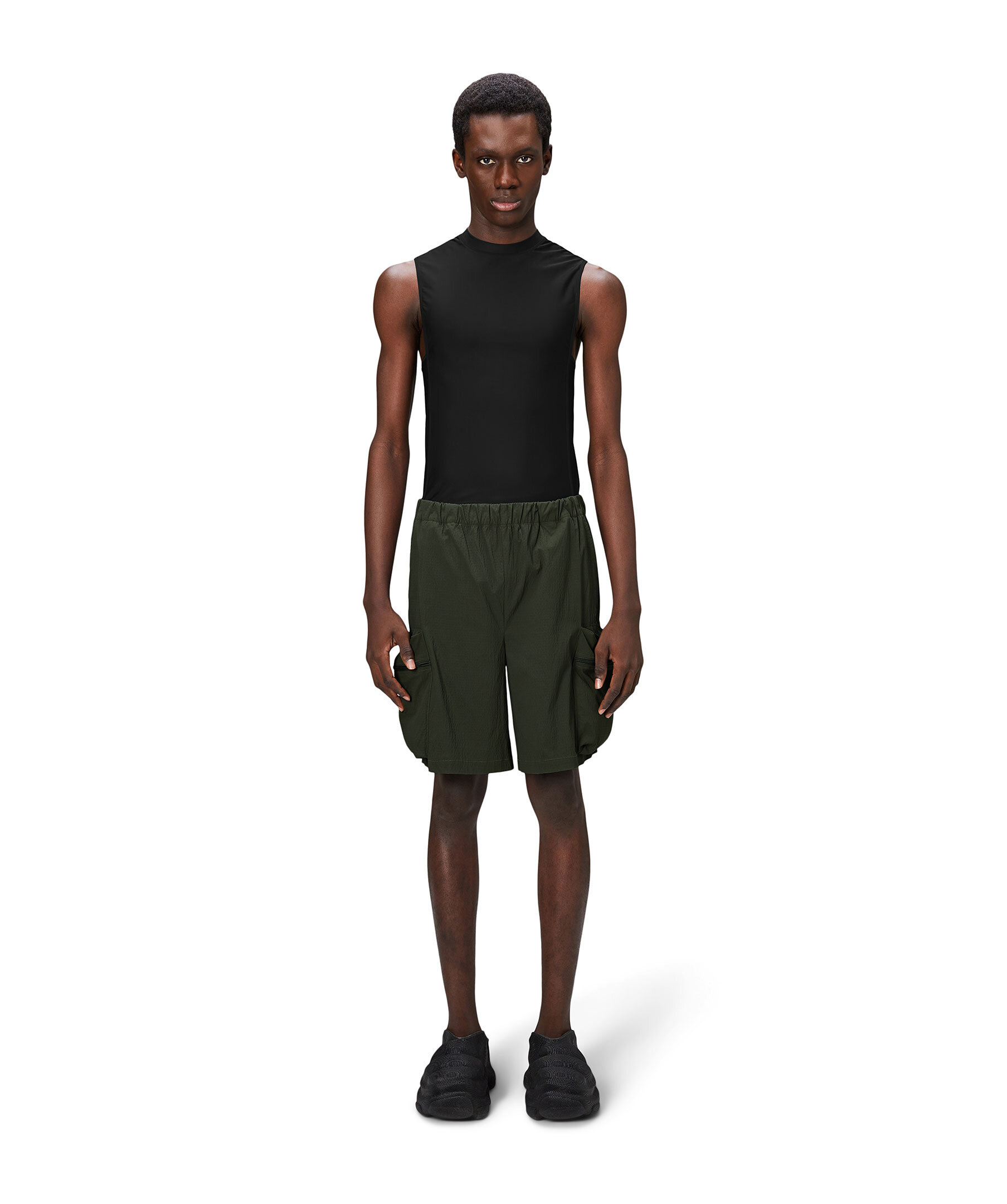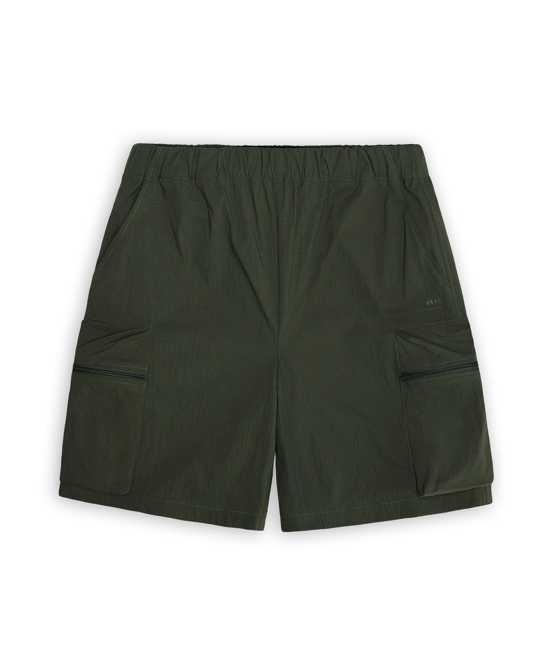 Mörkgröna shorts från Rains. Shortsen har två snedställda fickor samt två oversized fickor med dragkedja och två bakfickor med dragkedja. Elastisk midja. Tillverkade av lätt, andningsbar nylon-ripstop blandat med stretch för optimal komfort.