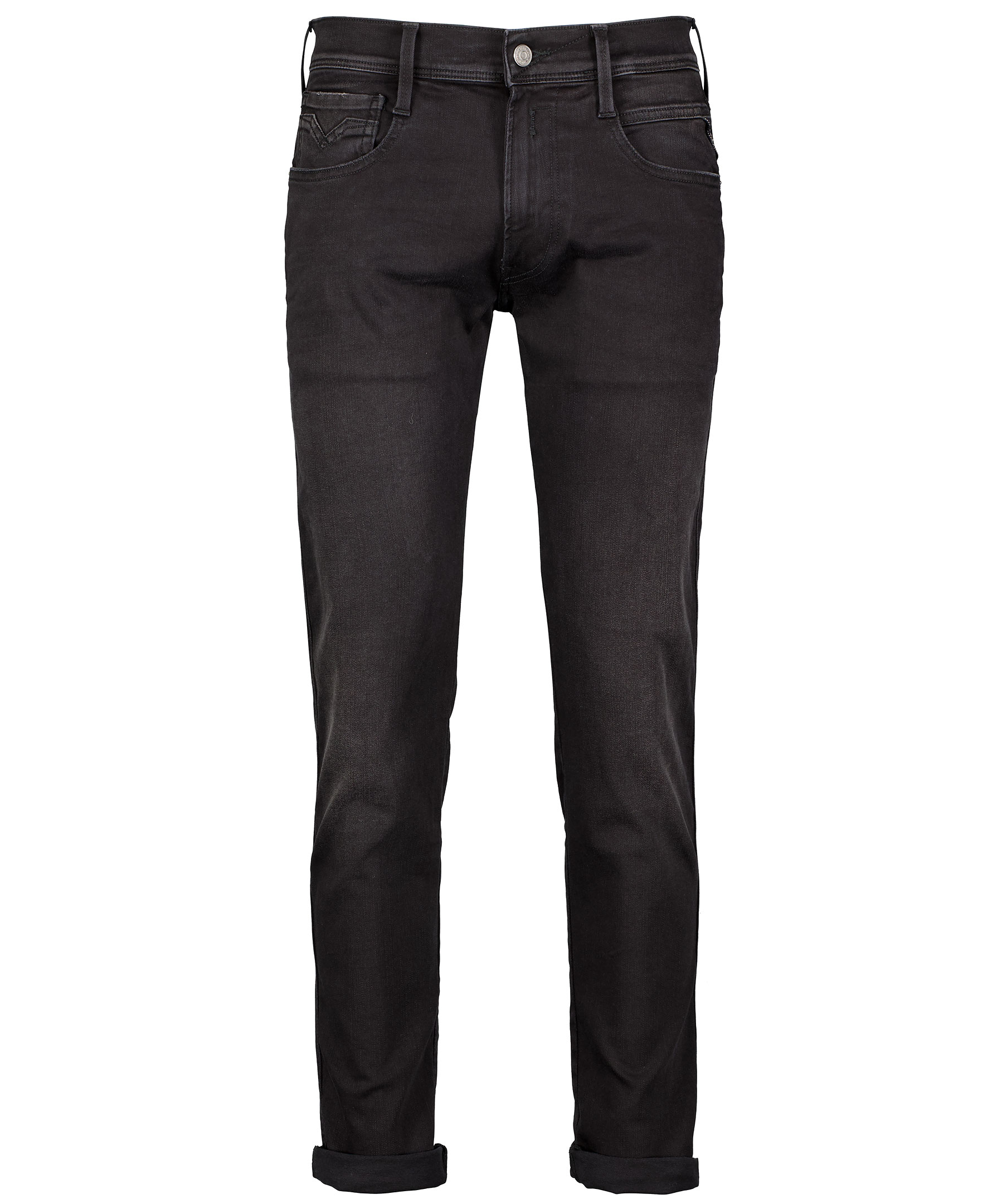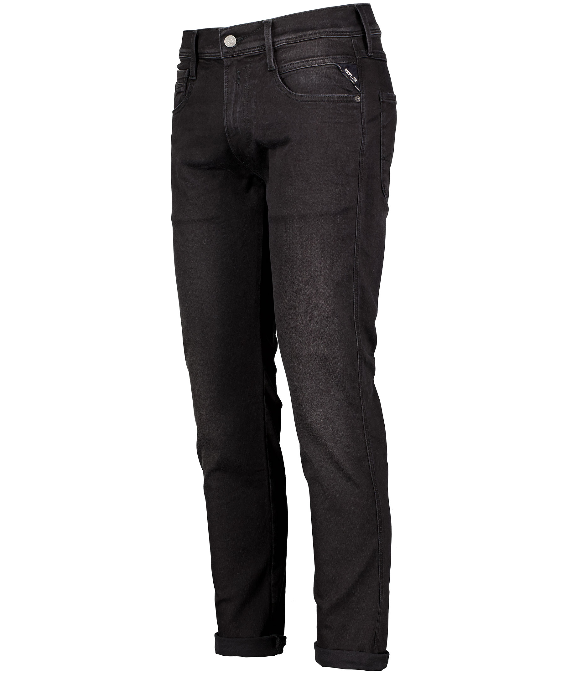 Svarta slim fit jeans i hyperflex modell från Replay. Jeansen är lite stora i storlek, vi rekommenderar att gå ner en storlek för bäst passform. Power stretch denim med fyrvägsstretch i bomullsblandning med en mörk tvätt. Vanlig midja och något avsmalnande ben, fem fickor, triangelformad REPLAY-etikett på vänster ficka, myntficka och bakfickor med ikoniska replay-sömmar. R-formad metallbricka på höger bakficka, dragkedja och knappgylf samt hällor för bälte i midjan.