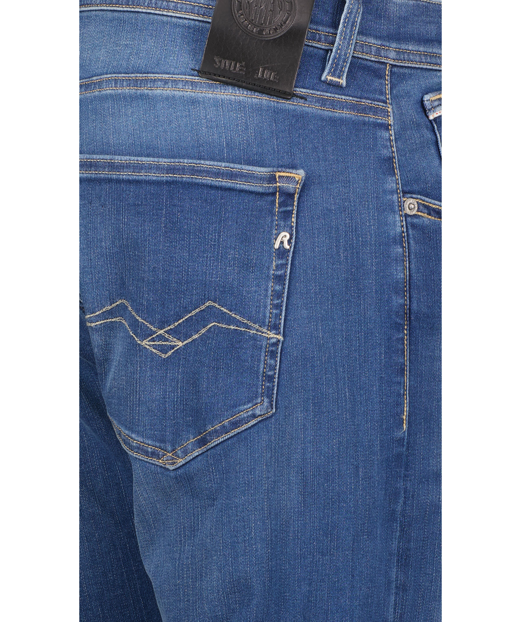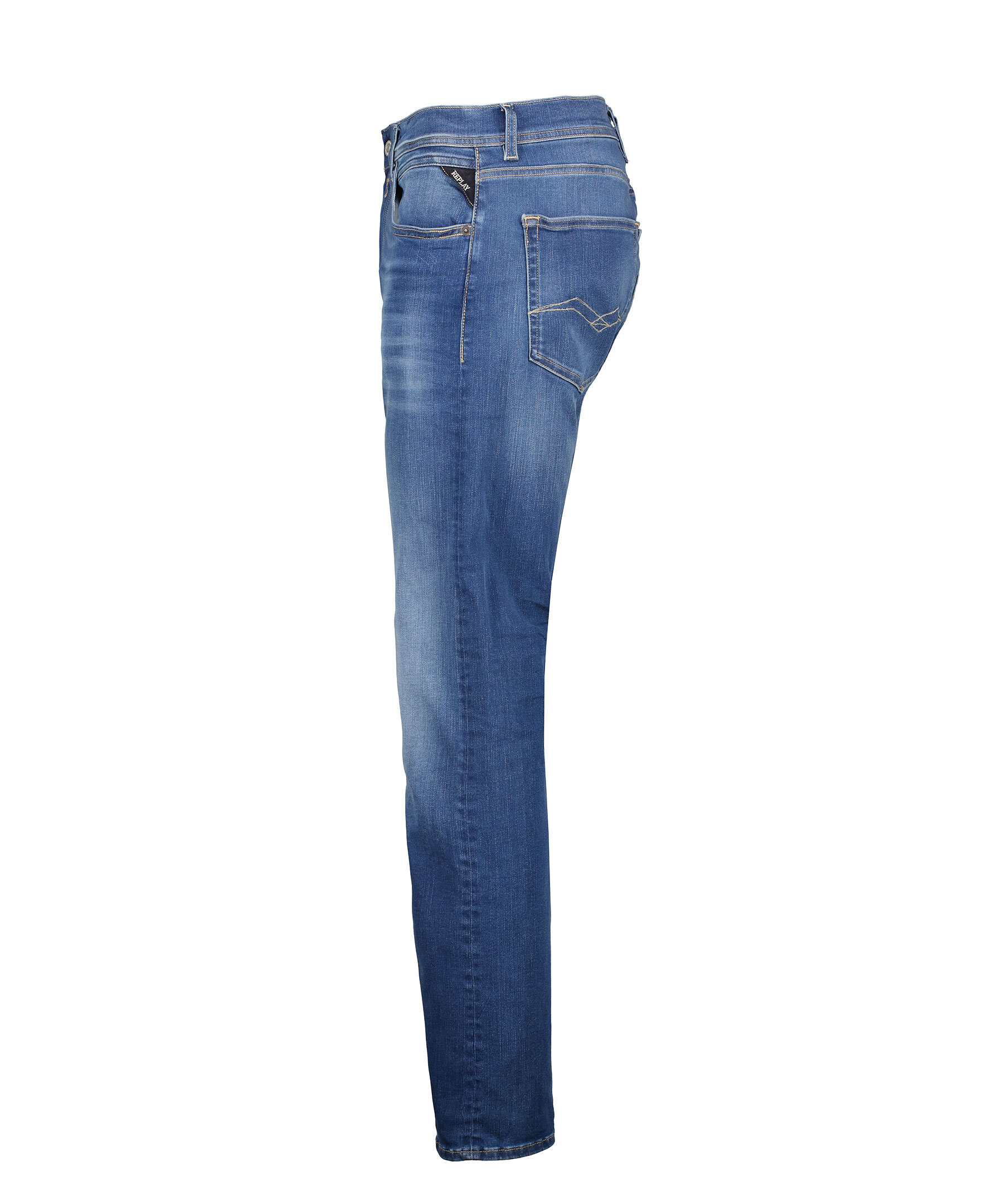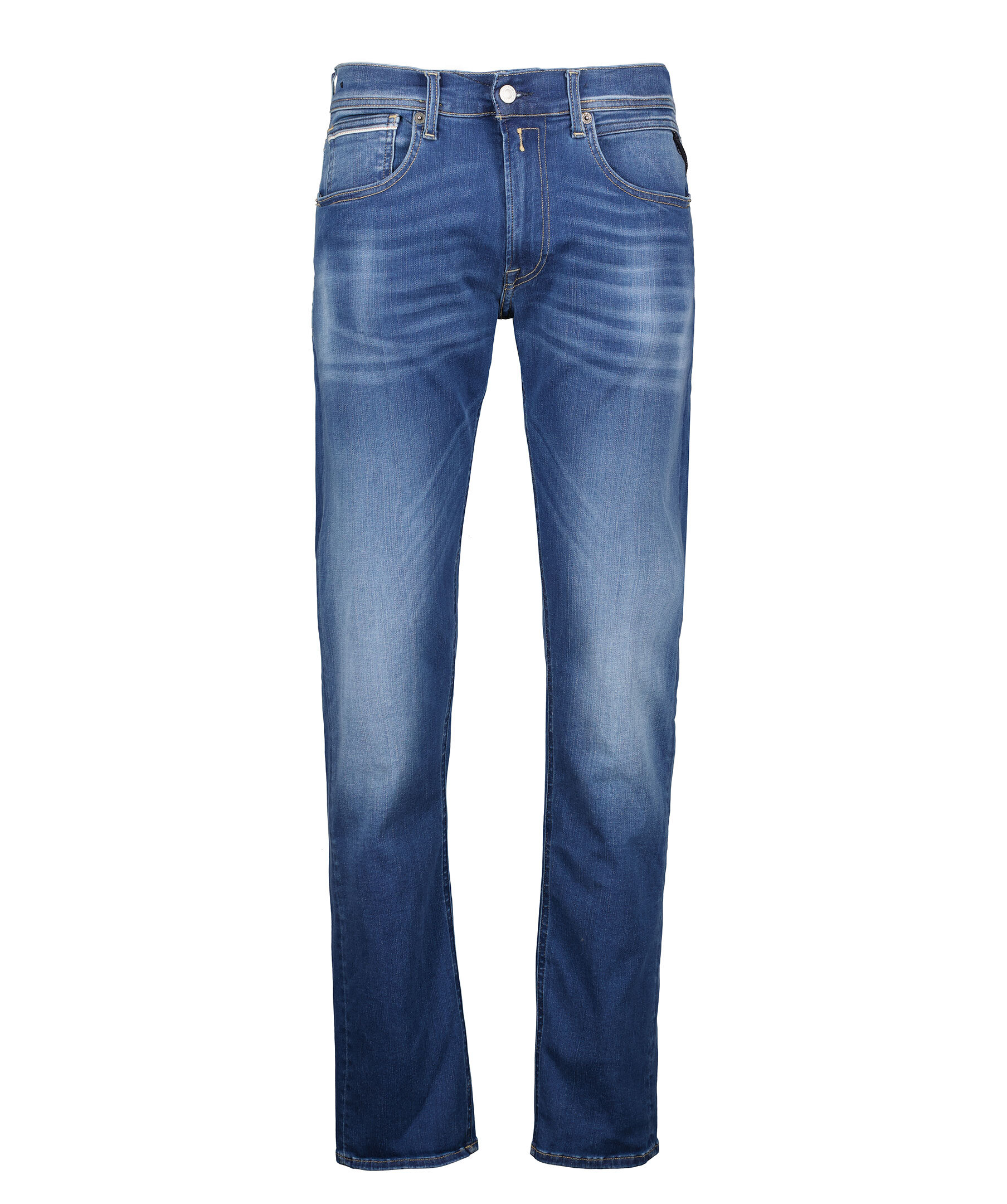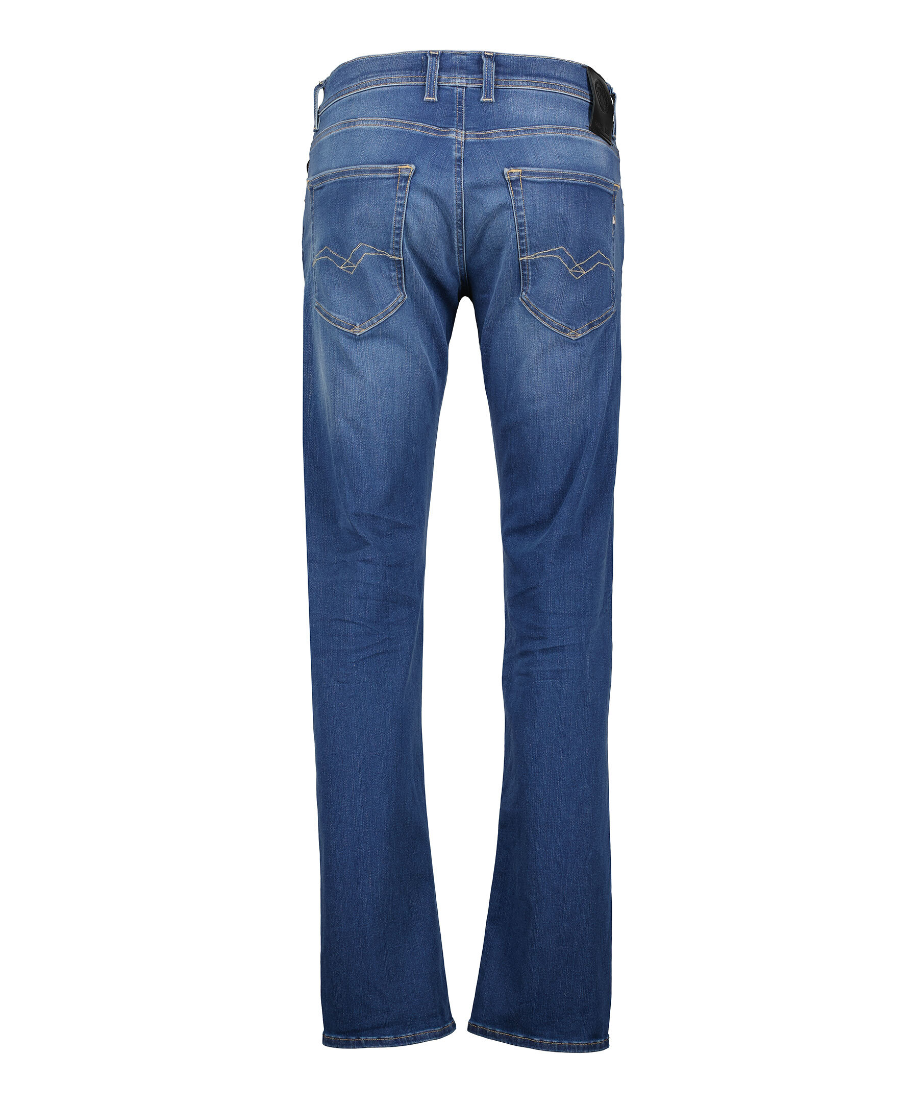 Blåa straight fit jeans från Replay. Tillverkade i stretch-denim, normalhög midja och raka ben. Fem fickor, myntficka med söm och bakfickor med ikoniska Replay-sömmar och R-format broderi, kontrastfärgad etikett i linningen, dold gylf med knapp-knäppning. Hällor för bälte i midjan. Innerbenslängden är 79cm i storlek 32'32.