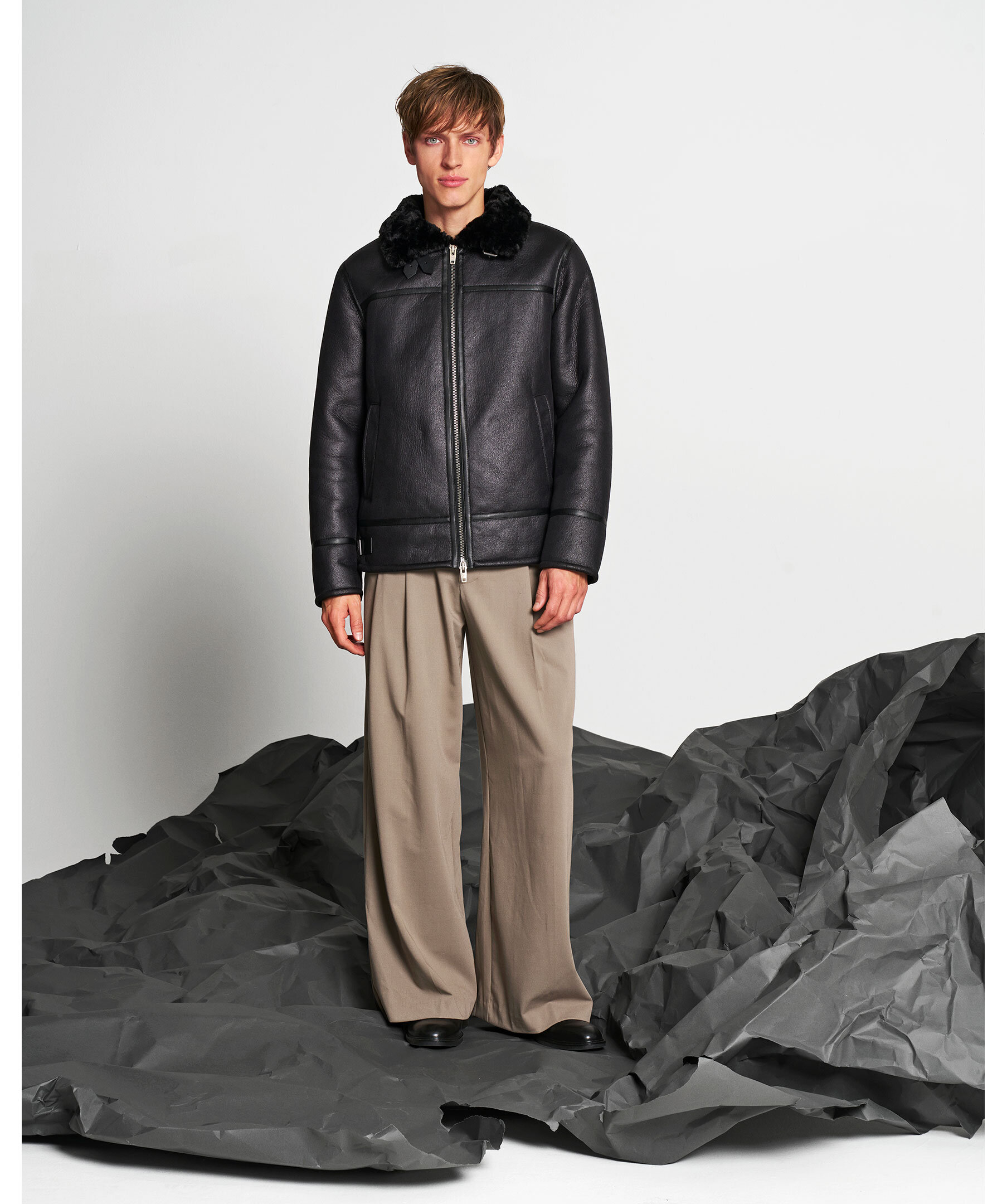 Svart pilotjacka från Rockandblue i PU-läder med fuskpäls på insidan och på kragen. Jackan har två öppna sidfickor, dubbla flikar på kragen med metallspännen och sidoflikar för justering av passformen. Ton-i-ton-läderband framtill och nedtill på jackan lyfter denna klassiska stil. Tillverkad i polyester.