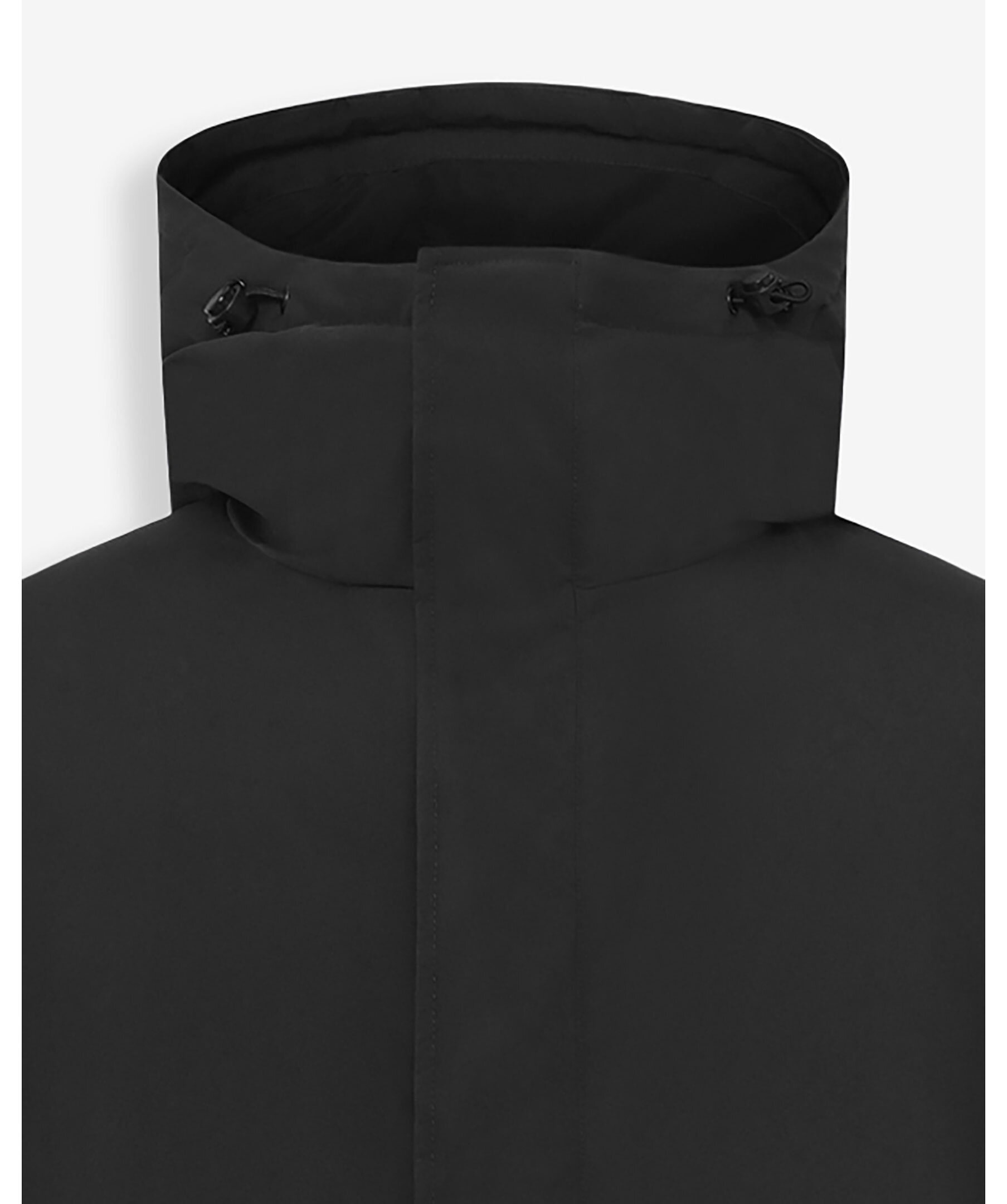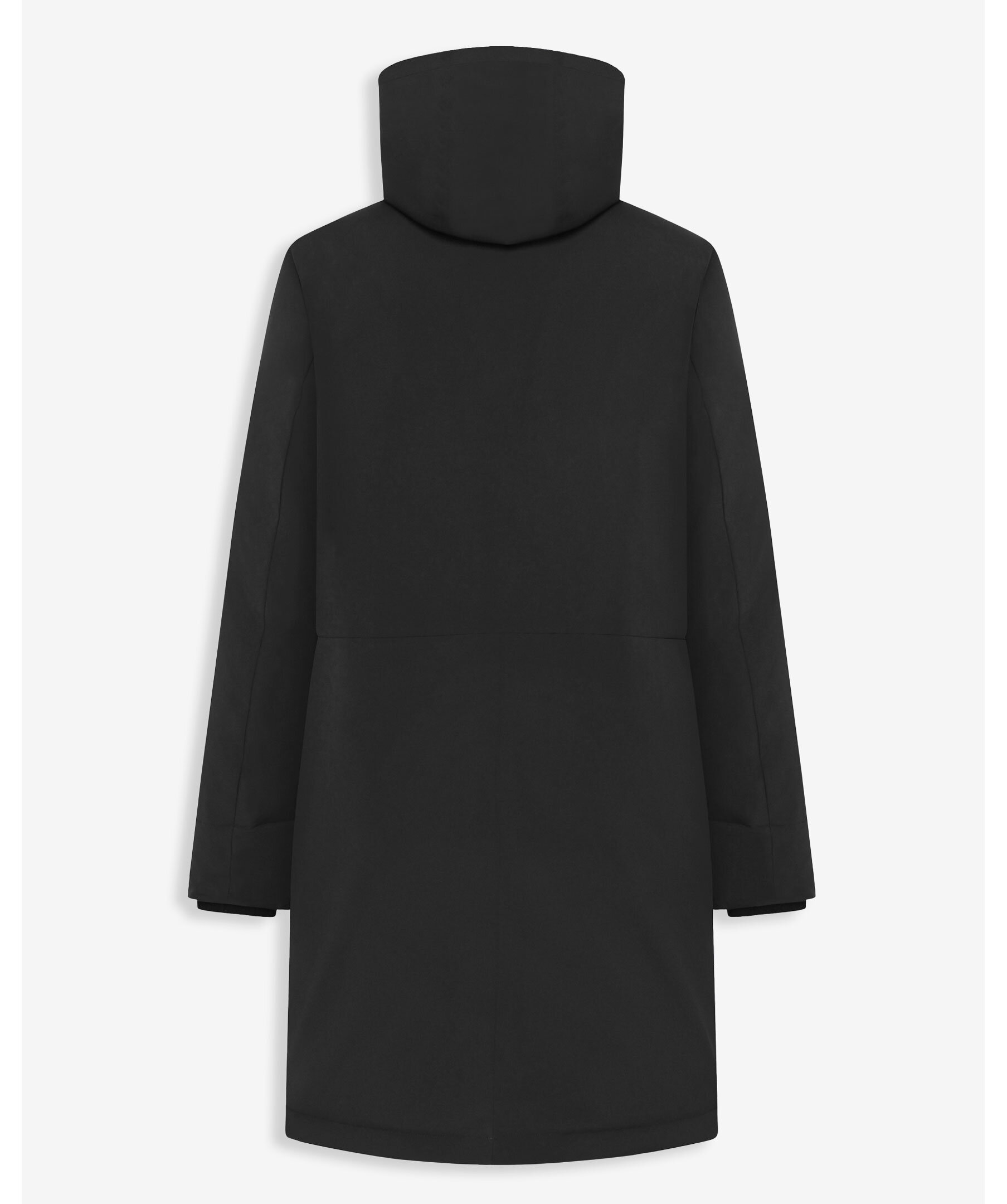 Svart parka med huva från Rockandblue. Jackan är behandlad med BIONIC-FINISH® ECO för en vattenavvisande finish och fylld med dun för lätt isolering. Stängs med dold tvåvägsdragkedja och tryckknappar och har två innerfickor och midjefickor med dragkedja för säker förvaring. Tillverkad i polyester med dunfyllning.
