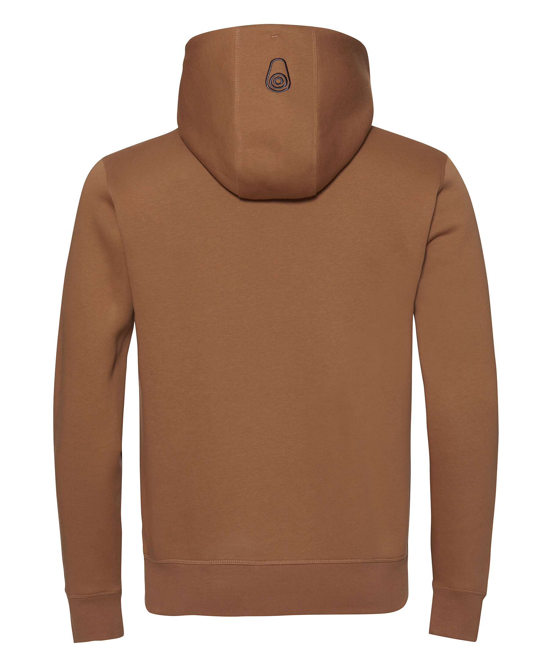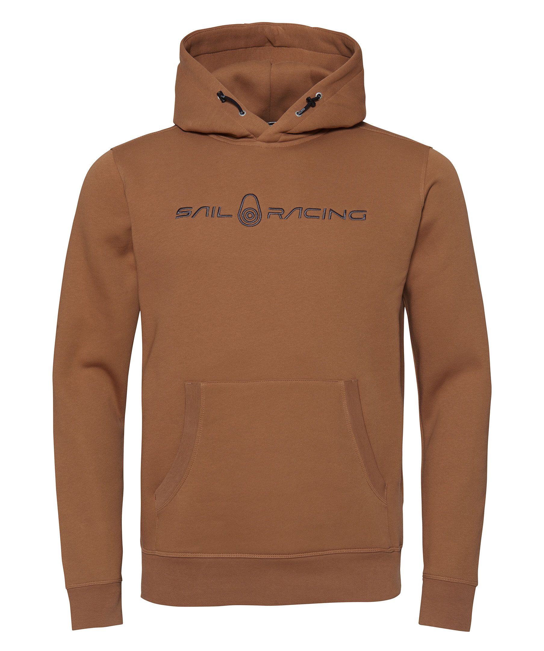 Kamelfärgad hoodie från Sail Racing. Stor logotyp på bröstet samt ficka på magen. Dragsko i luva och muddar i ärmslut och plaggslut.