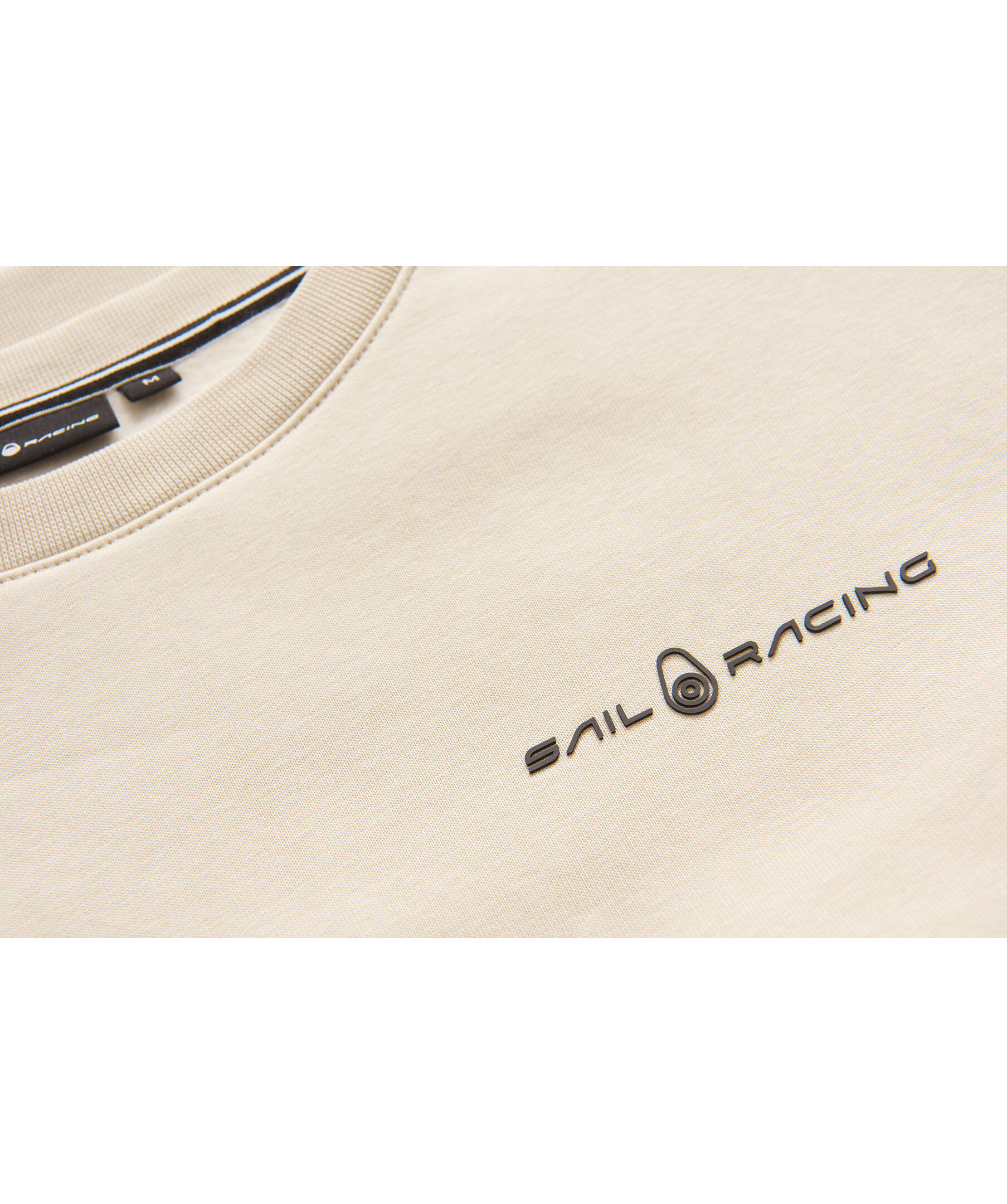 Beige sweatshirt från Sail Racing. Gummerad logotyp på vänster bröst. Ribbstickad krage, muddar vid ärm och plaggslut. Tillverkad i bomullsblandning.