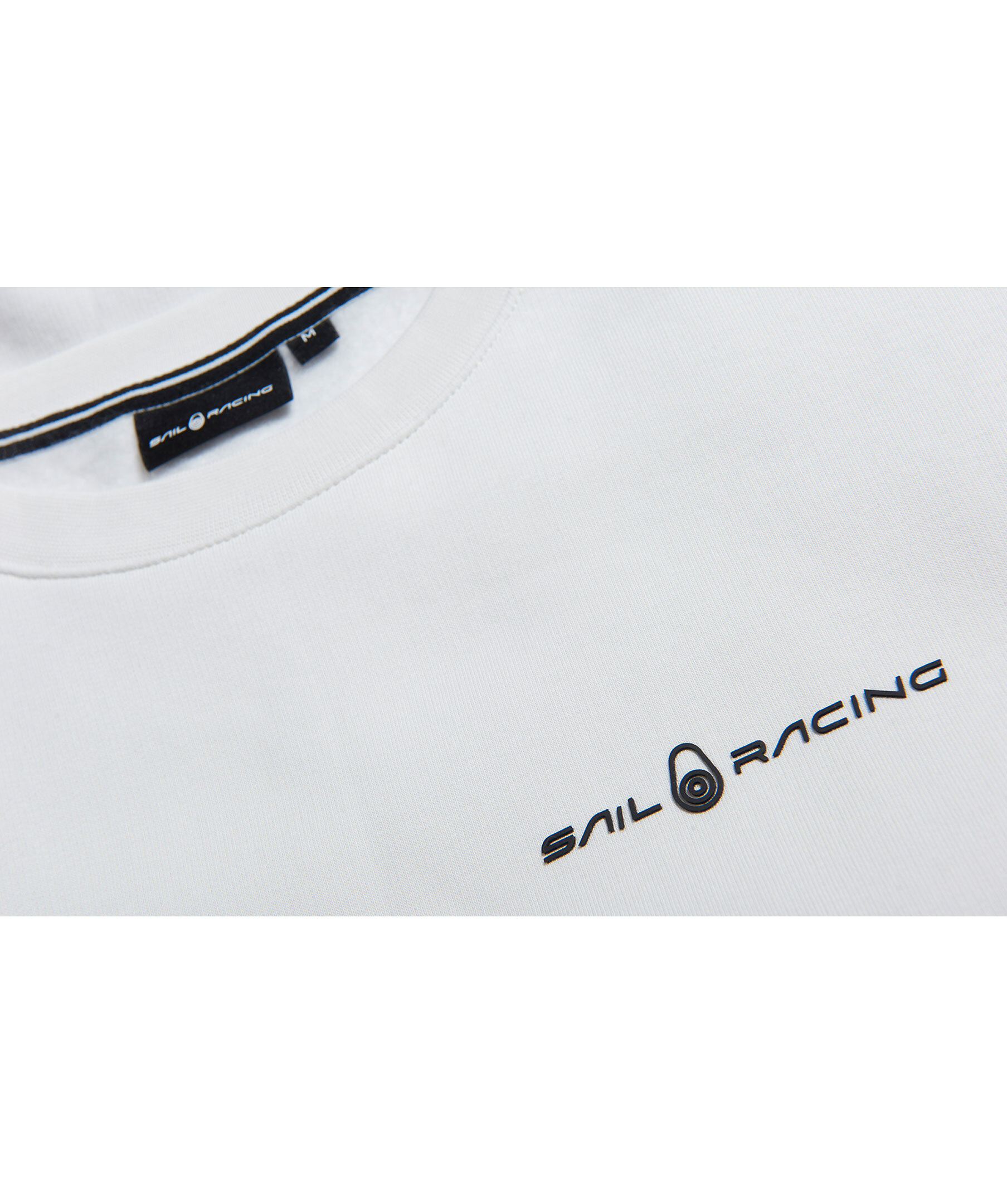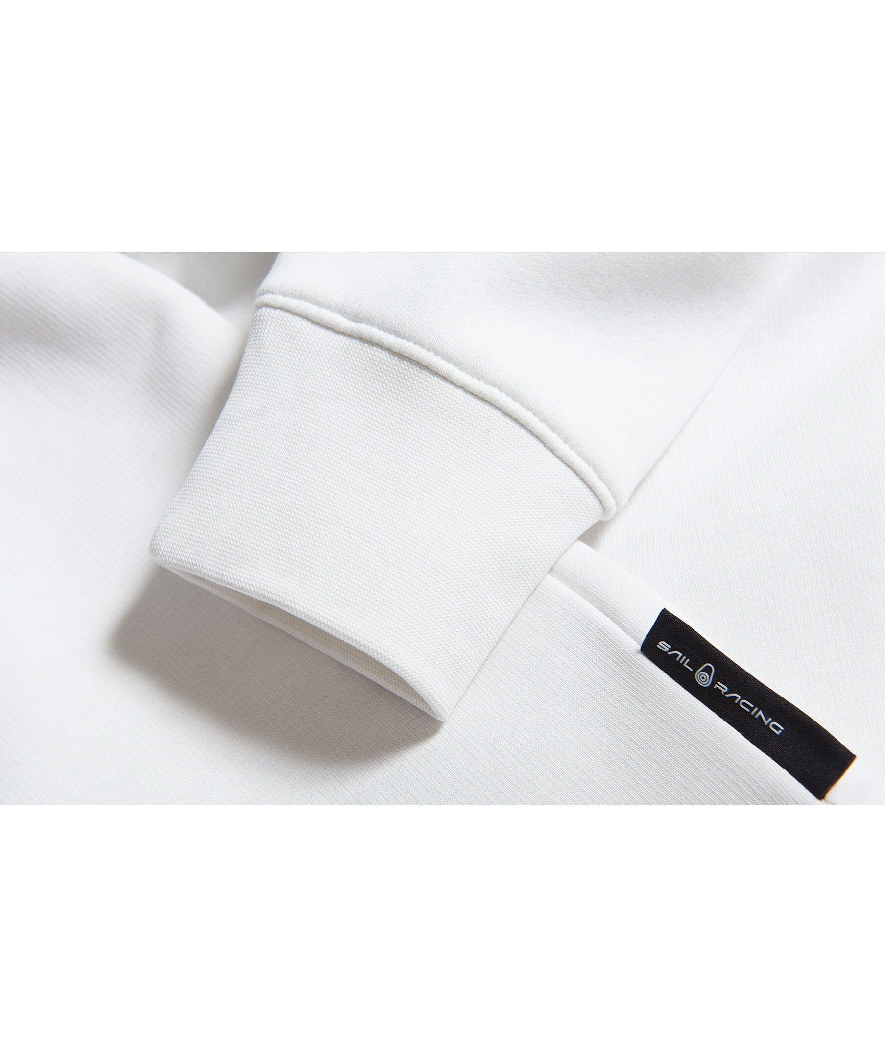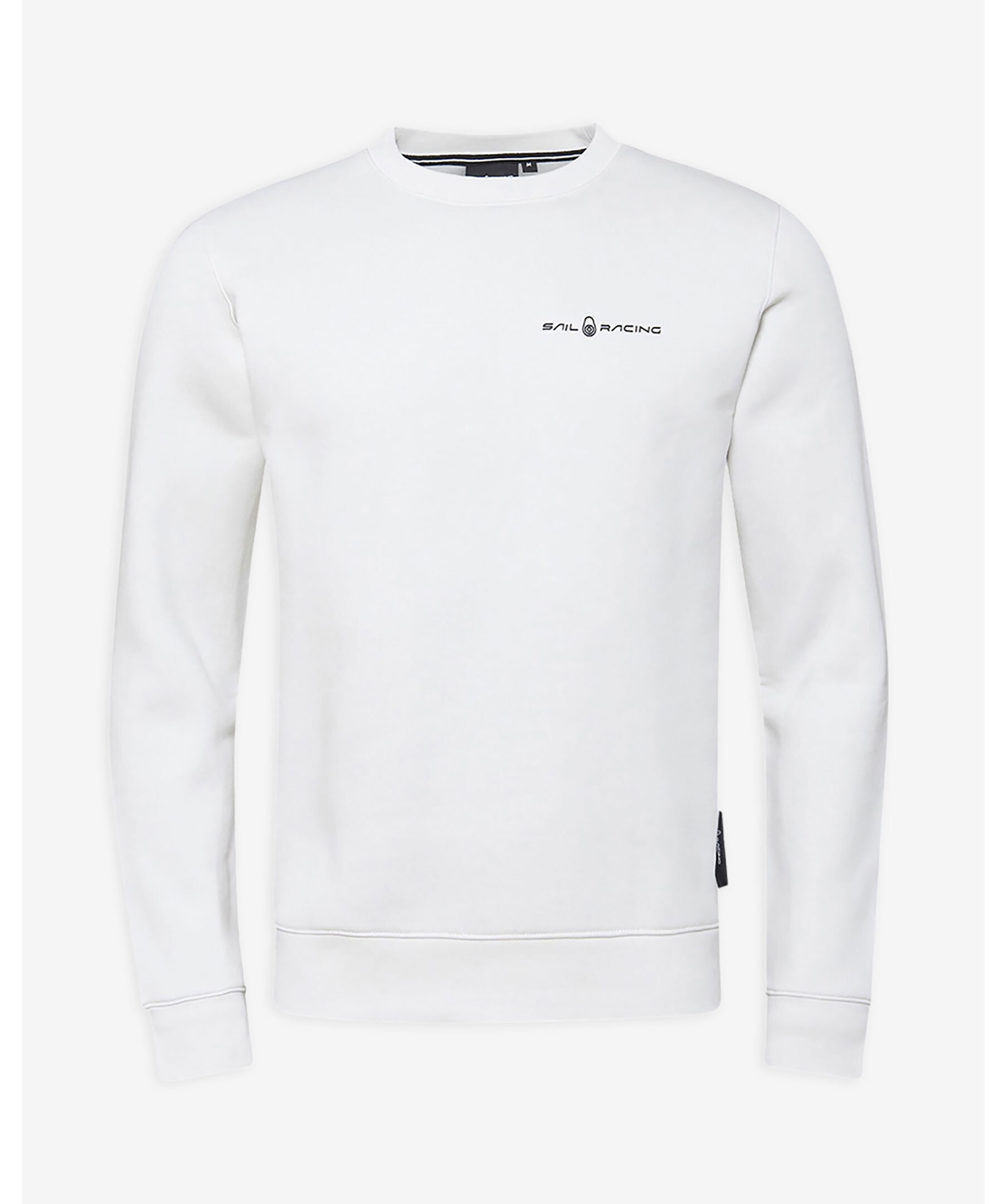 Vit sweatshirt från Sail Racing. Gummerad logotyp på vänster bröst. Ribbstickad krage, muddar vid ärm och plaggslut. Tillverkad i bomullsblandning.