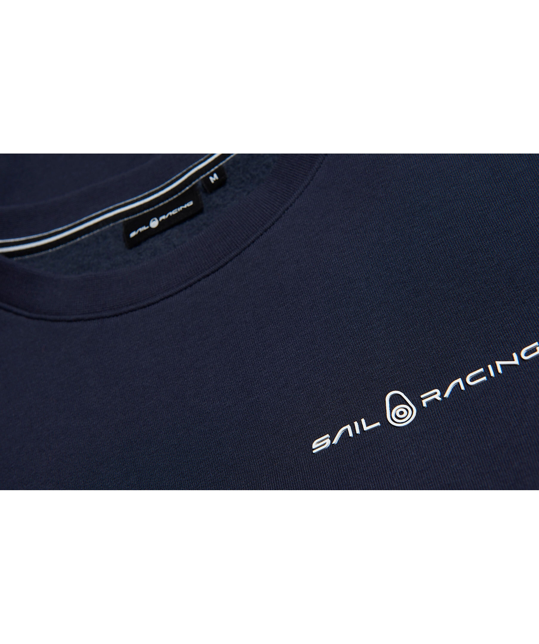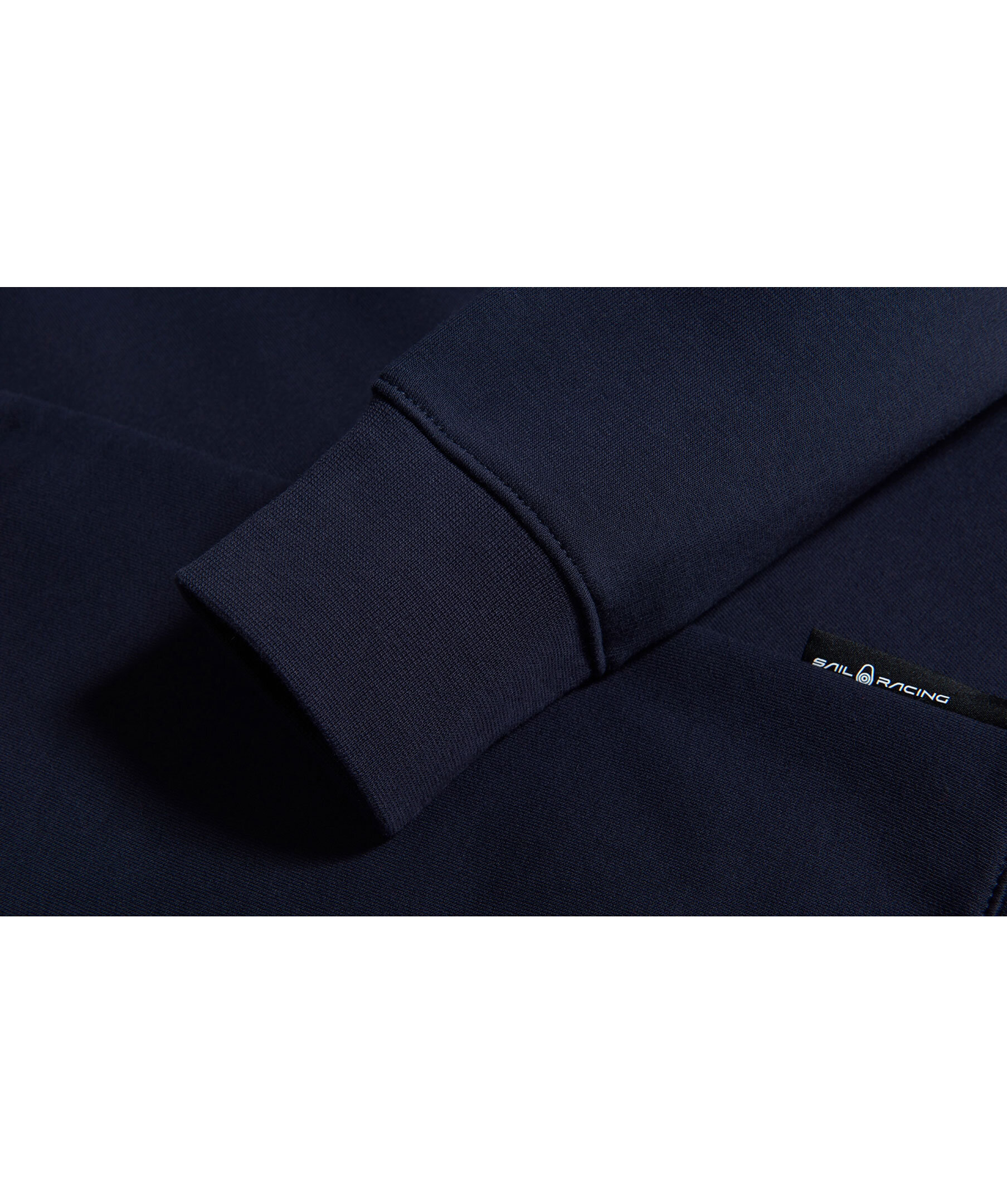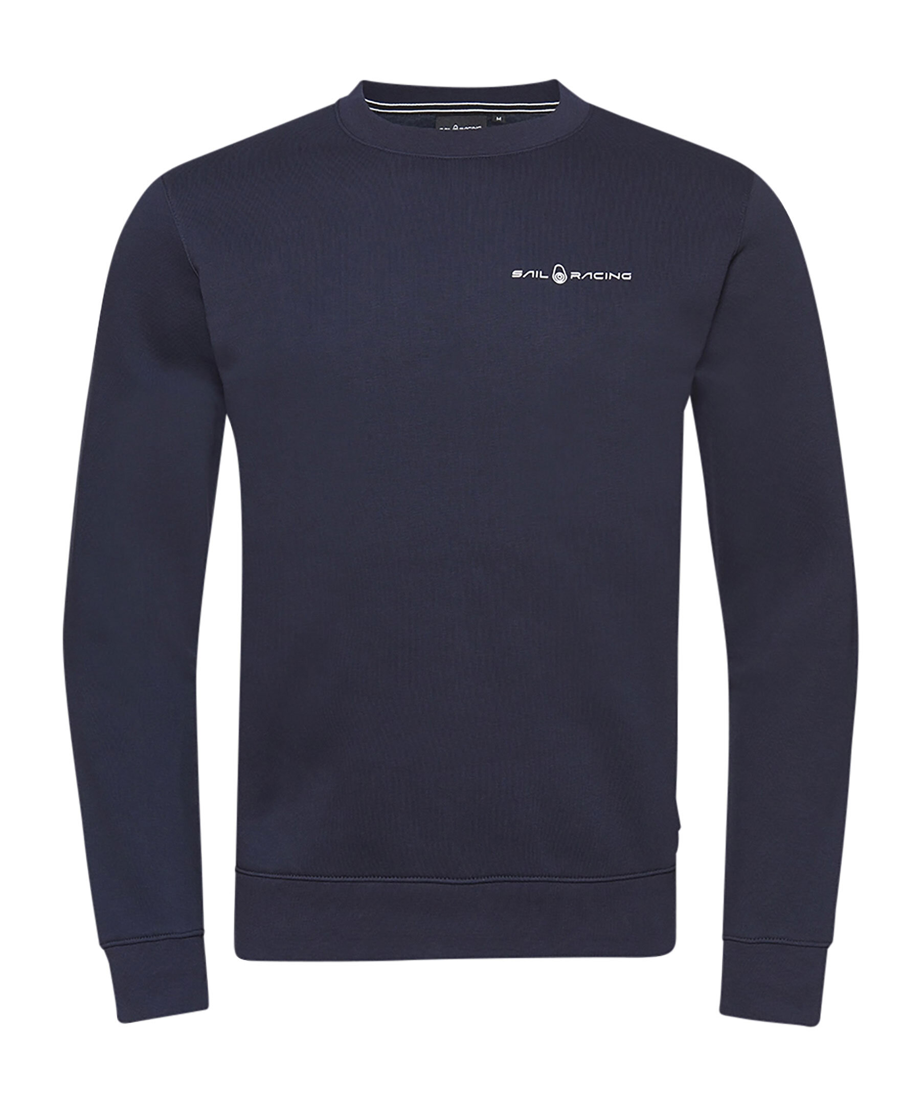 Mörkblå sweatshirt från Sail Racing. Gummerad logotyp på vänster bröst. Ribbstickad krage, muddar vid ärm och plaggslut. Tillverkad i bomullsblandning.