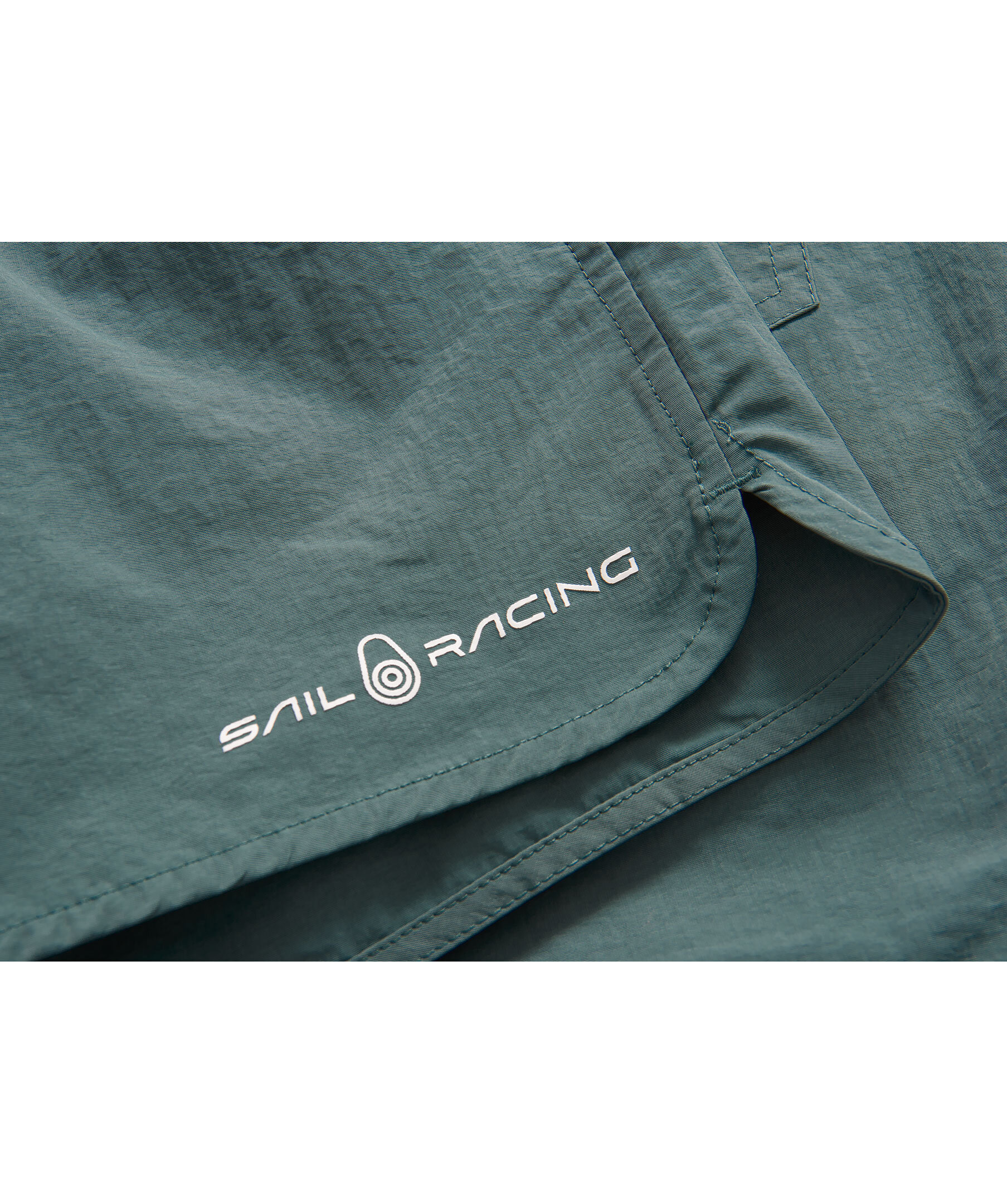 Blågröna badshorts från Sail Racing. Tillverkade i återvunnen nylon. Liten, präglad gummilogotyp i vitt på byxans nederkant. Justerbar midja. Öppna fickor fram och en bak. Innerbyxa i meshtyg.