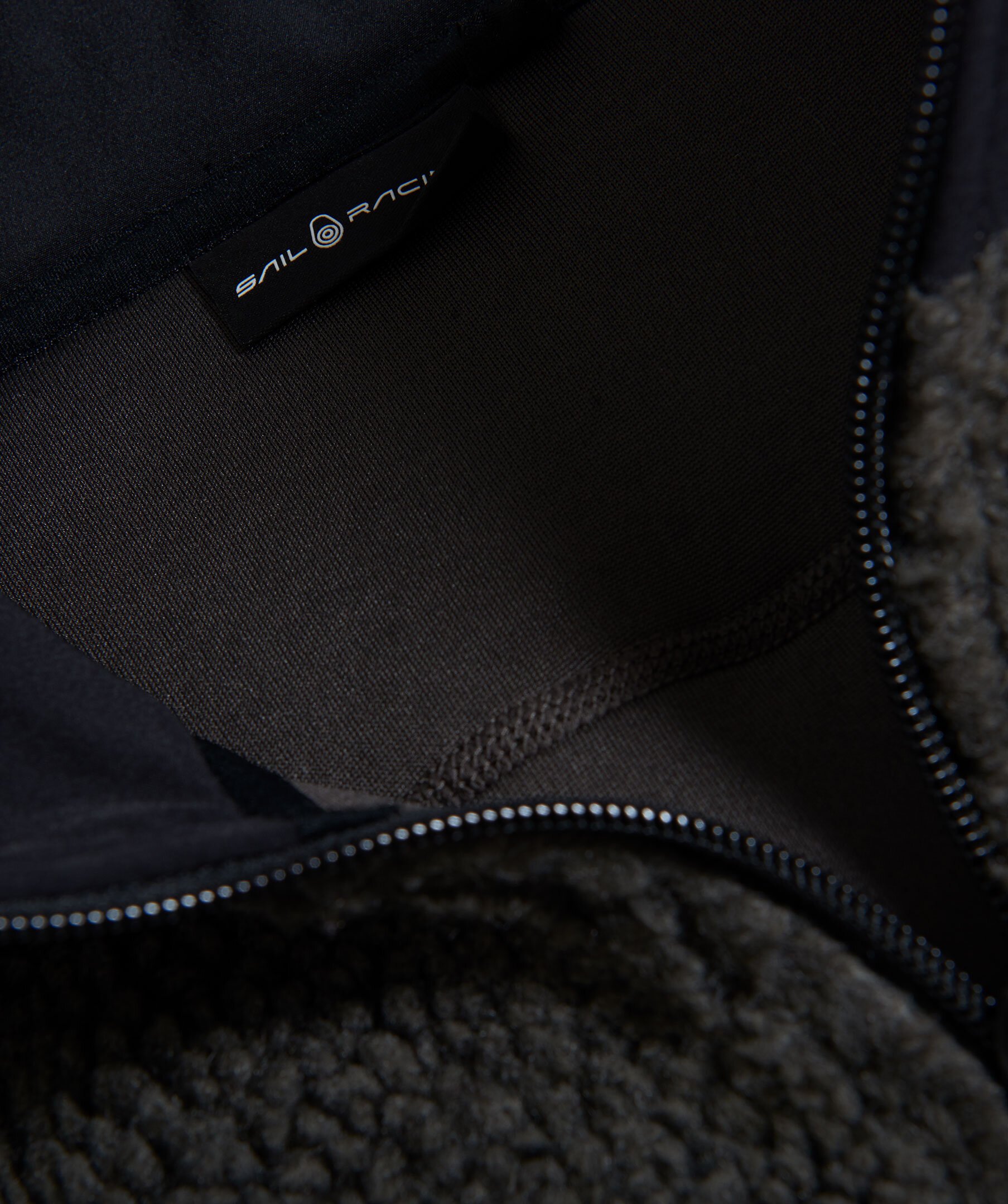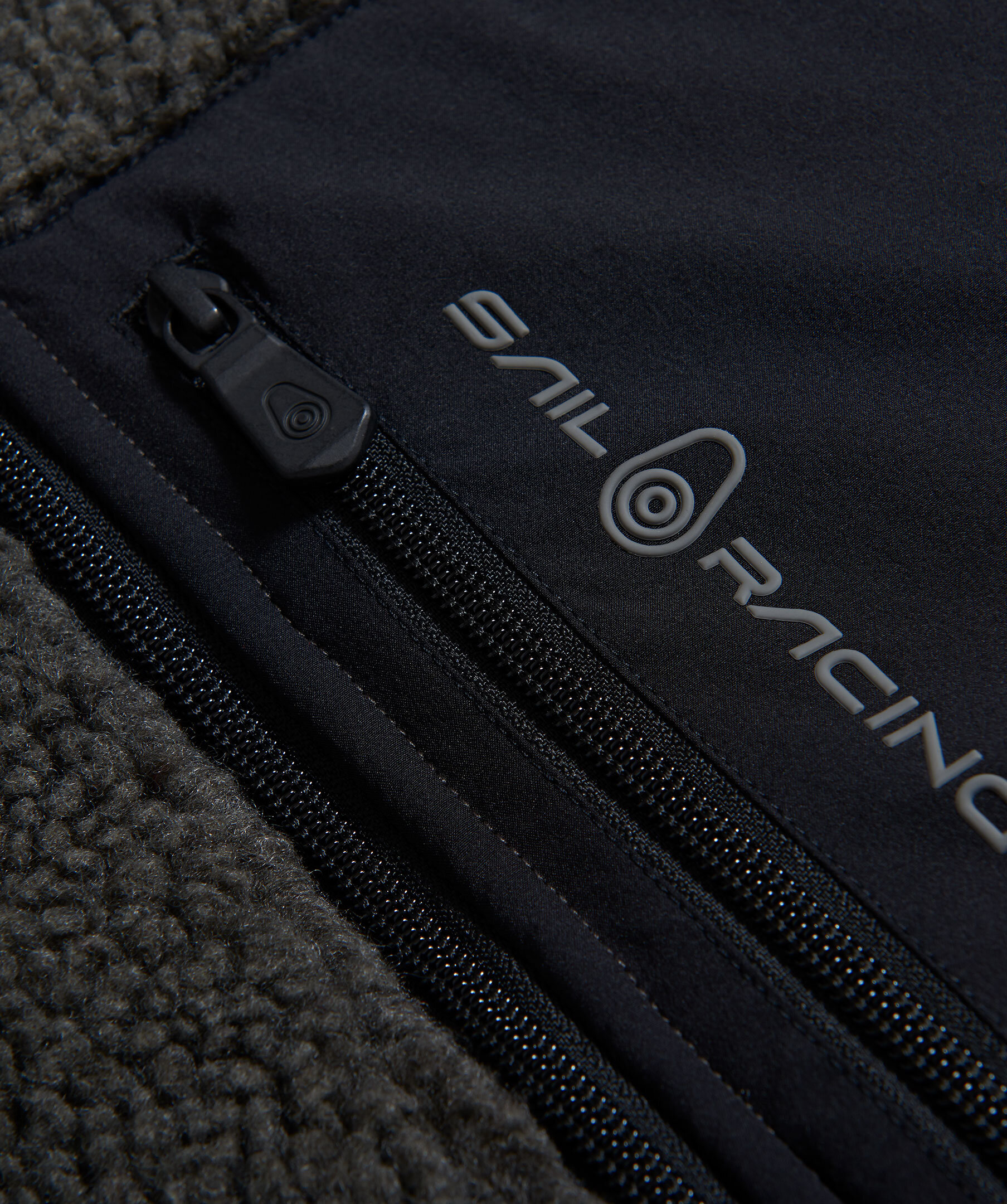 Mörkgrå, pile jacka med dragkedja tillverkad i återvunnen polyester från Sail Racing. Jackan stängs med dragkedja och har en vävd, svart krage och svart bröstficka med dragkedja och tryckt logotyp. Midjefickor med dragkedja och svarta, smala elastiska muddar i ärmslut och plaggslut.
