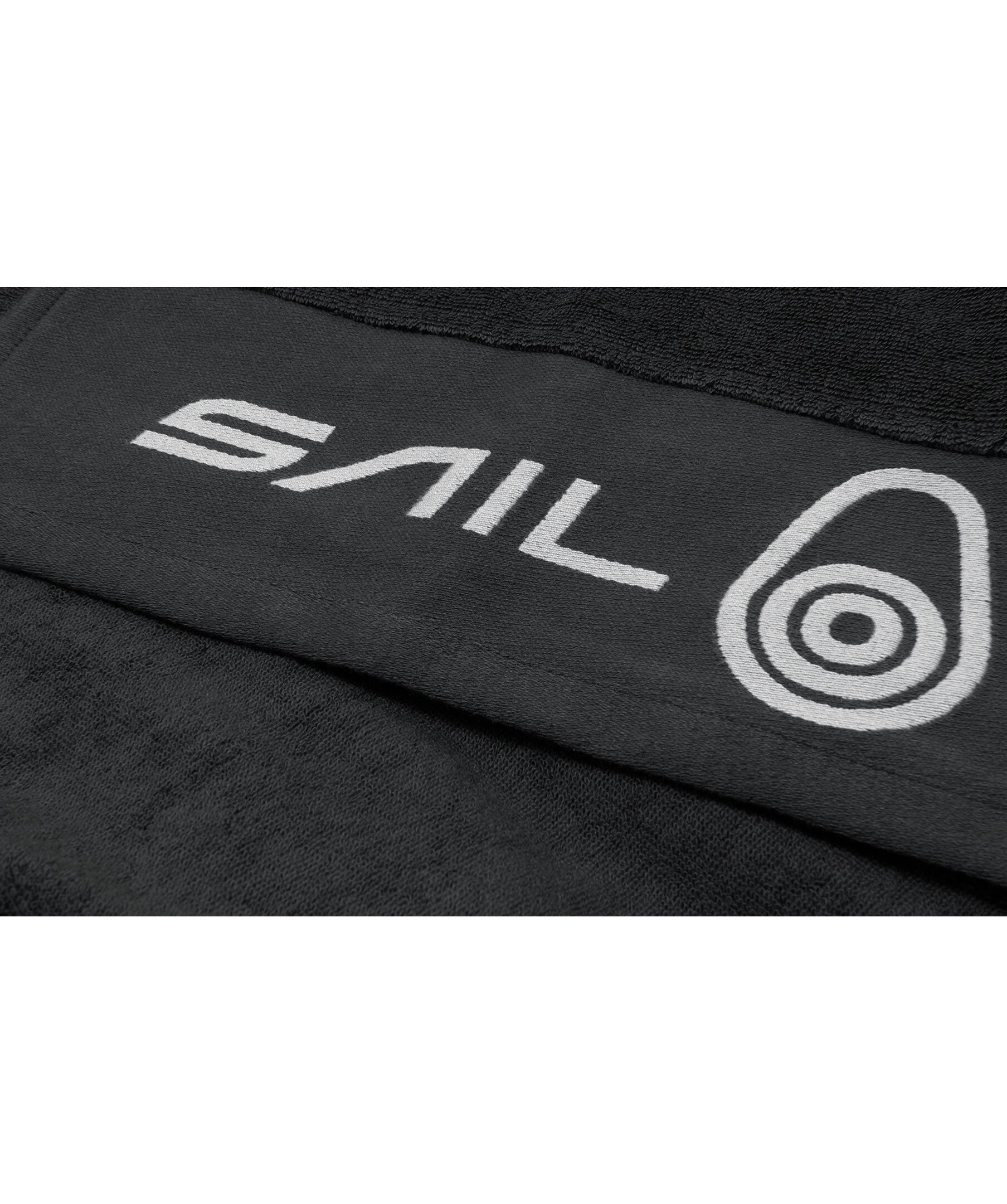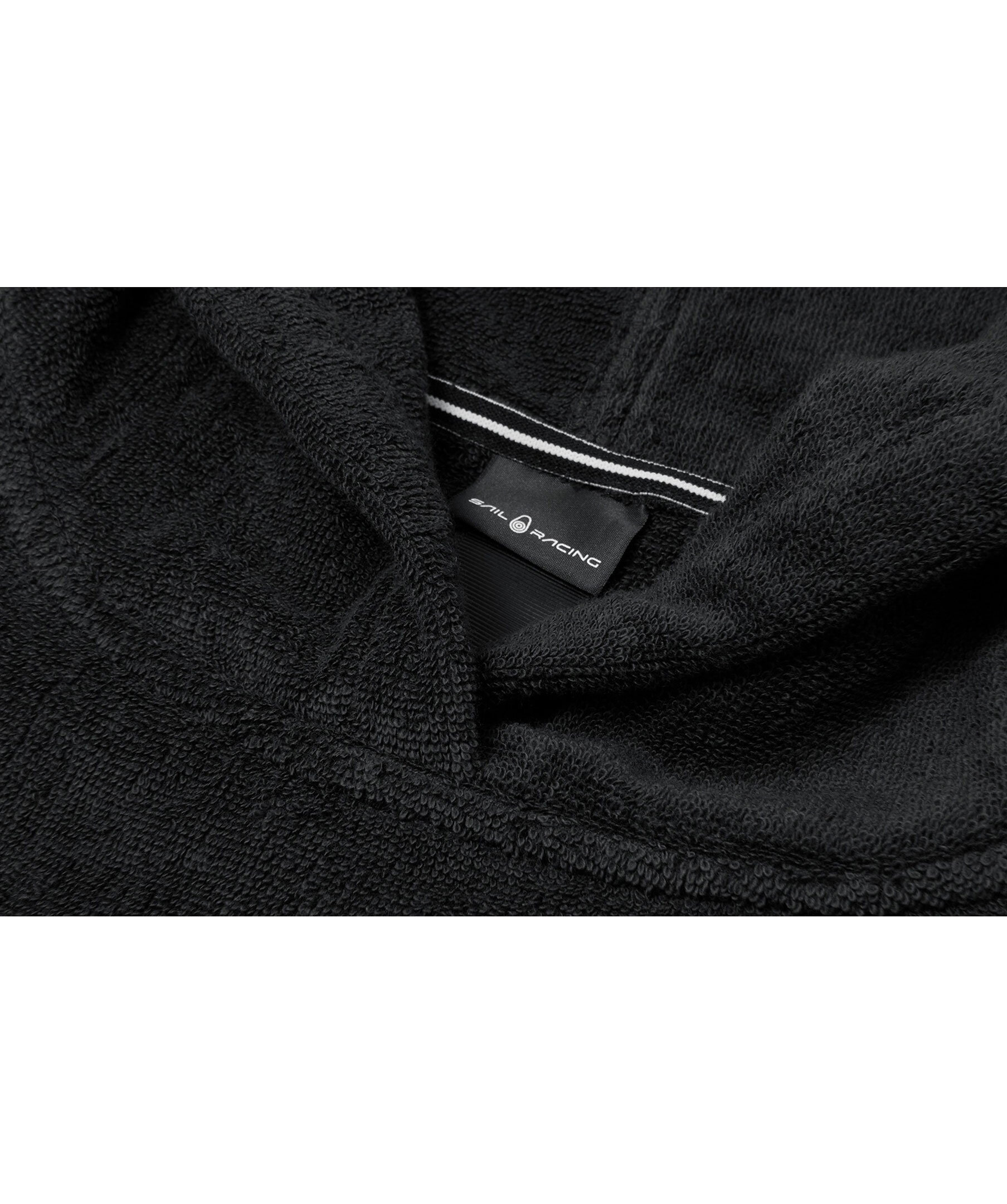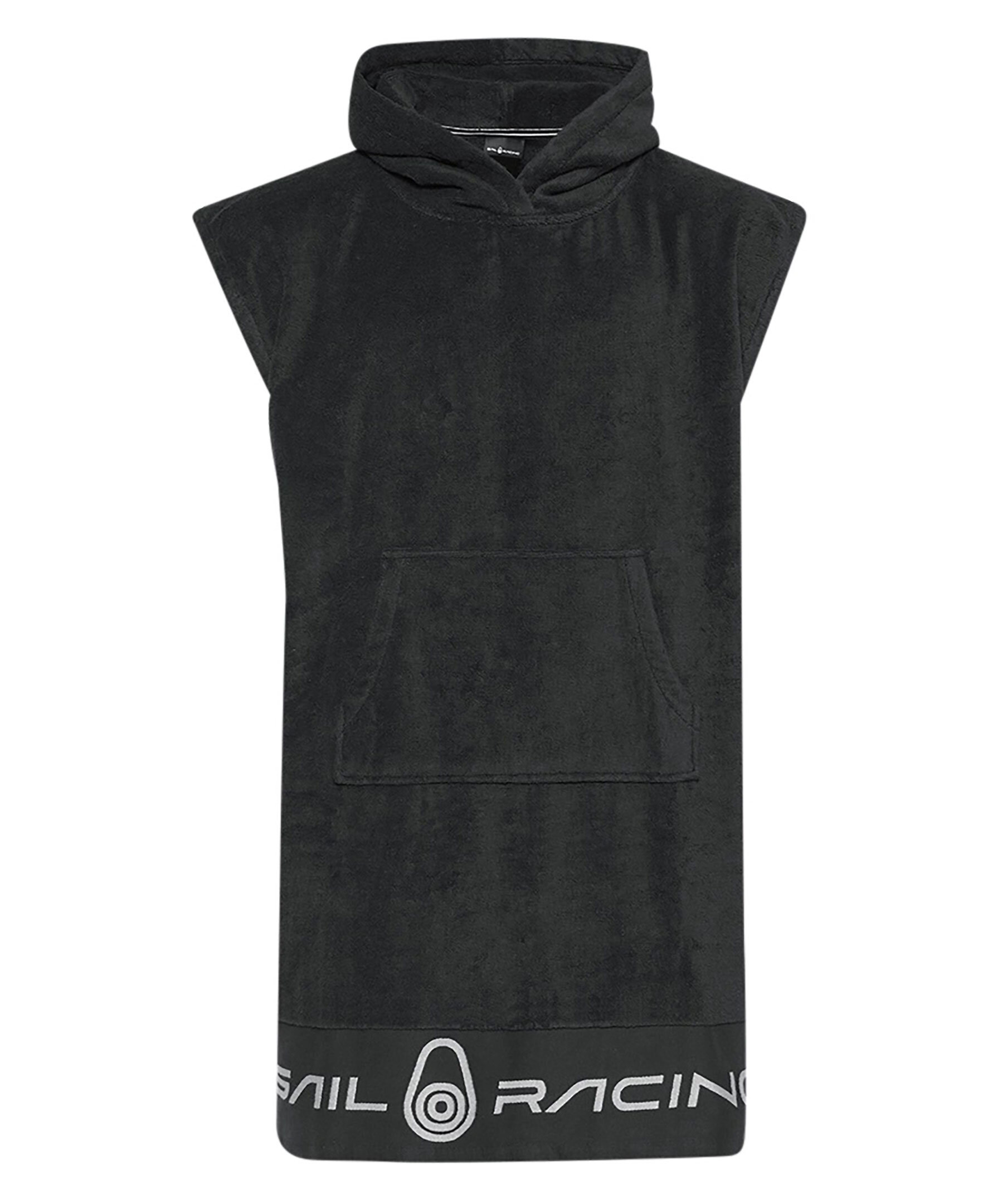 Mörkgrå poncho konstruerad i bomullsfrotté från Sail Racing. Rymlig känguruficka framtill och luva med broderad logotyp samt stor broderad logotyp på den nedre kanten fram. Utan ärmar och slutar mitt på låret samt har slitsar i sidorna.