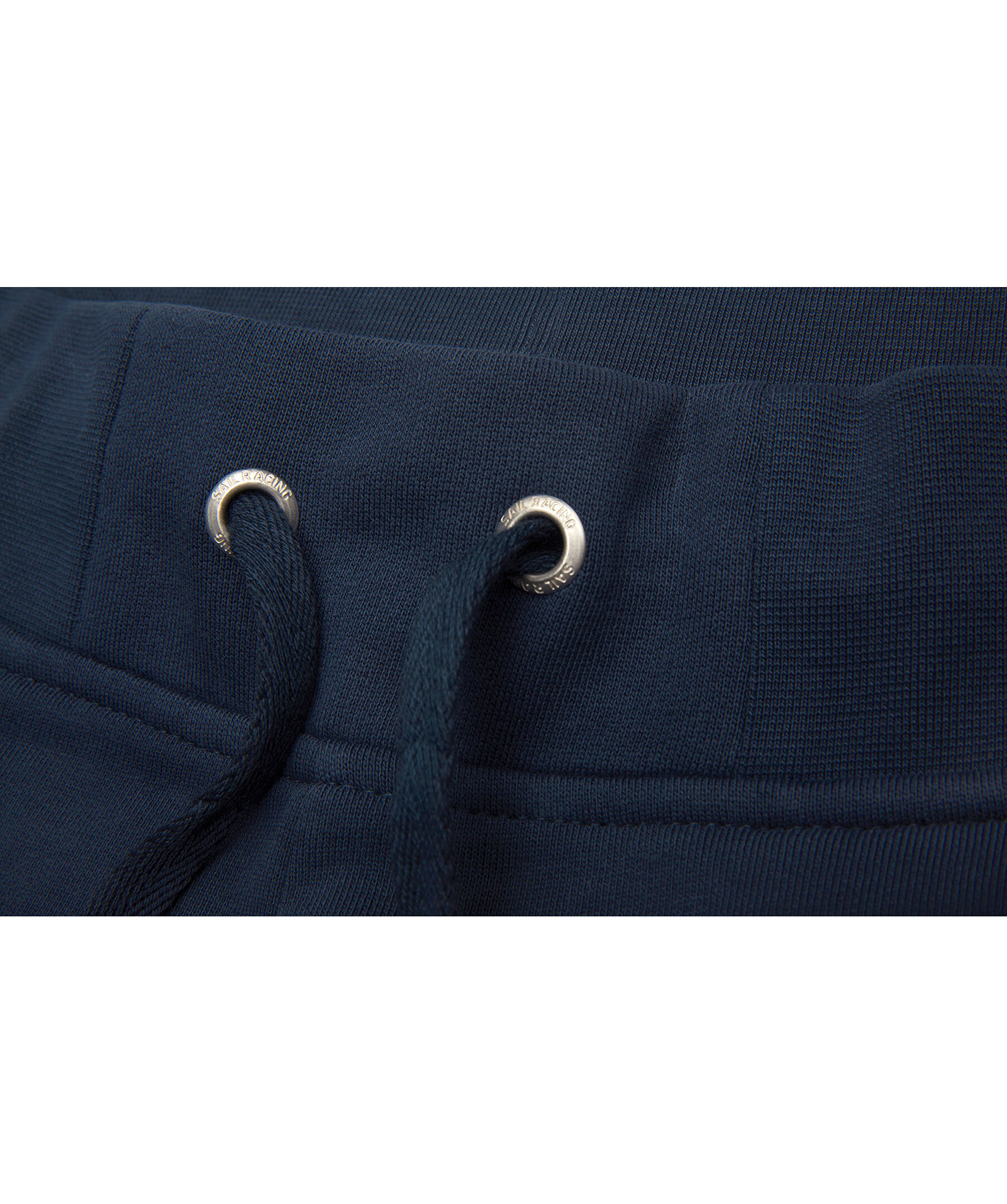 Mörkblåa mjukisbyxor från Sail Racing. Mudd och snörning i midjan samt muddar i benslut. Två framfickor samt en broderad logotyp på vänster byxben. Tillverkade i bomull.