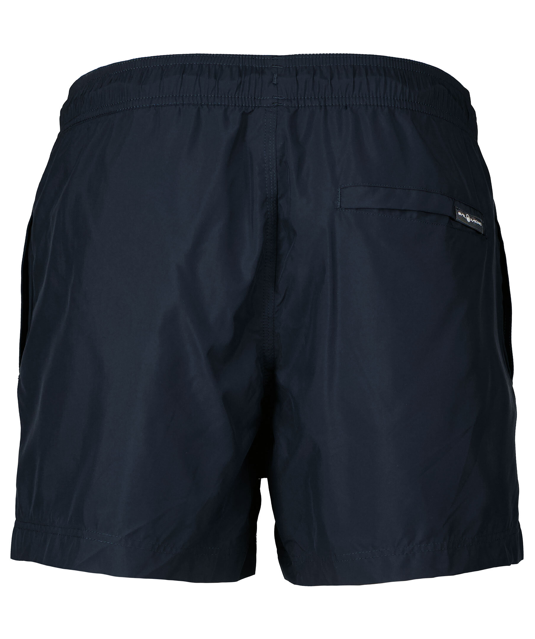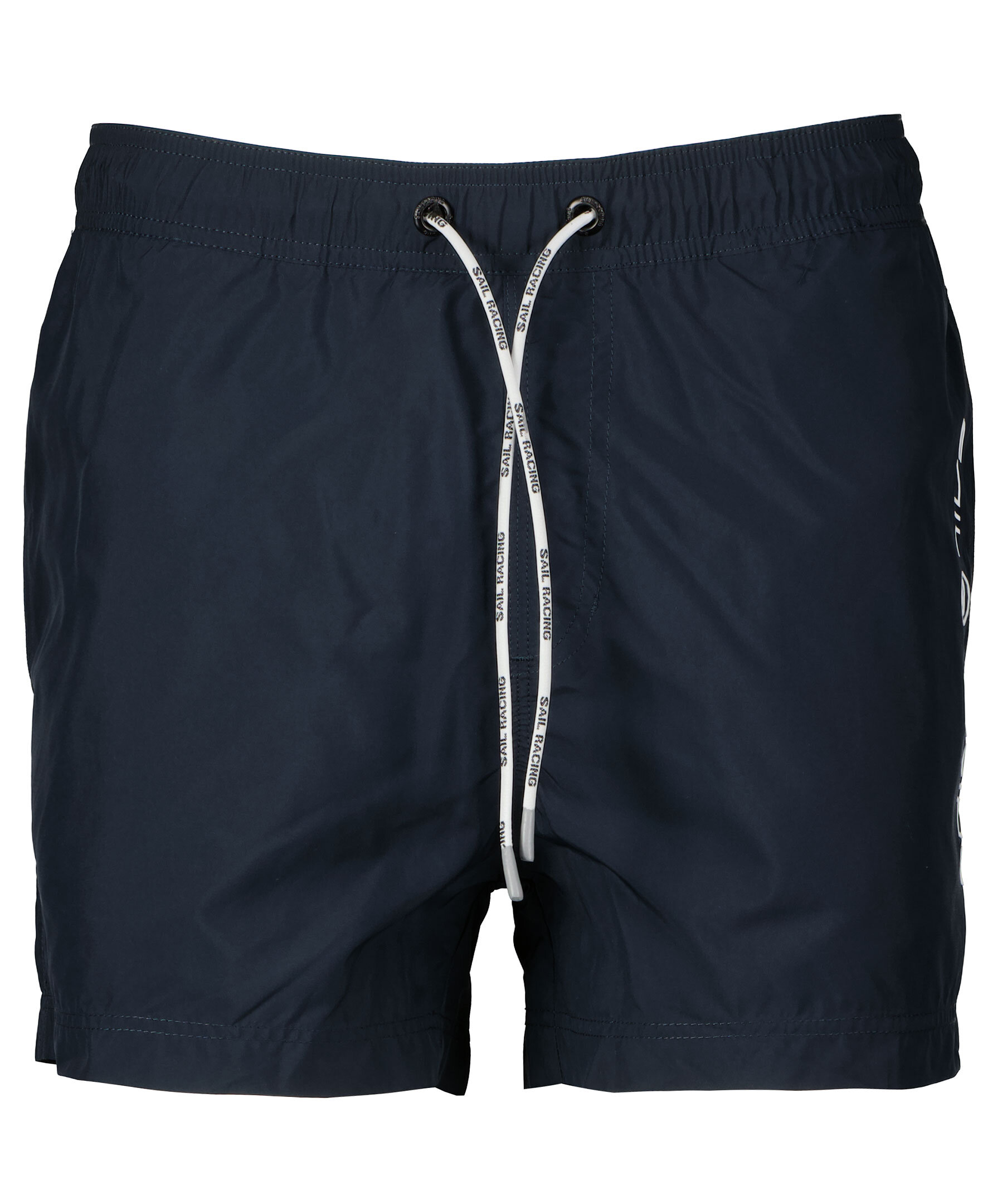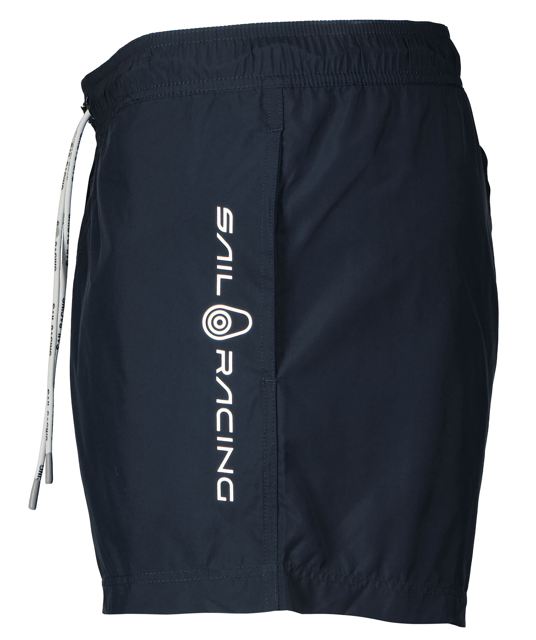 Marinblå badshorts i kort modell från Sail Racing. Shortsen har resår i midjan med snörning som har logotyper. Två snedställda fickor fram och en ficka bak samt tryckt logotyp på vänster ben. Meshtyg på insidan.