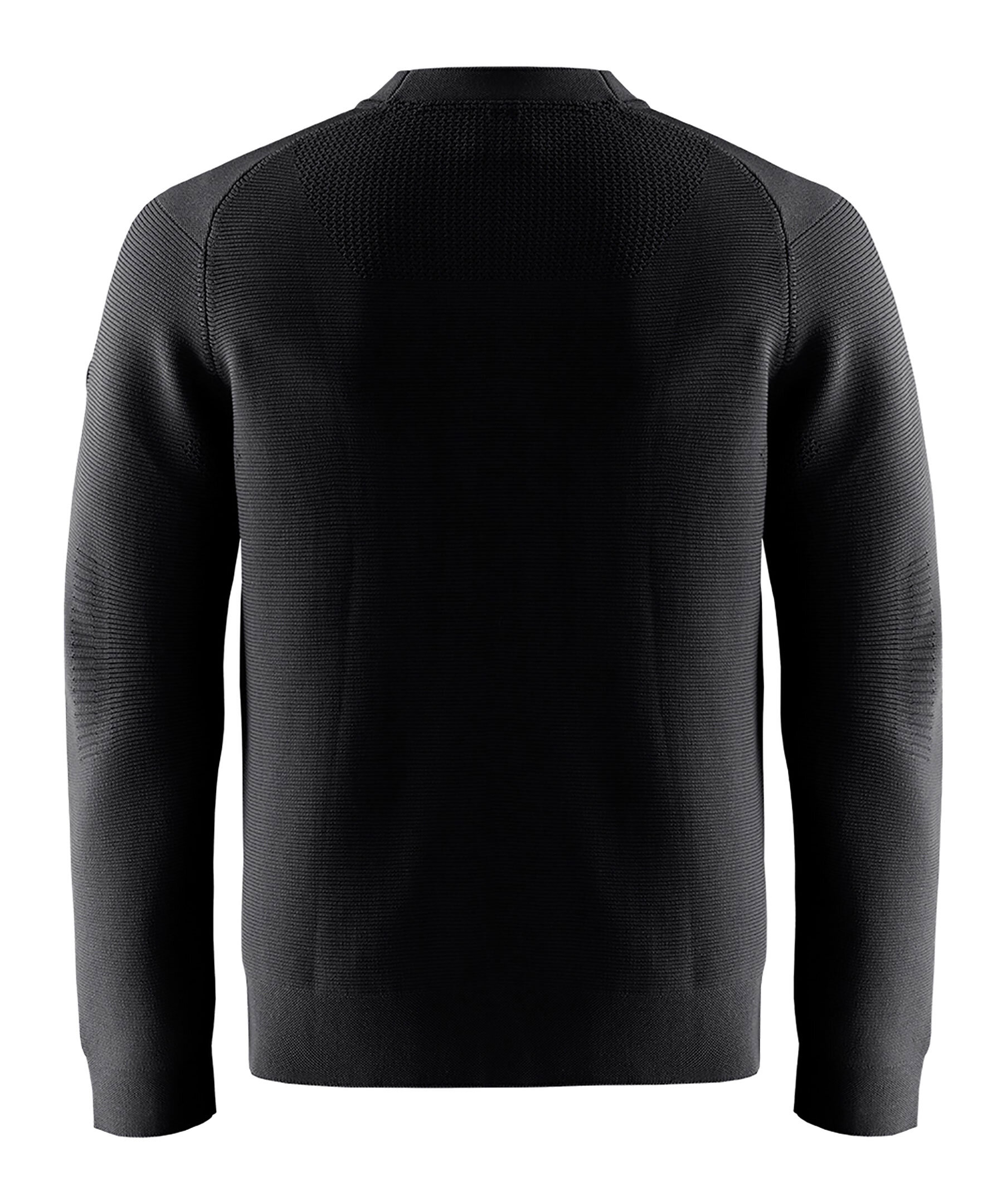 Svart, stickad crewneck från Sail Racing. Tröjan har rund halsringning, Sail Racing block-logotyp på vänster ärm samt är designad med flera olika stickningsstrukturer på ärmar, axlar och rygg. Tillverkad i polyester.