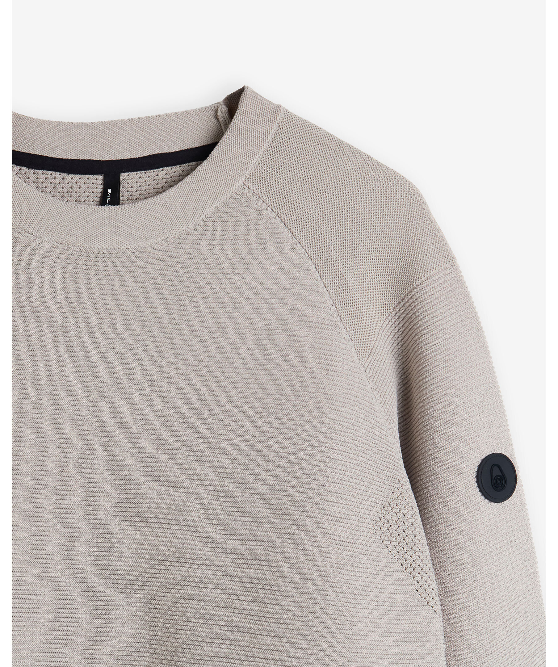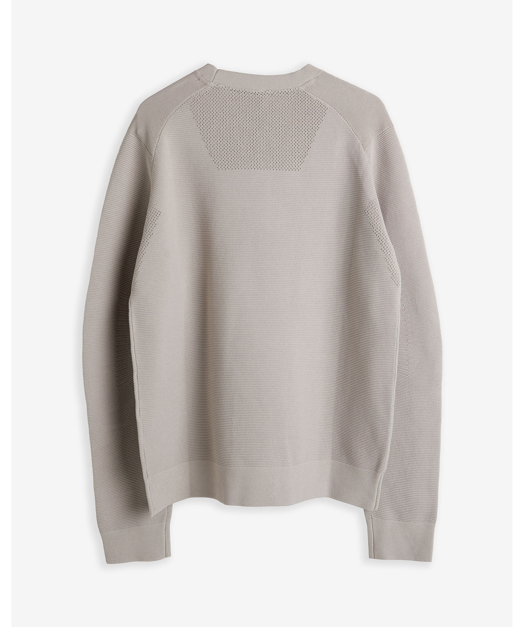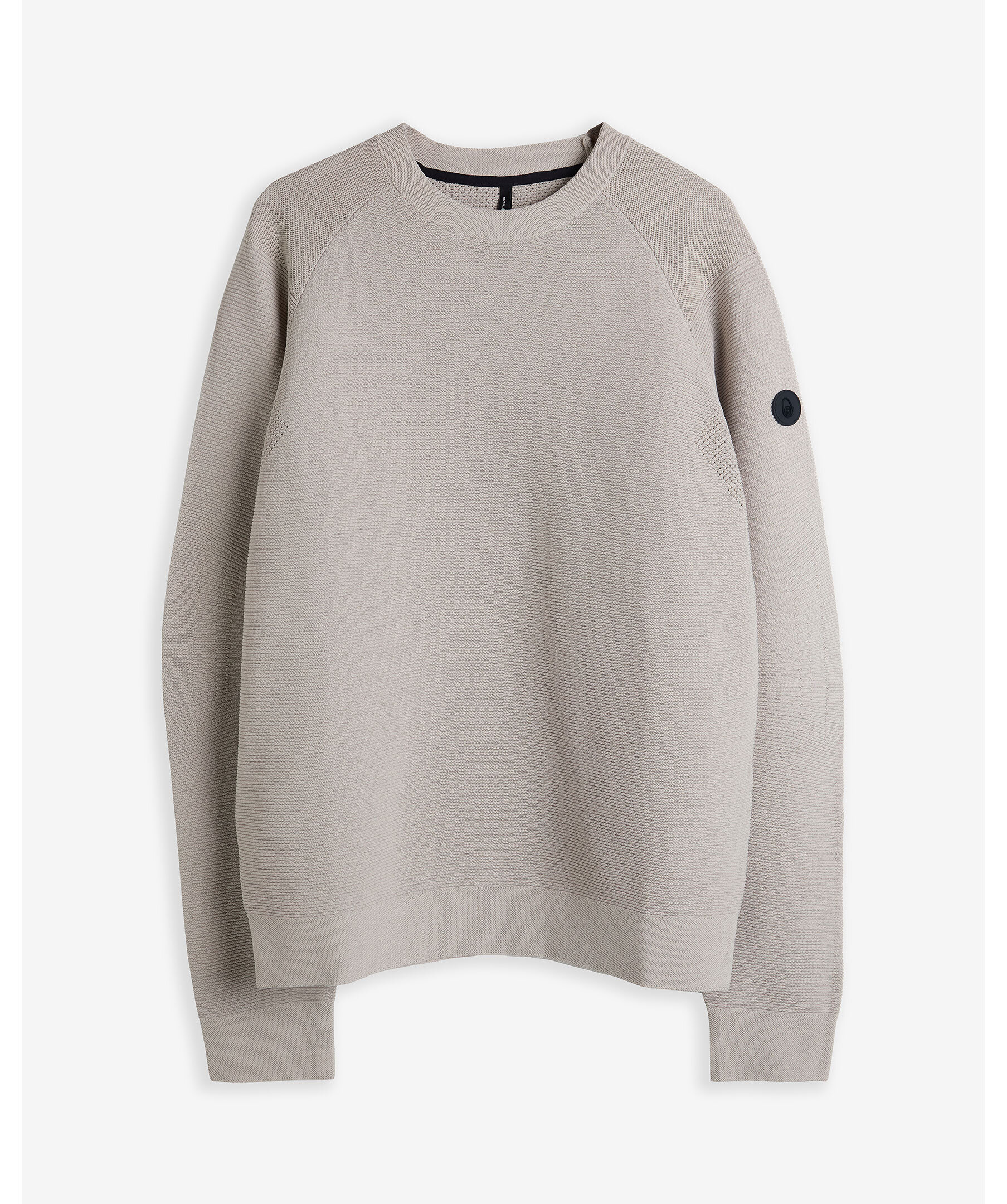 Sandfärgad, stickad crewneck från Sail Racing. Tröjan har rund halsringning, Sail Racing block-logotyp på vänster ärm samt är designad med flera olika stickningsstrukturer på ärmar, axlar och rygg. Tillverkad i polyester.