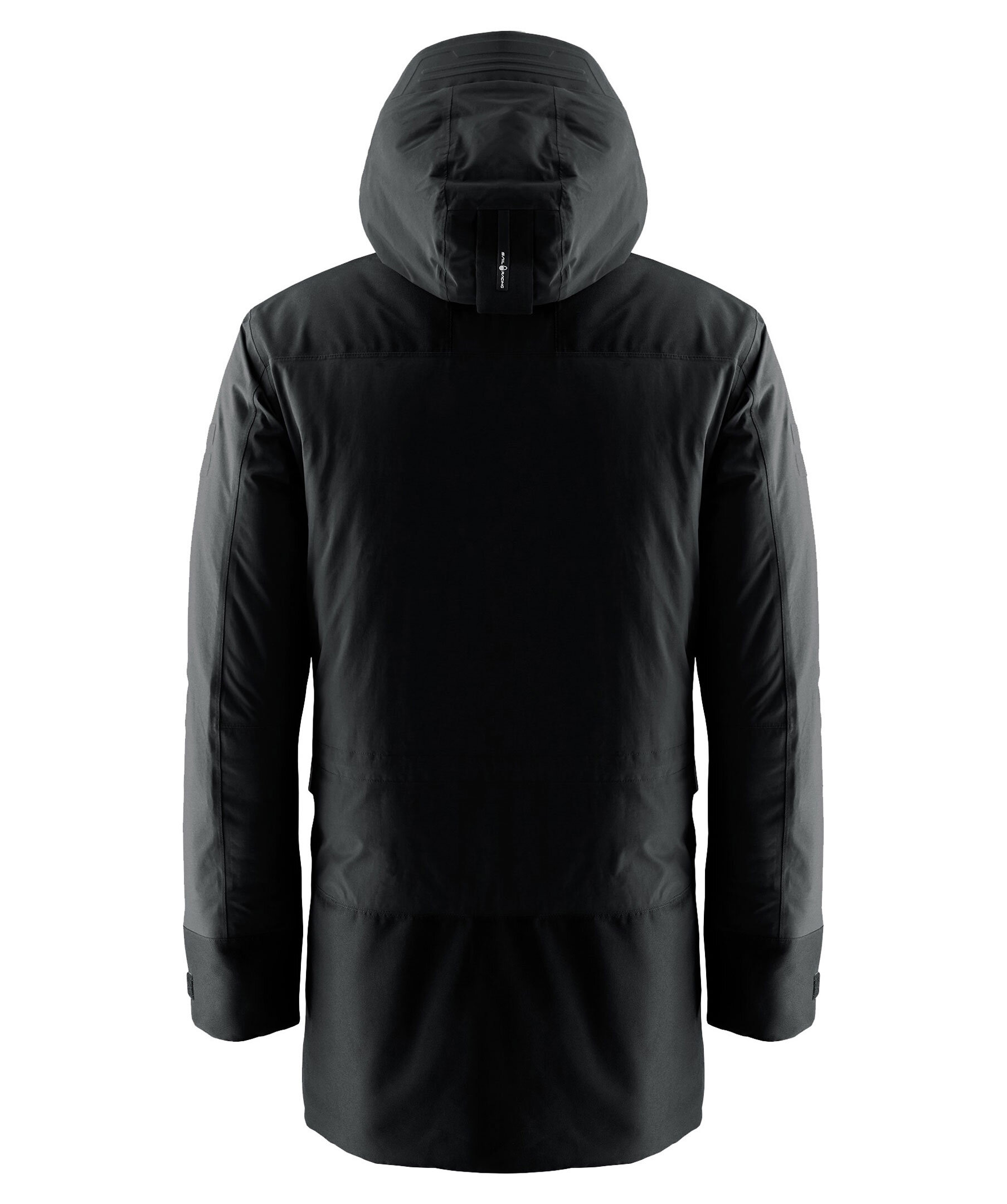 Svart dunparka i Gore-tex från Sail Racing. Stängs framtill med dold dragkedja och tryckknappar. Fyra fickor framtill med ficklock. Justerbara ärmslut med kardborre. Embossad logotyp på vänster ärm och framtill på dragkedjan. Avtagbar luva. Jackan är tillverkad i ett vind och vatten avstötande material. Patch med gummerad logotyp på höger bröst.