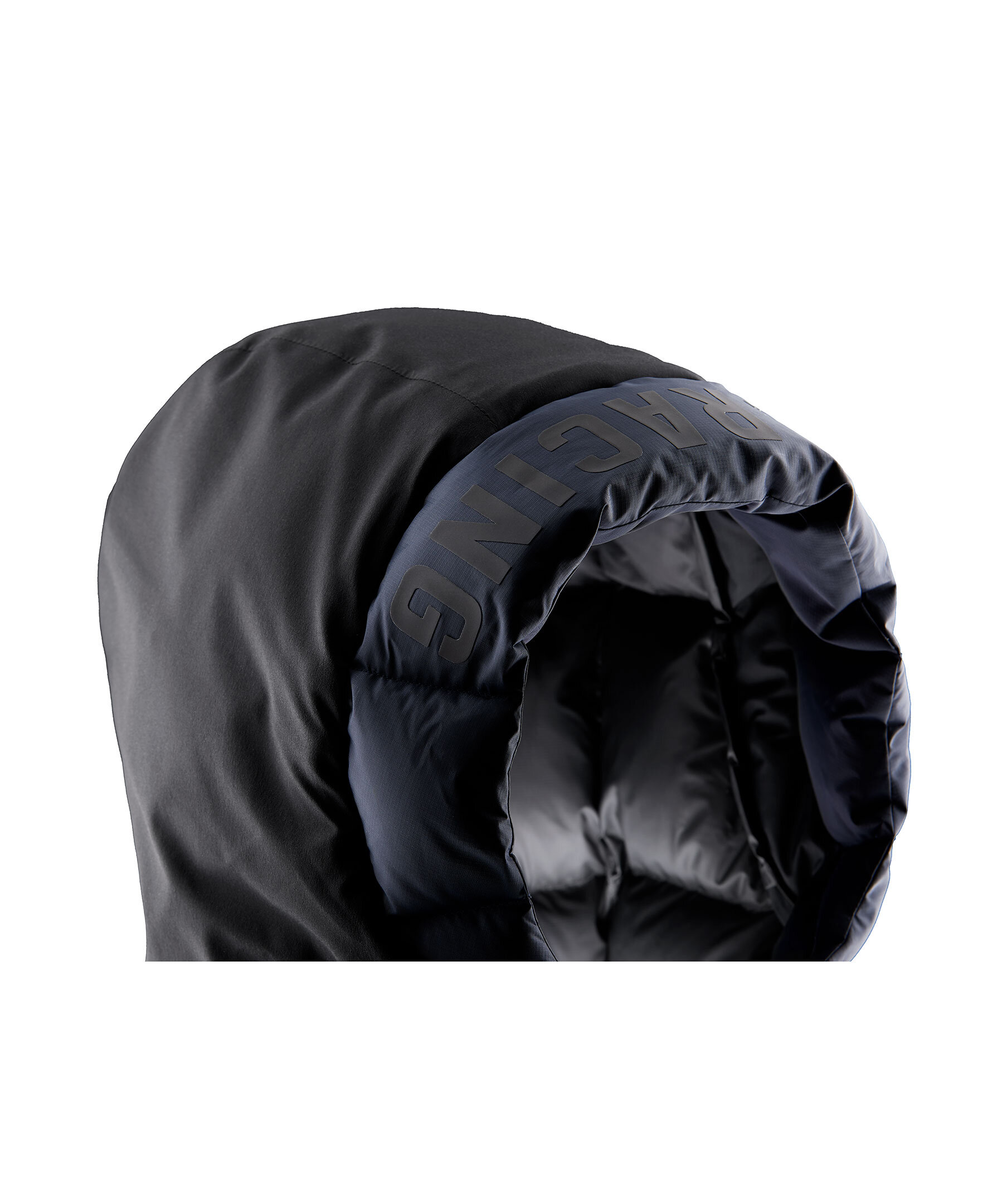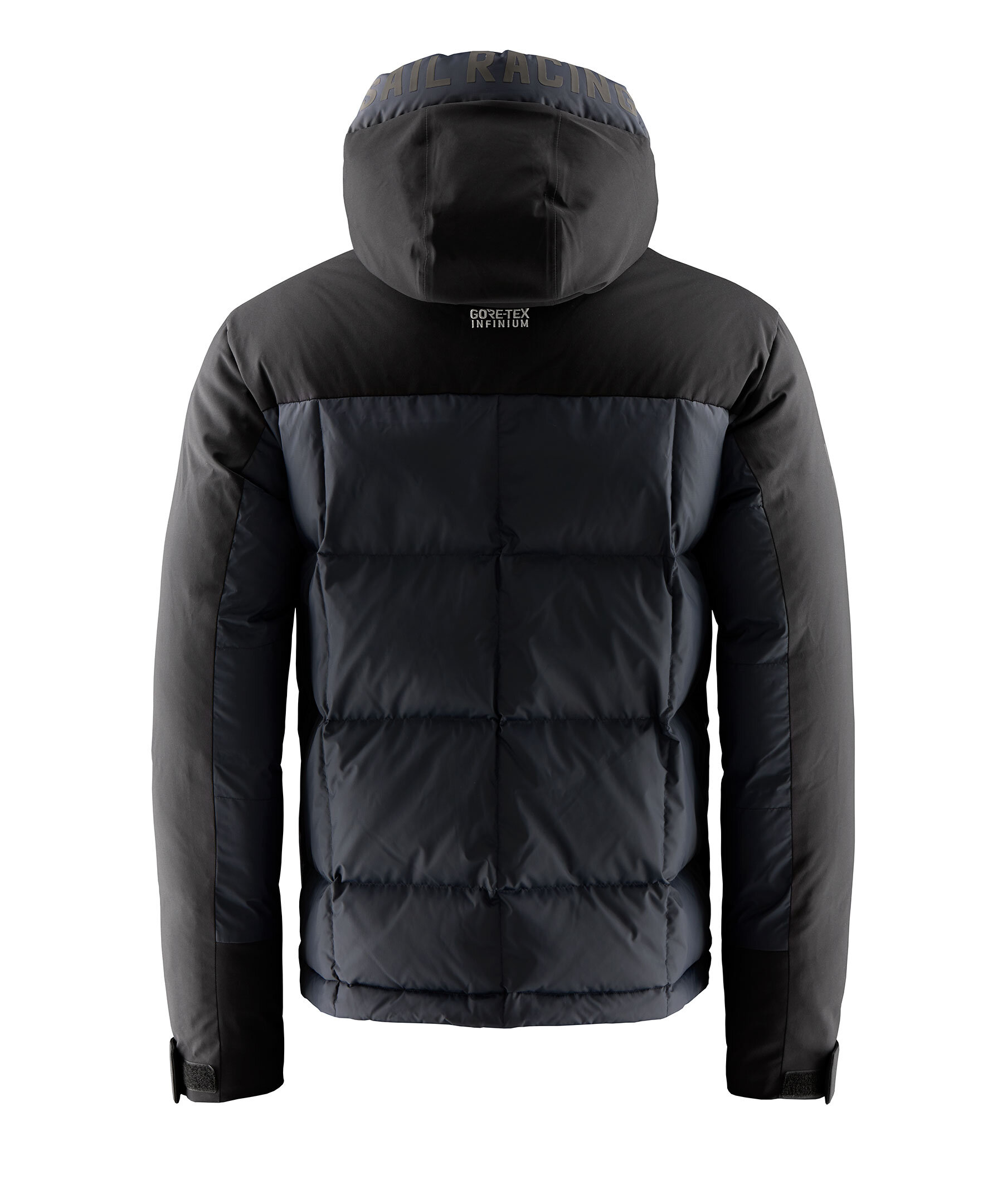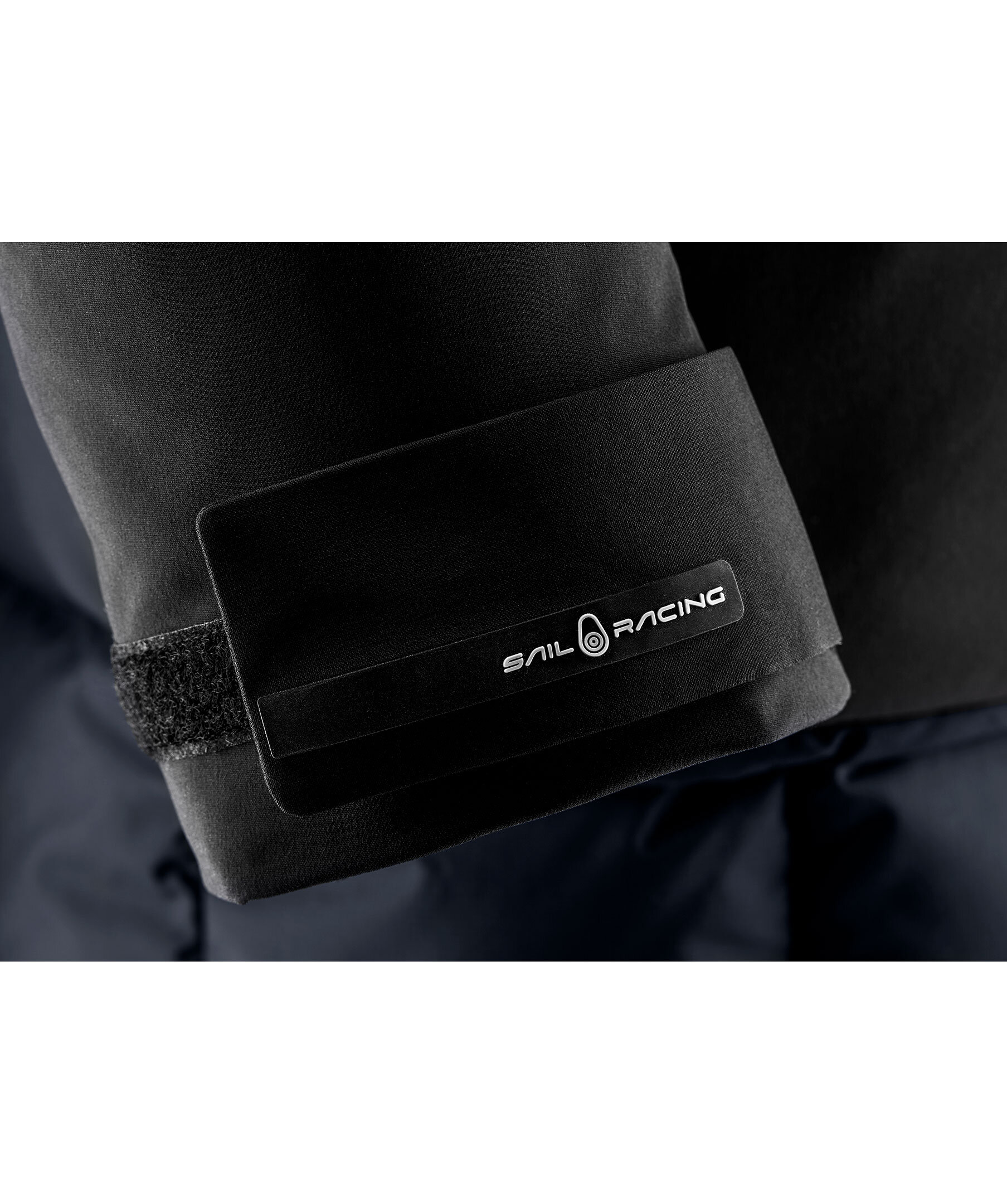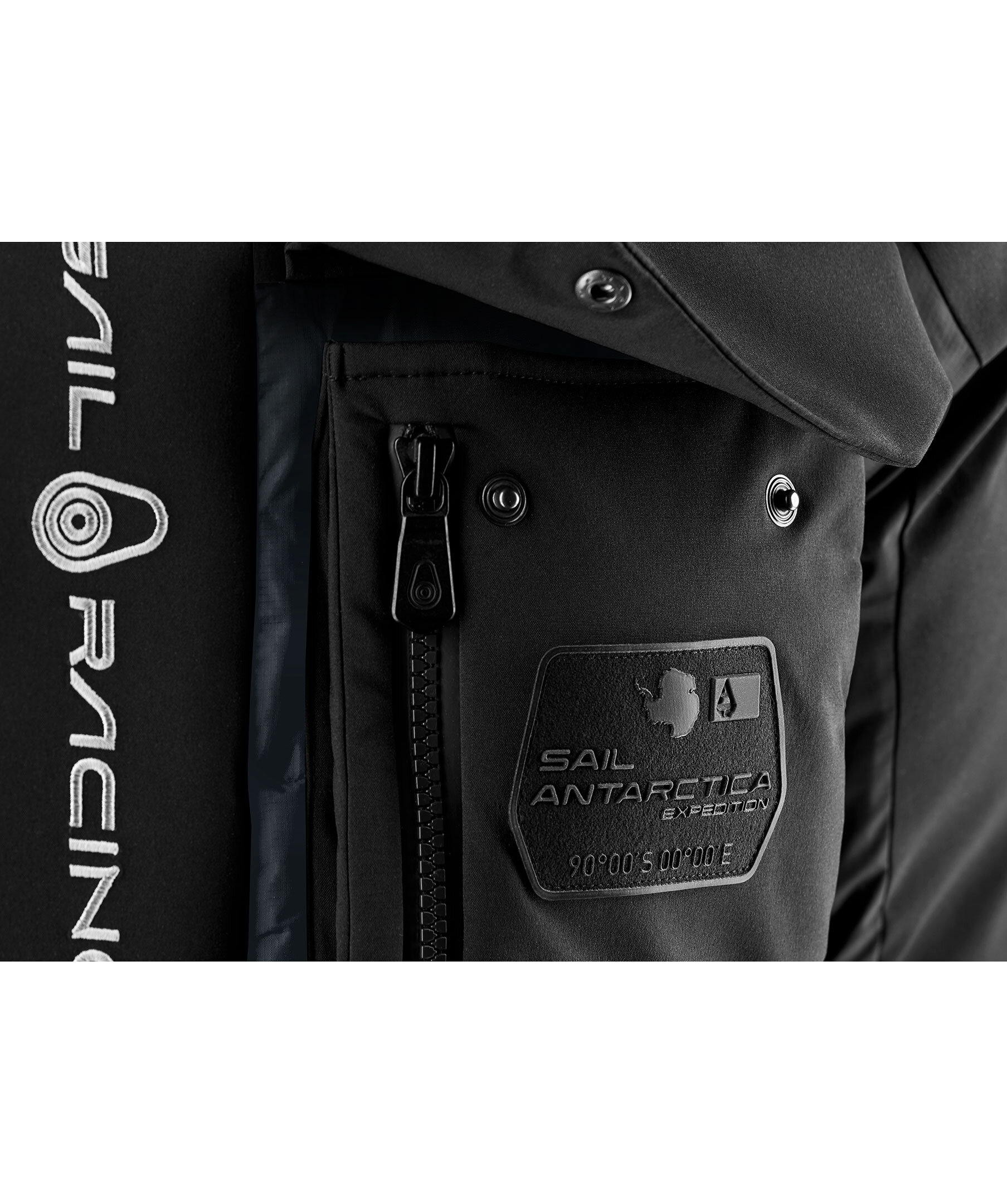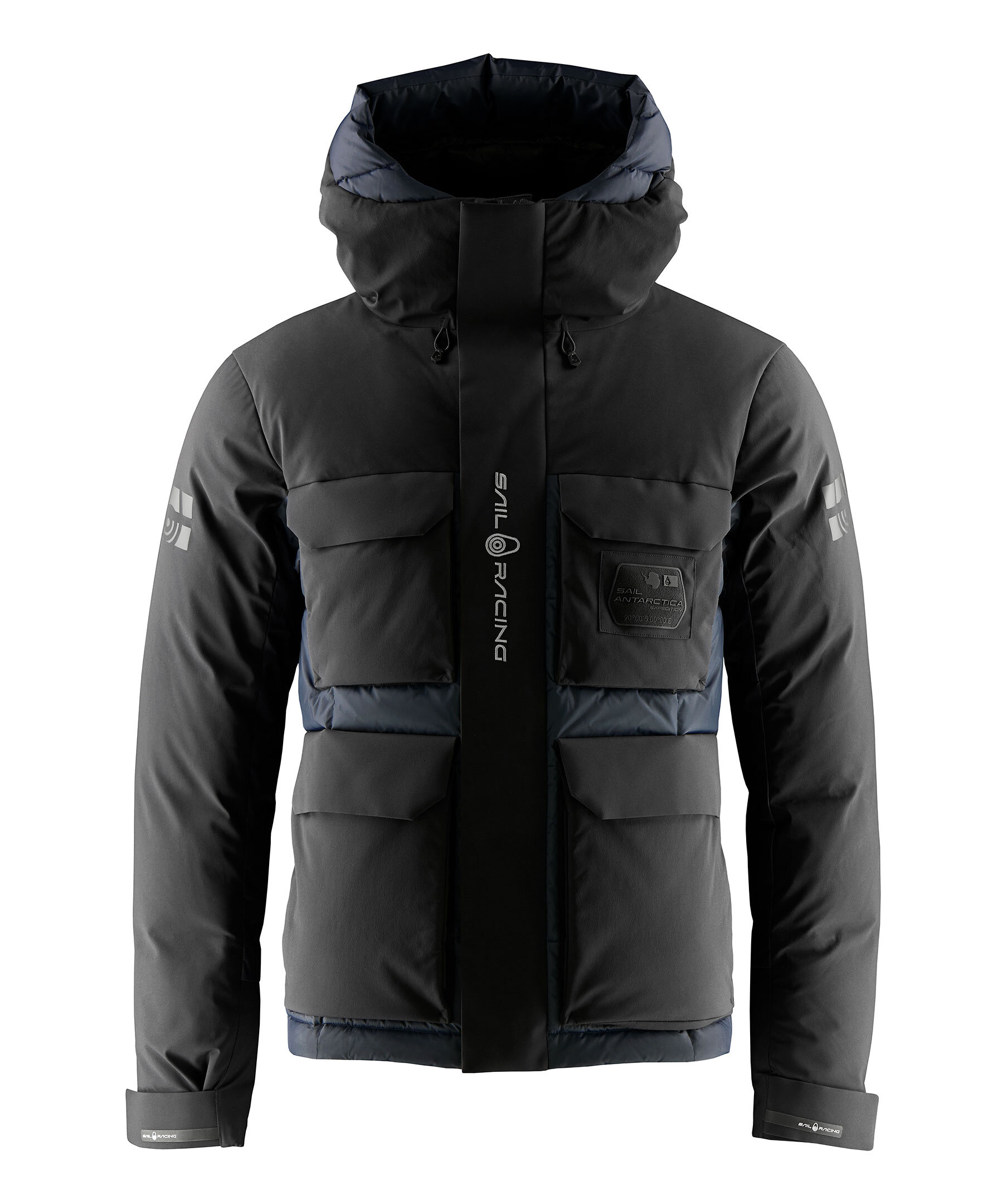 Mörkblå och svart dunjacka från Sail Racing. Fyra rymliga framfickor som stängs med dragkedja eller ficklock och tryckknappar, fyra bröstfickor som även dem stängs med dragkedja eller ficklock och tryckknappar samt fyra innerfickor med dragkedja. Justerbara dragskor vid luva och nederkant. Sail Racing-broderi bak i nacken och över dragkedjan samt tryck med logotyp på luvan. Sail Racing Antarktis logotyp vid ärmen och patch på vänstra bröstet. Stängs med tvåvägsdragkedja och tryckknappar och har justerbara ärmslut. Jackan är helt vindtät och har bra andningsförmåga och har ett yttertyg i nylon.
