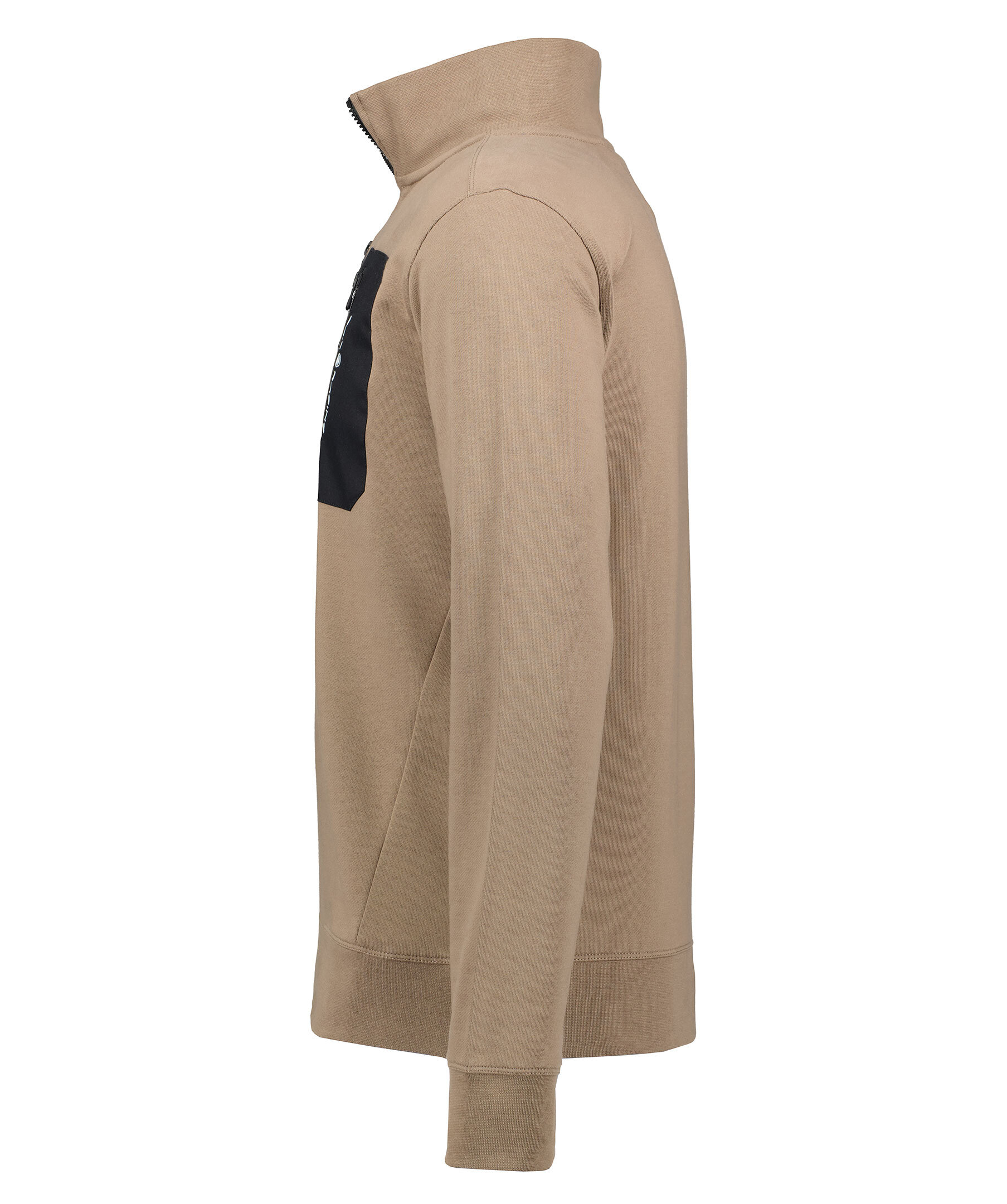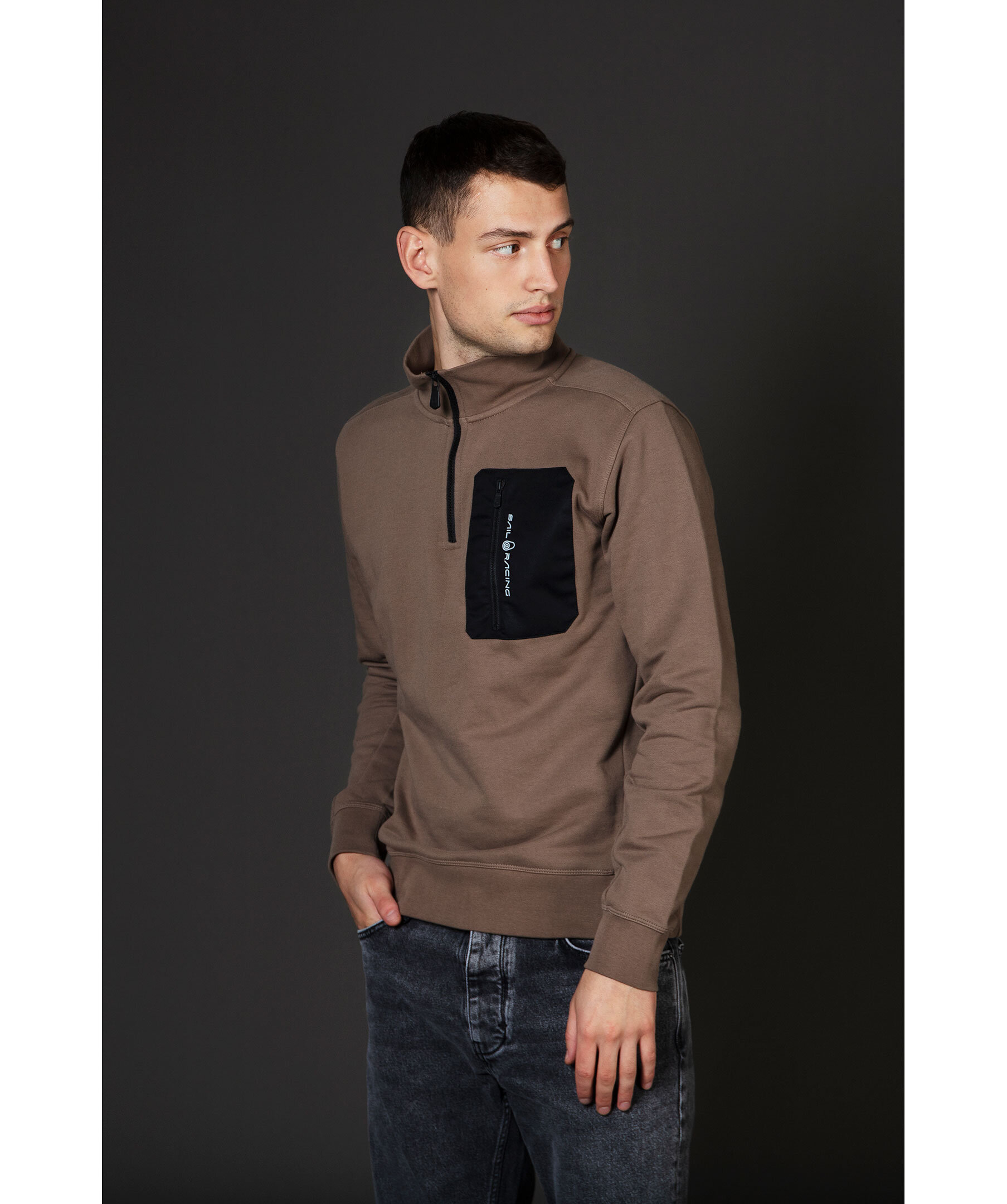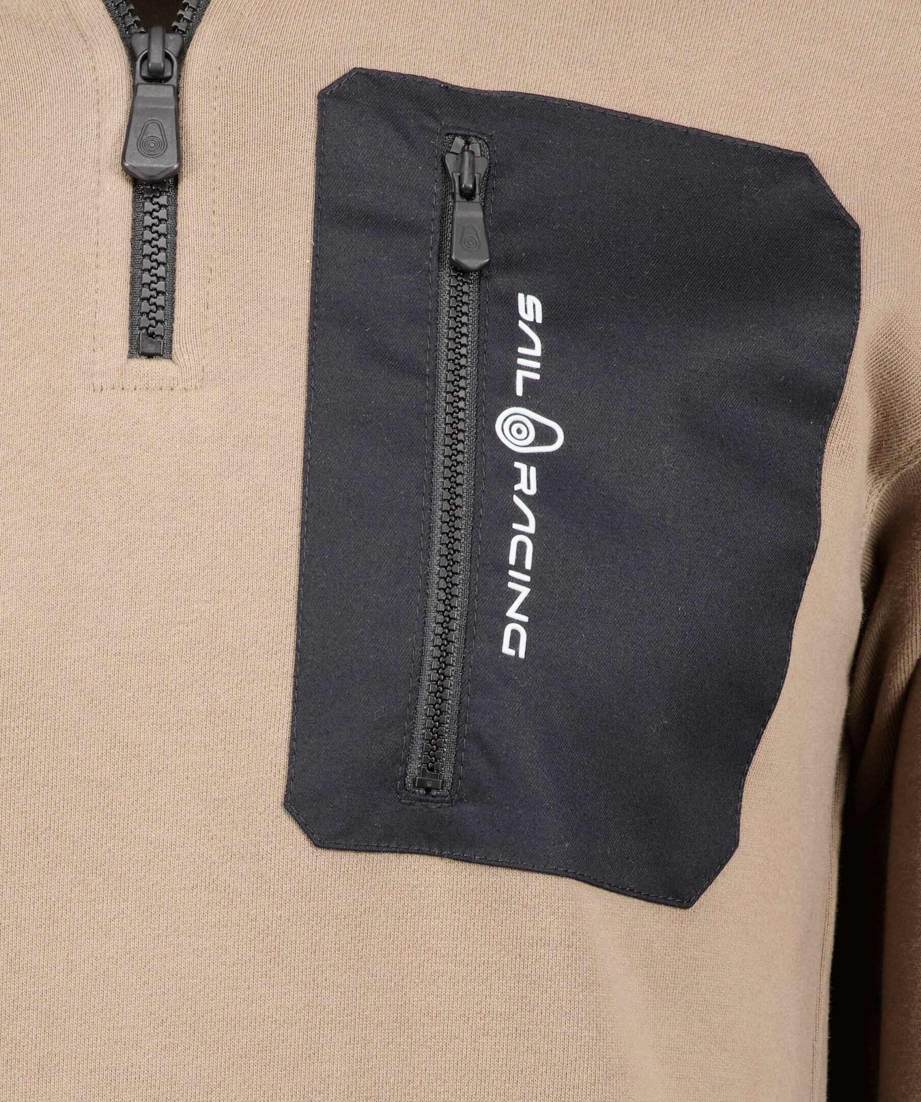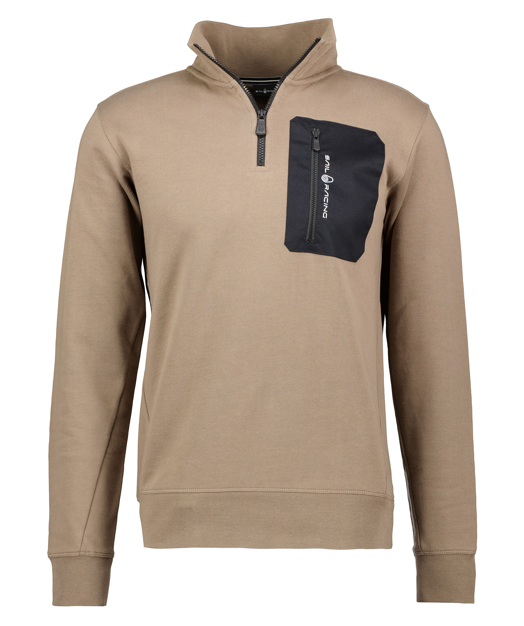 Brun, tröja med half-zip dragkedja från Sail Racing. Tillverkad i 100% bomull. Svart bröstficka i kontrasttyg med dragkedja och logotyp samt logotyp tryckt i nacken. Muddar i ärmslut och plaggslut.