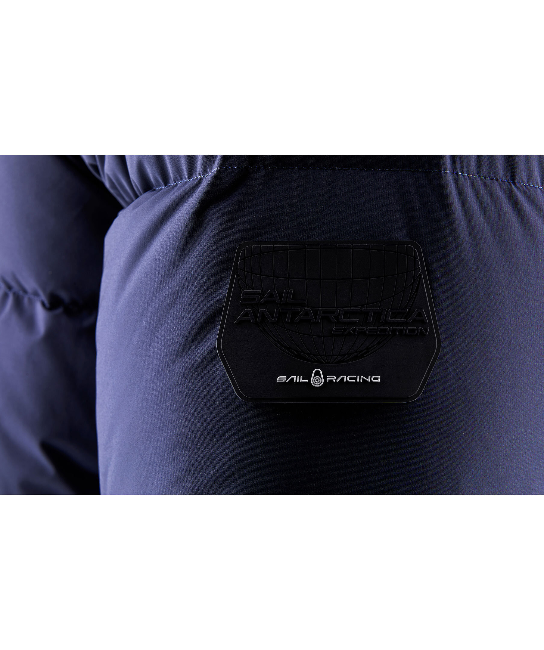 Marinblå vindtät och vattenavvisande dunjacka från Sail Racing. Jackan stängs med tvåvägsdragkedja och har två midjefickor med dolda dragkedjor och på insidan av fickorna finns en justerbar dragsko för en anpassad passform runt höften. Jackan har även två praktiska bröstfickor och alla fickor är fodrade med microfleece för extra komfort. Jackan har även två innerfickor i mesh med överlappande stängningar. Huvan kan justeras med dragsko bak för en anpassad passform och har en dunfylld kanal runt öppningen. Ärmsluten är förlängda över handryggen och insidan är utrustad med en polar tech-fleece-manschett med tumhållare som värmer och skyddar dina händer. Logotyp på vänster ärm, vänster axel samt en blocklogotyp på framsidan av huven. Tillverkad i en nylonblandning.