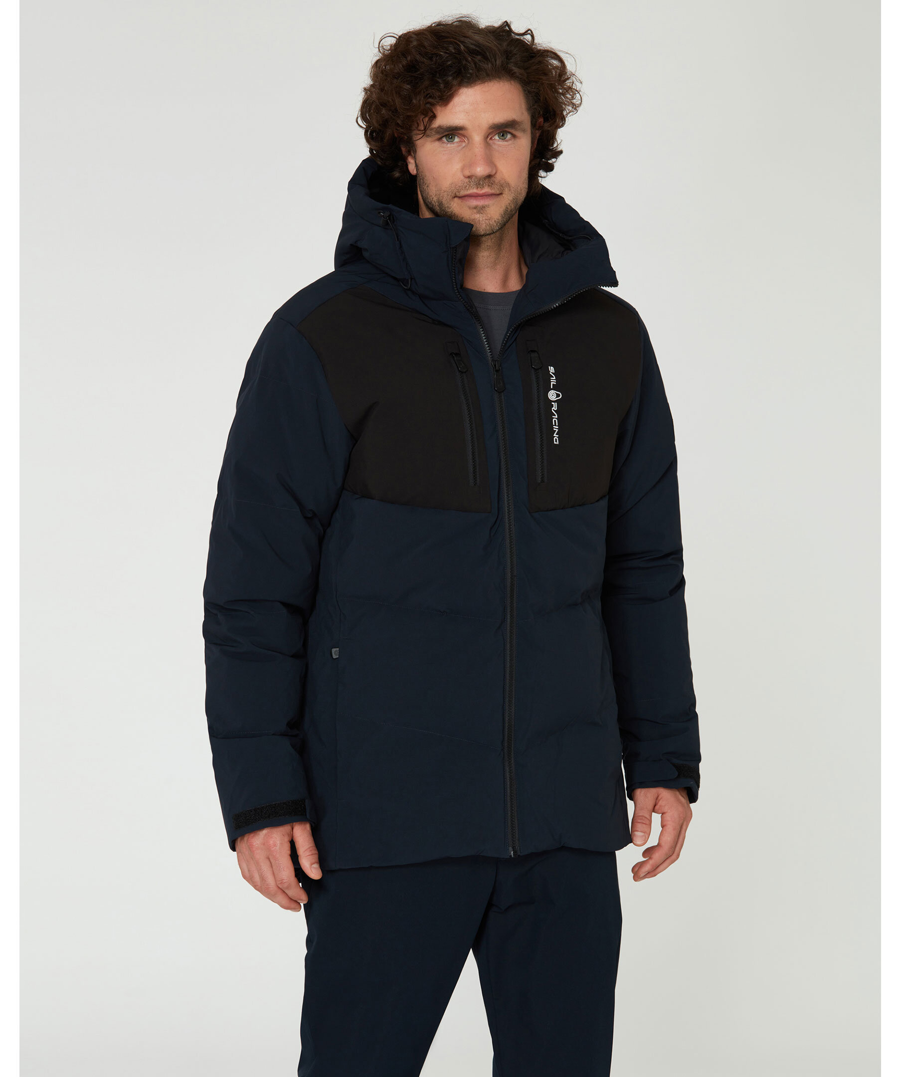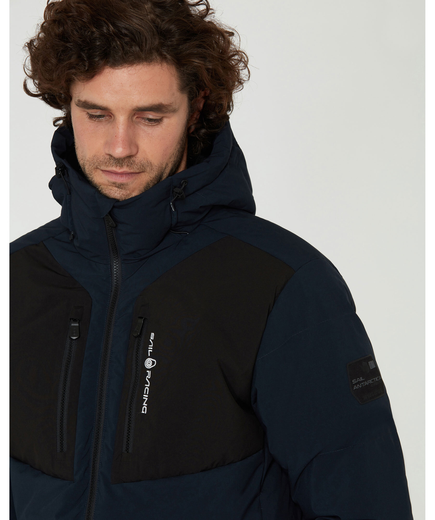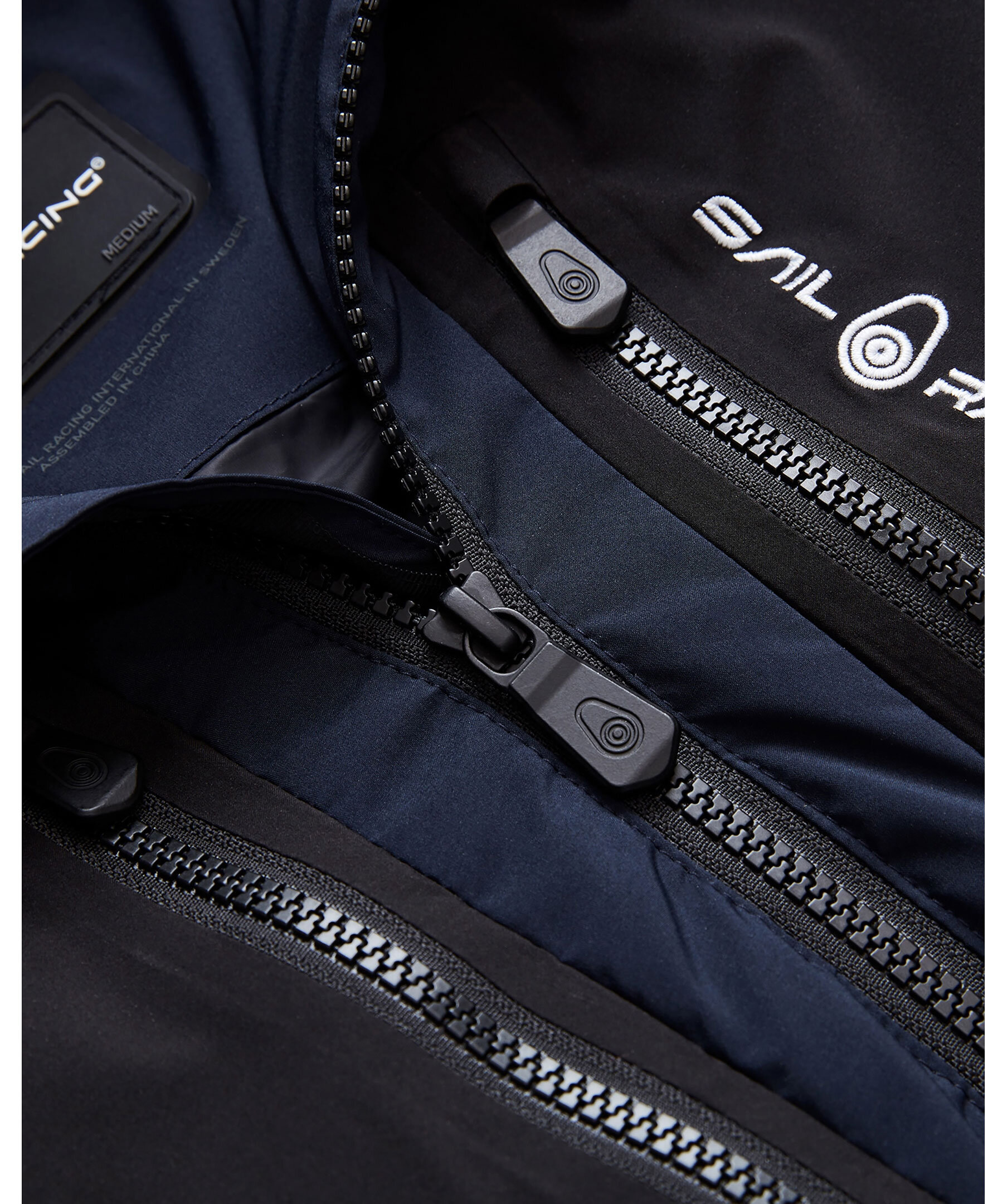 Blå och svart dunjacka från Sail Racing. Stängs framtill med dragkedja. Två bröstfickor och två framfickor som stängs med dragkedja. En innerficka som stängs med dragkedja. Broderad logotyp på vänster bröst och bak på luvan, patch med logotyp på vänster ärm. Luva med dragsko. Justerbara ärmslut. Jackan är vind och vattenavvisande.