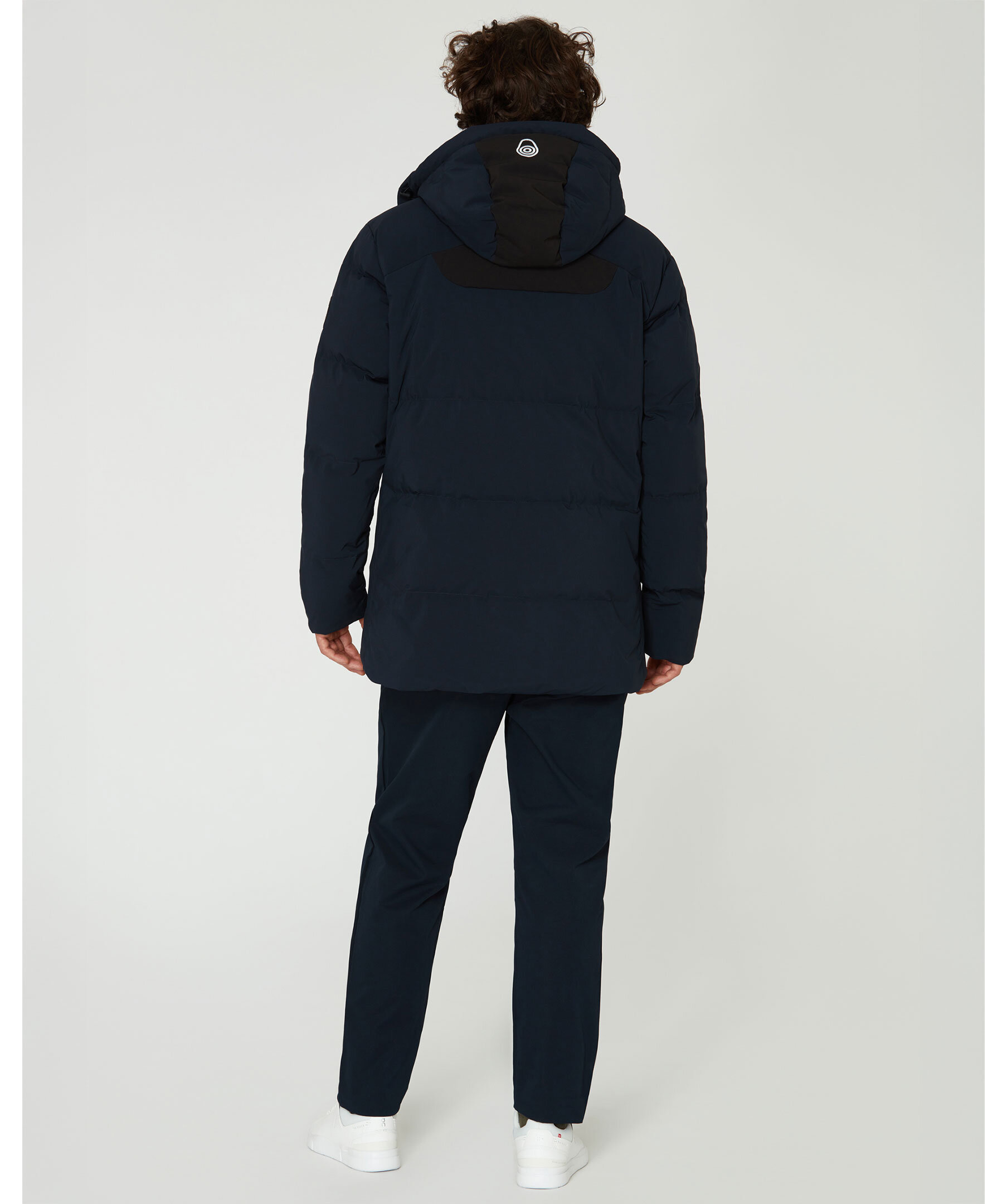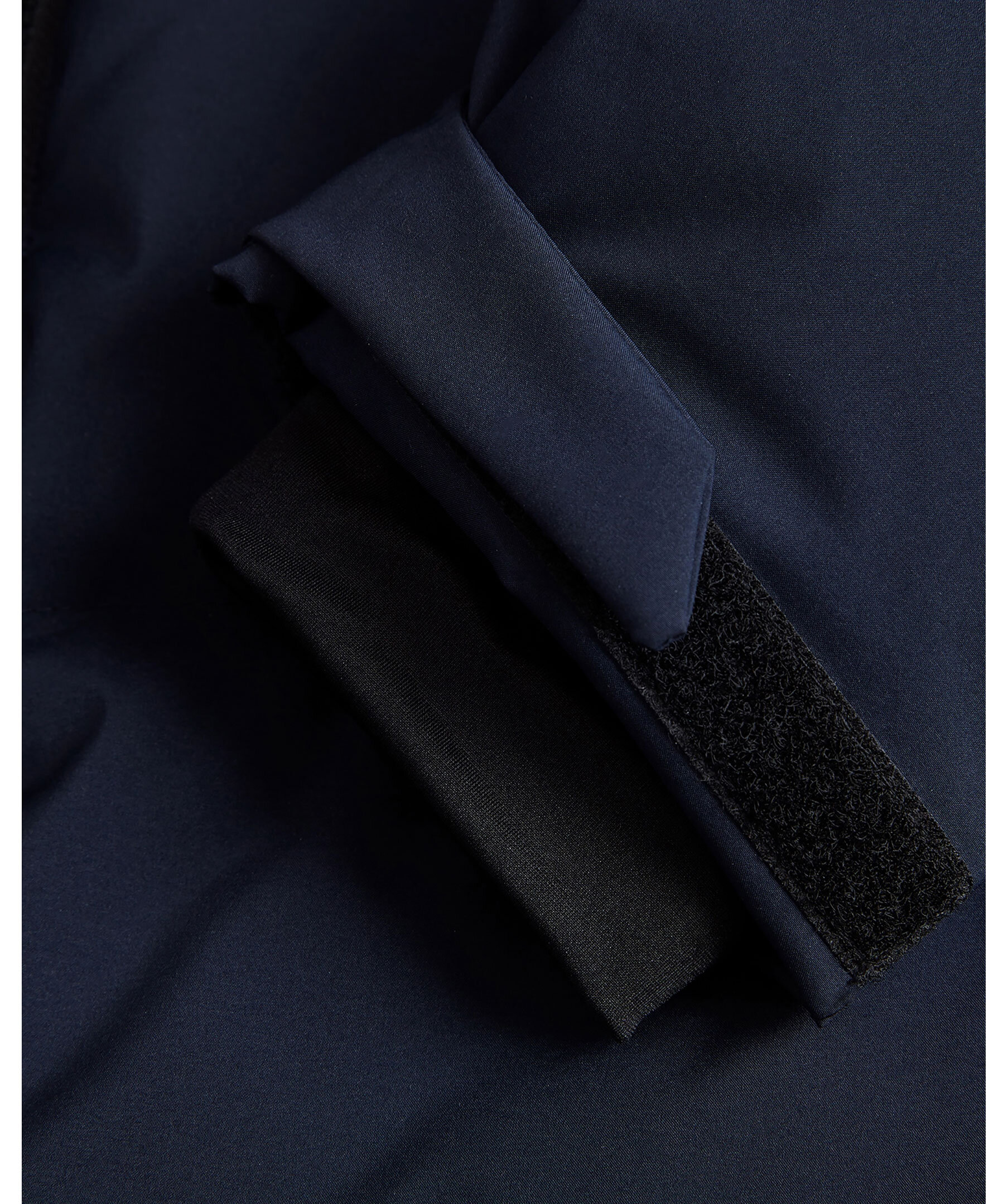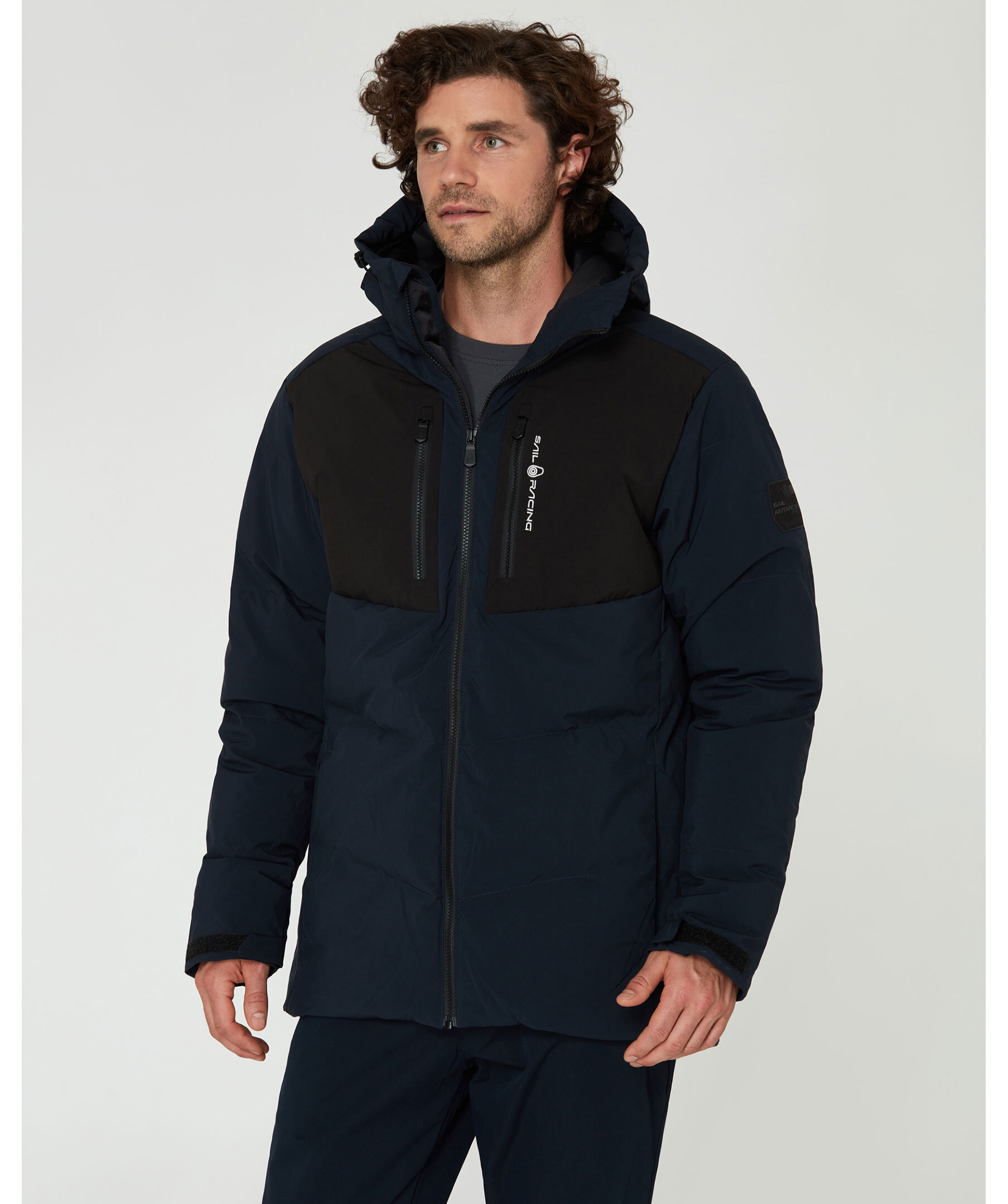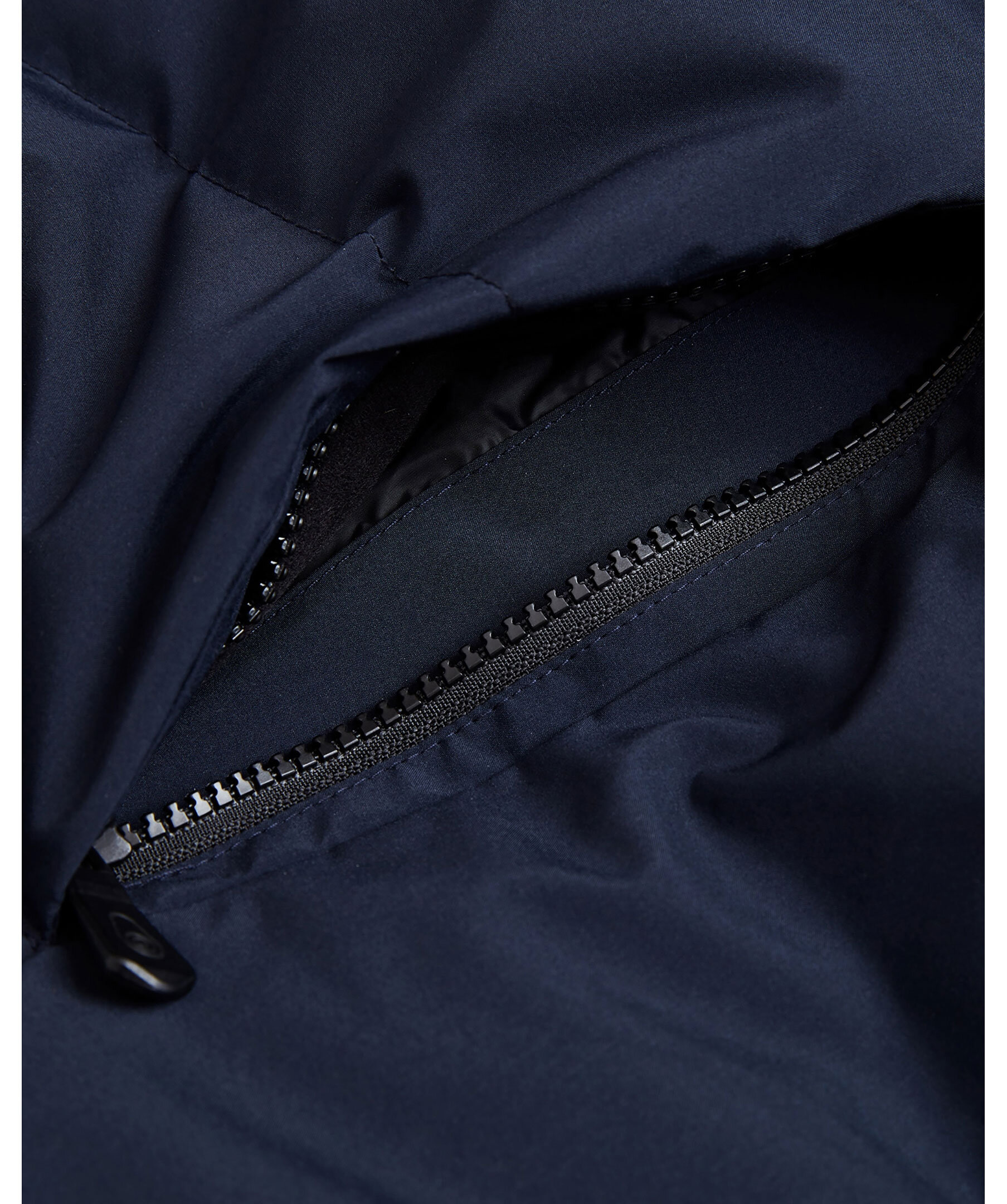Blå och svart dunjacka från Sail Racing. Stängs framtill med dragkedja. Två bröstfickor och två framfickor som stängs med dragkedja. En innerficka som stängs med dragkedja. Broderad logotyp på vänster bröst och bak på luvan, patch med logotyp på vänster ärm. Luva med dragsko. Justerbara ärmslut. Jackan är vind och vattenavvisande.