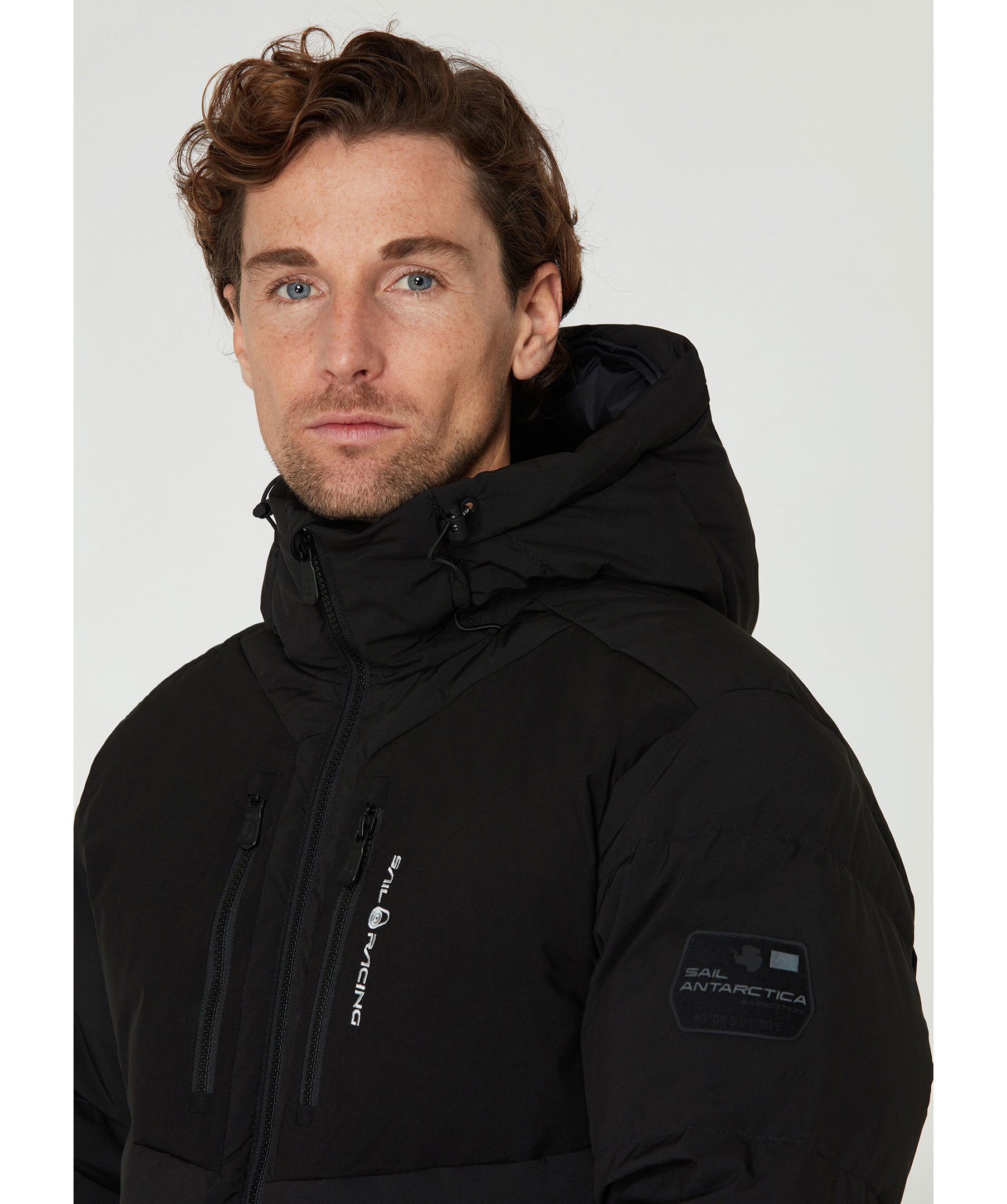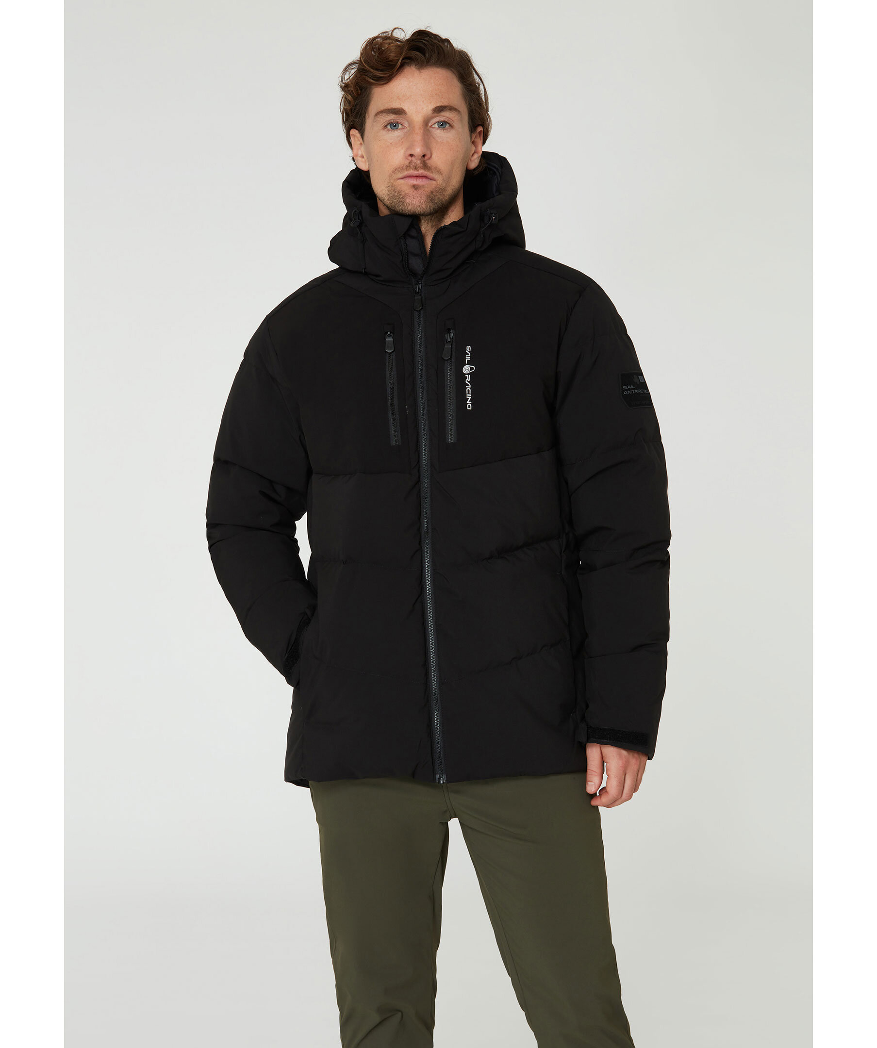 Svart dunjacka från Sail Racing. Stängs framtill med dragkedja. Två bröstfickor och två framfickor som stängs med dragkedja. En innerficka som stängs med dragkedja. Broderad logotyp på vänster bröst och bak på luvan, patch med logotyp på vänster ärm. Luva med dragsko. Justerbara ärmslut. Jackan är vind och vattenavvisande.