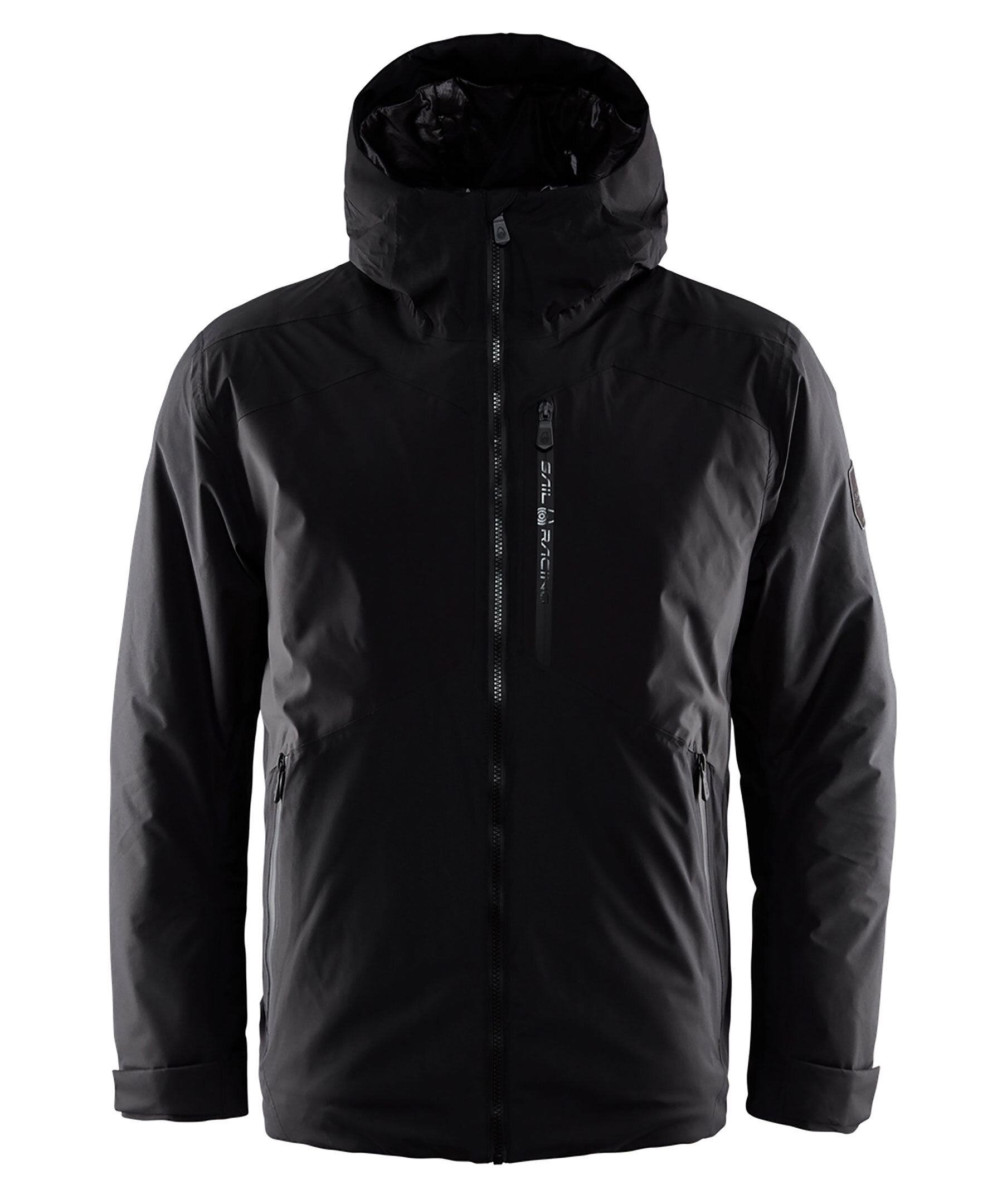 Svart vind- och vattentät jacka från Sail Racing. Jackan stängs med dragkedja och har två rymliga midjefickor, en bröstficka och en praktisk innerficka med dragkedjor. Midjefickorna har ett mikrofleecefoder för extra komfort och värme till dina händer. Huvan kan justeras med dragsko baktill för en anpassad passform som ytterligare skyddar mot tuffa väderförhållanden. I ärmarna finns elastiska muddar i lycra och kardborrstängning för att förhindra vatten och vindintrång. Justerbar passform med dragsko i nedre fållen runt höften. Logotyp vid bröstfickan, vänster ärm samt i nacken. Tillverkad i en nylonblandning.